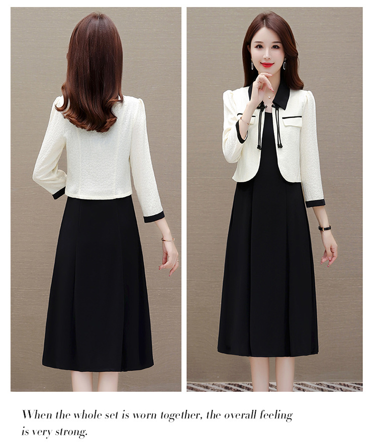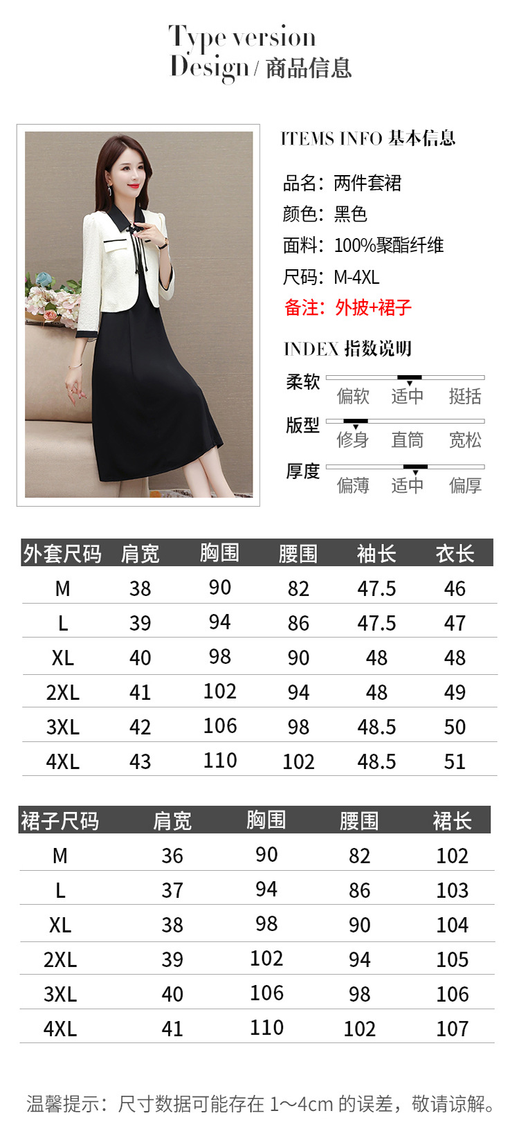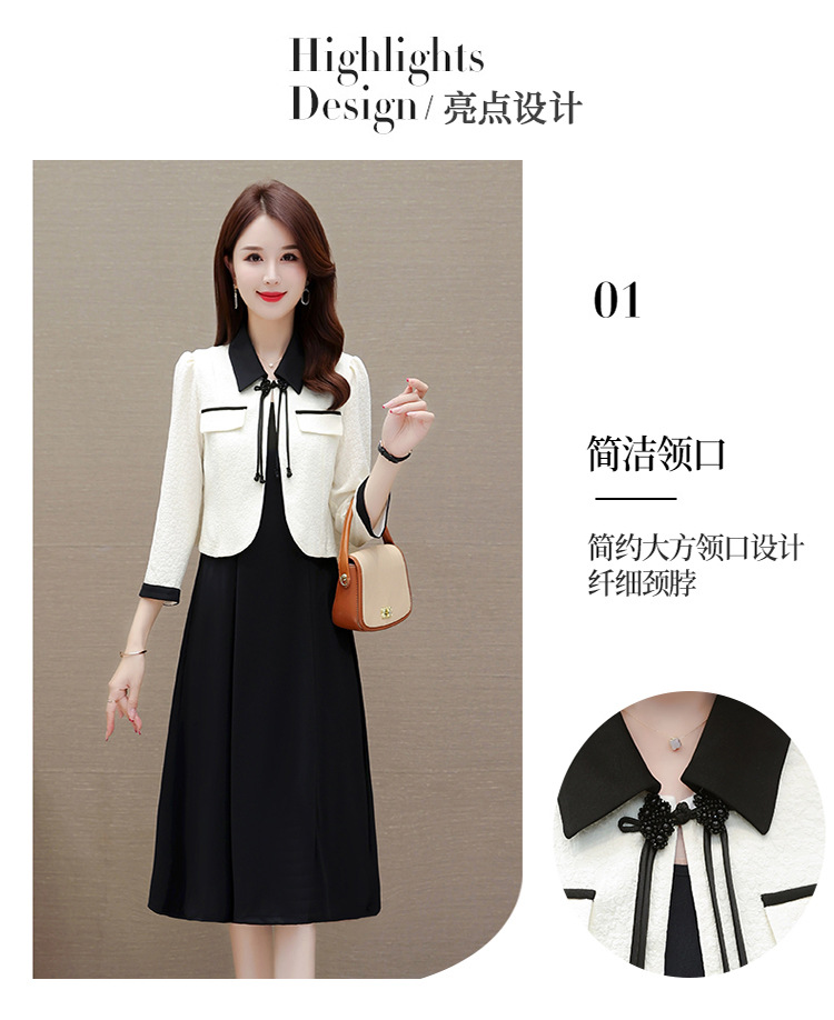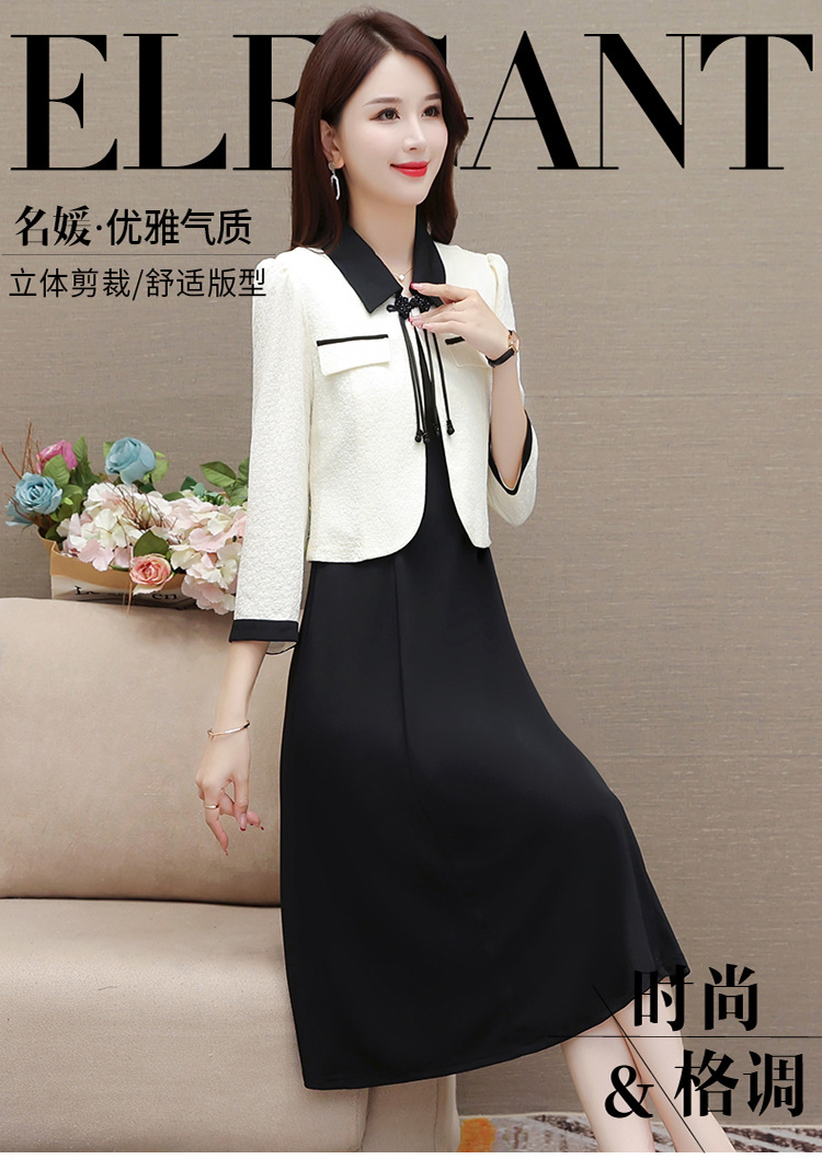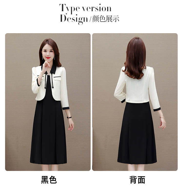 时尚内搭黑色连衣裙,七分袖短款洋气外套两件套QYM-XQD-11C2303-L