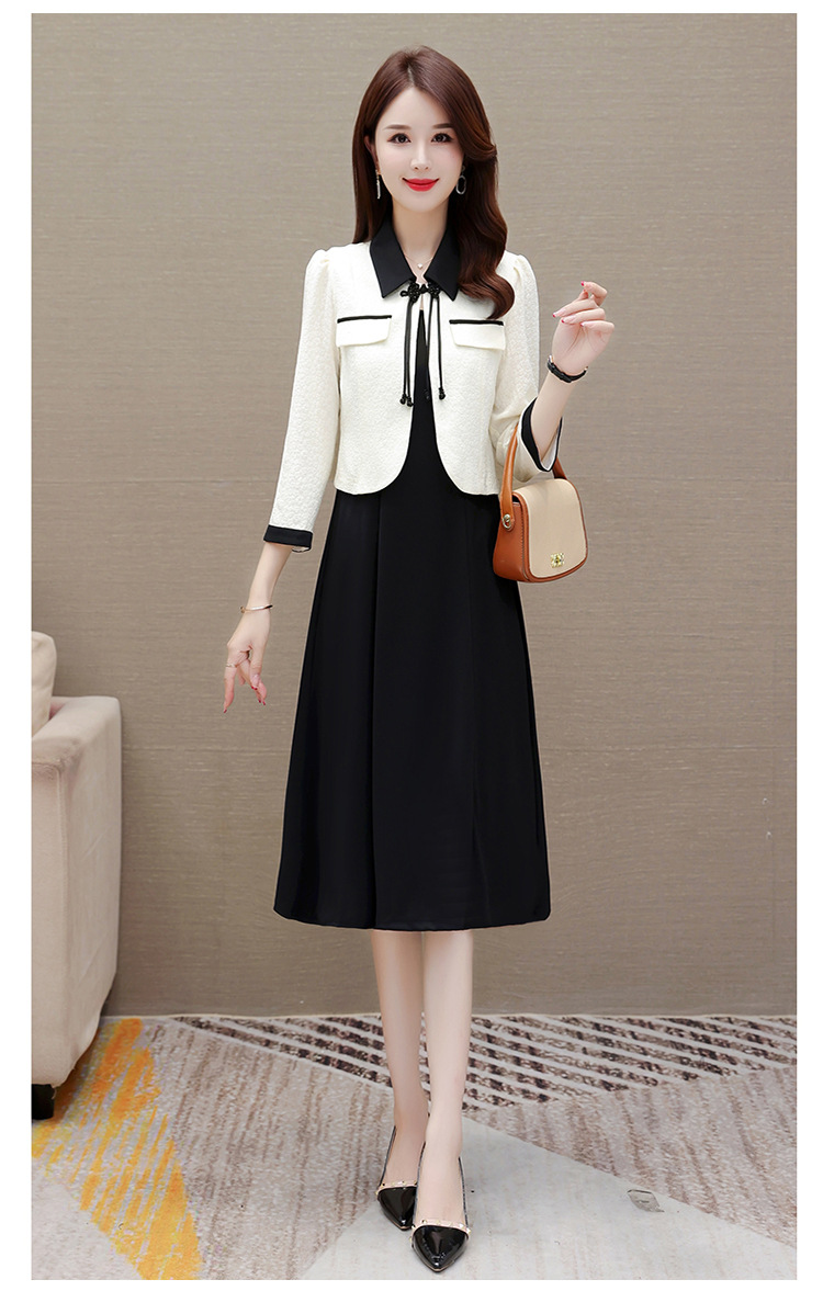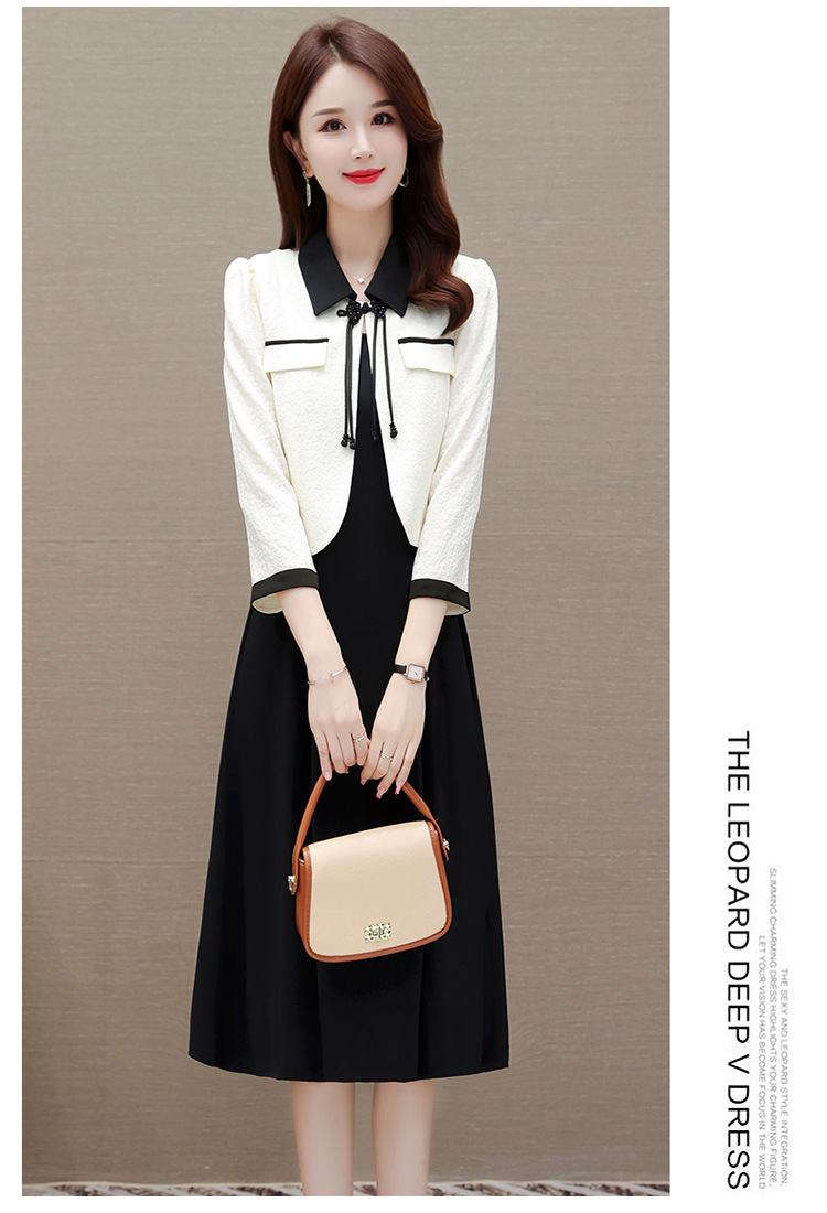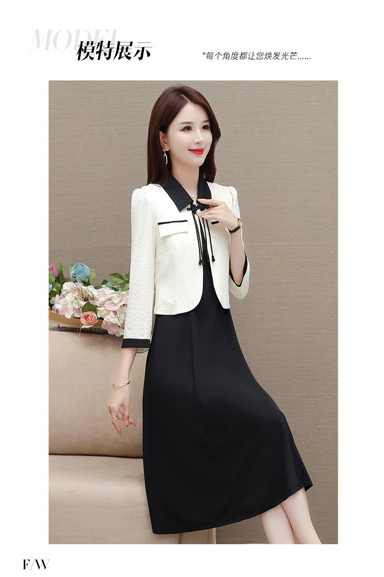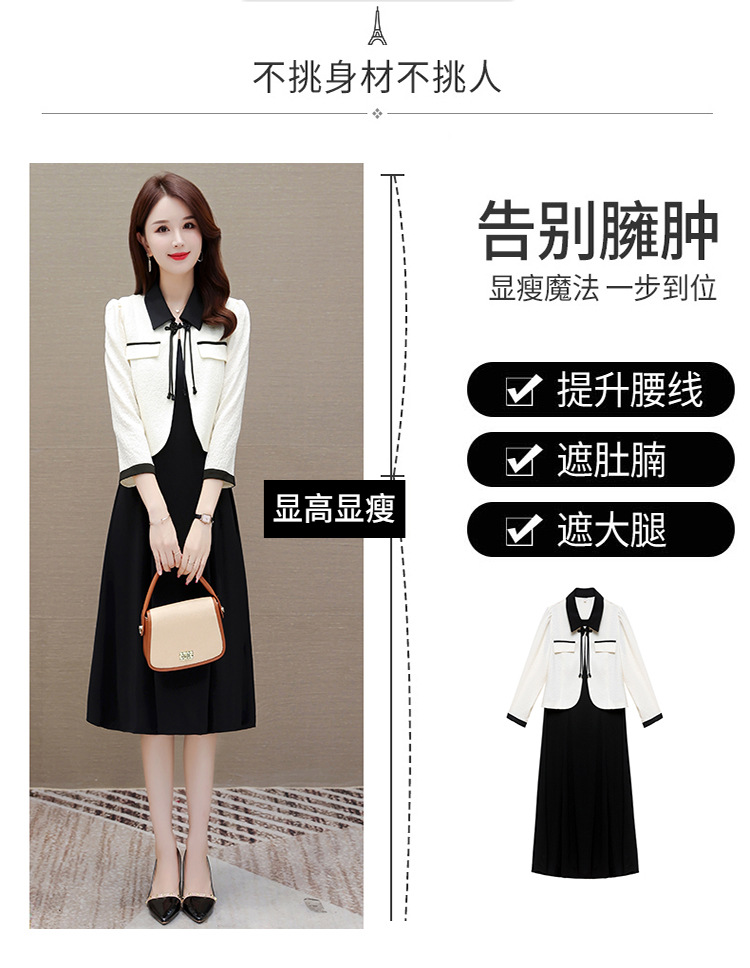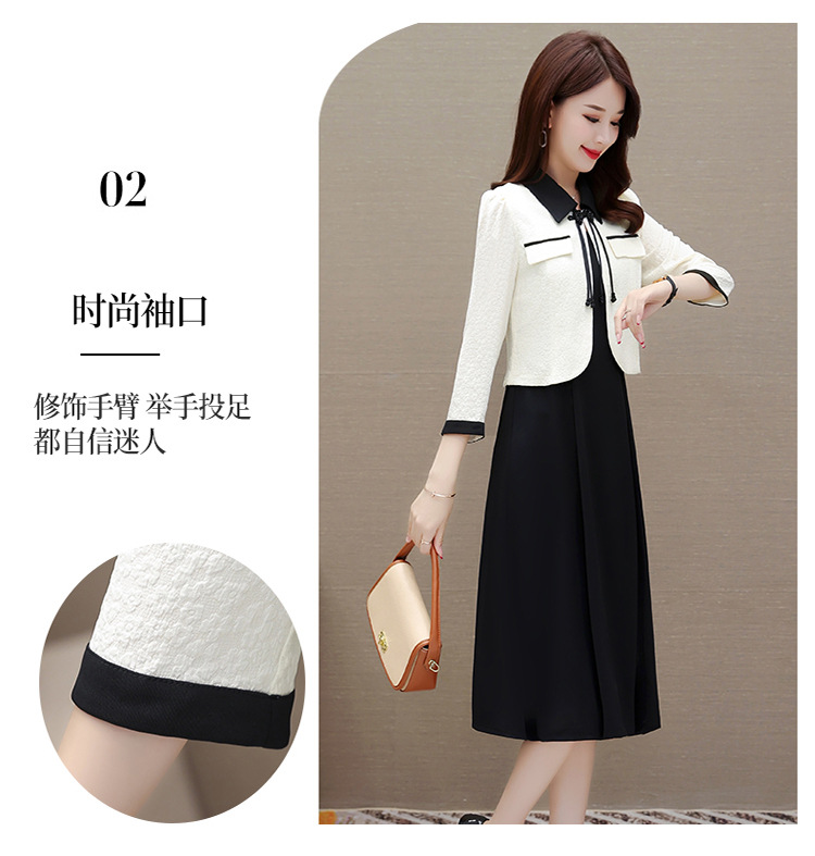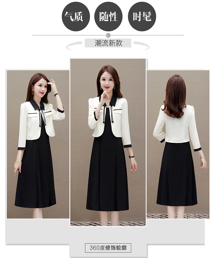 时尚内搭黑色连衣裙,七分袖短款洋气外套两件套QYM-XQD-11C2303-L