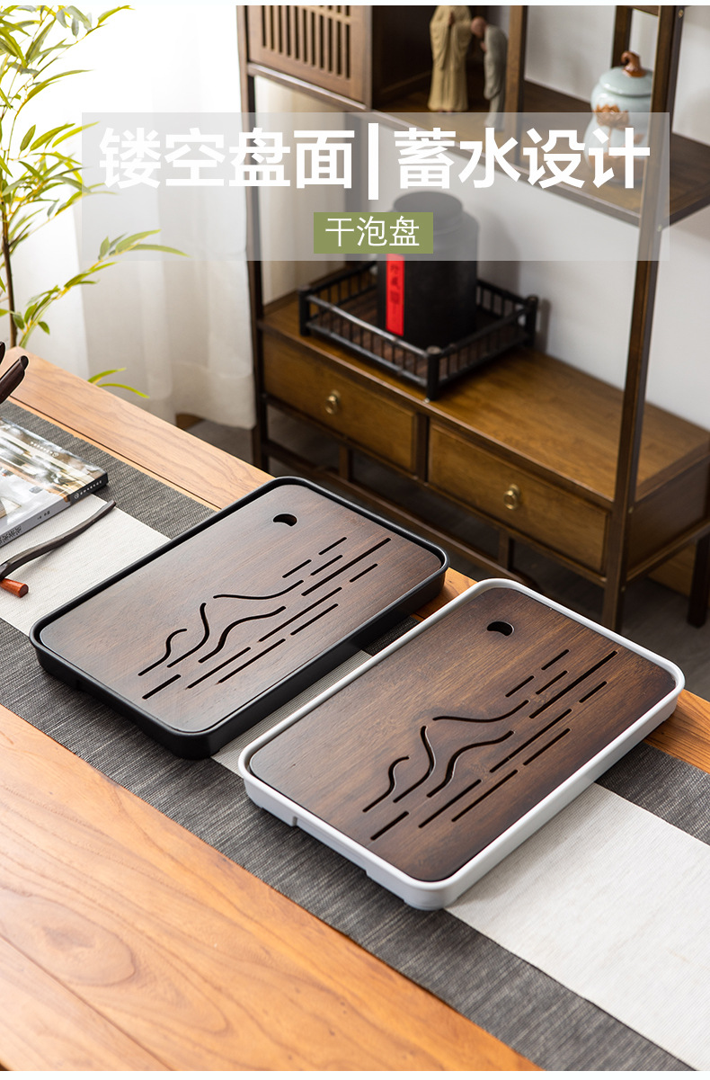 功夫茶盘日式竹制密胺小茶台茶盘 功夫茶具茶道配件小托盘蓄水简约便携旅行-M仓