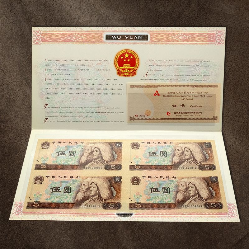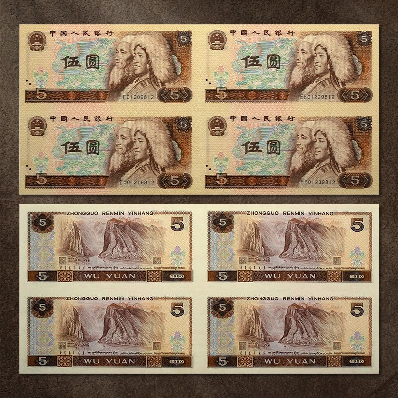 第四套人民币5元四方联连体钞 含80版钞一整张