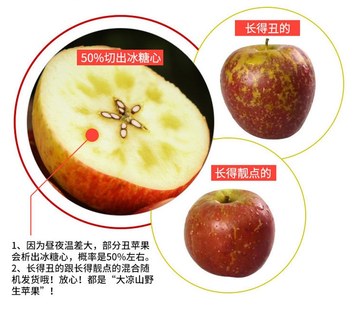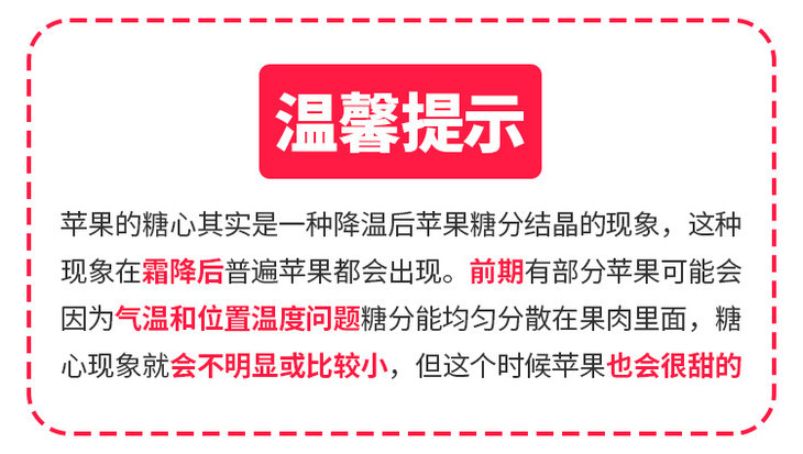 小贴士:需要注意的这个果子个头不大,而且糖心不是一种品种,只是一种自然现象。我不能保证每颗都有冰糖心,但保证每一颗都是一样脆甜多汁,原滋原味。