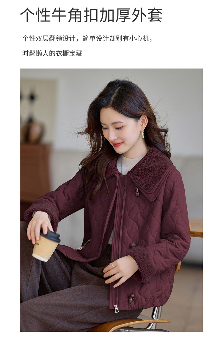 丁摩 时尚撞色大牛角扣加厚秋冬新款新款洋气5ZF-9970 商品图0
