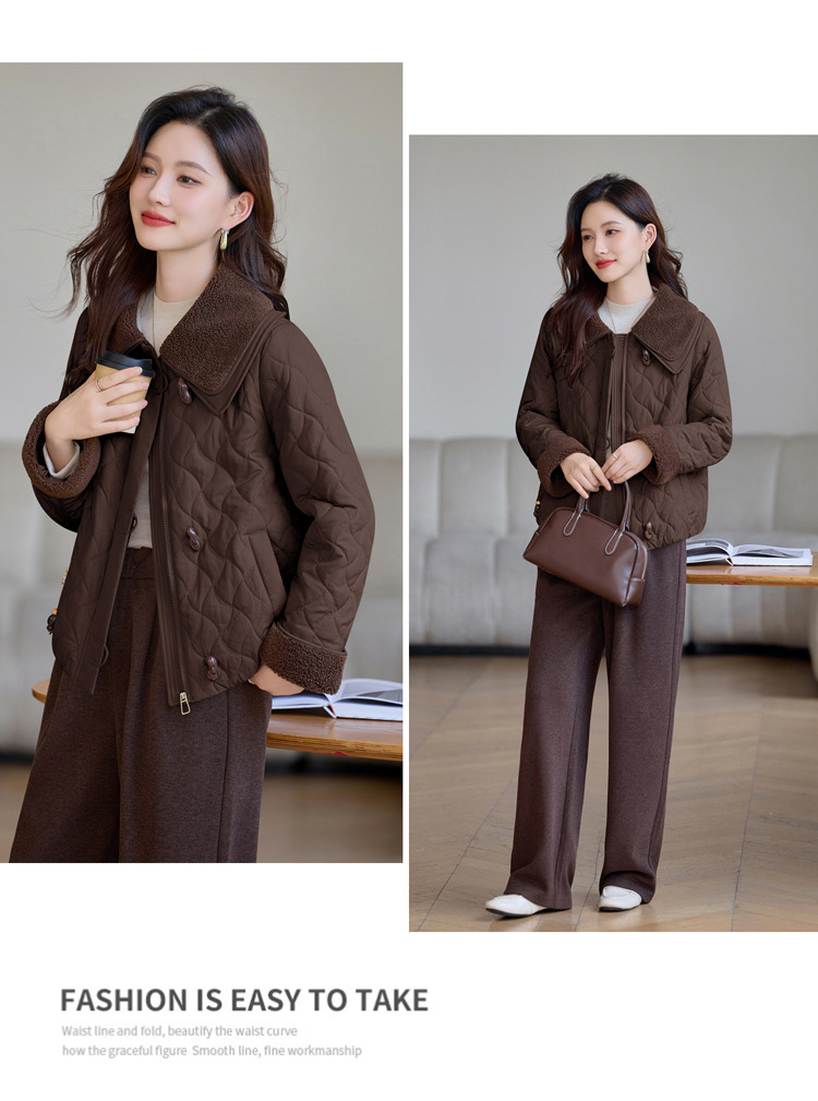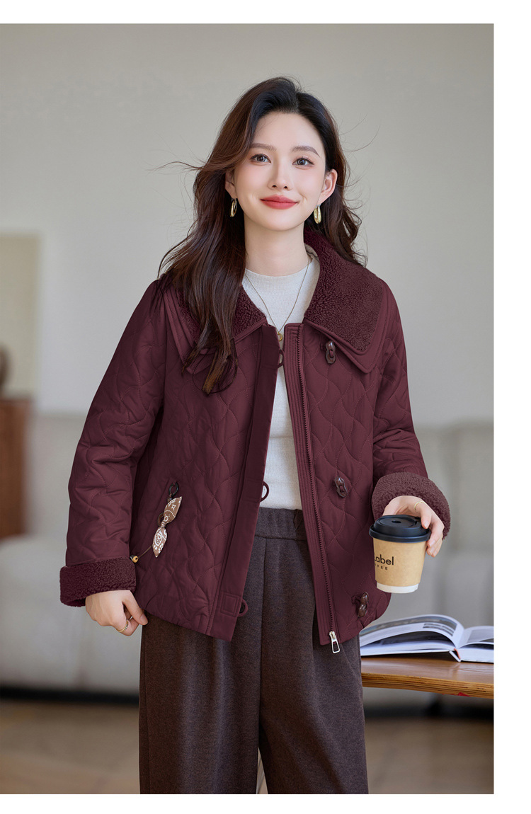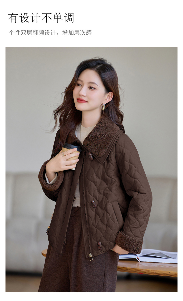 丁摩 时尚撞色大牛角扣加厚秋冬新款新款洋气5ZF-9970 商品图3