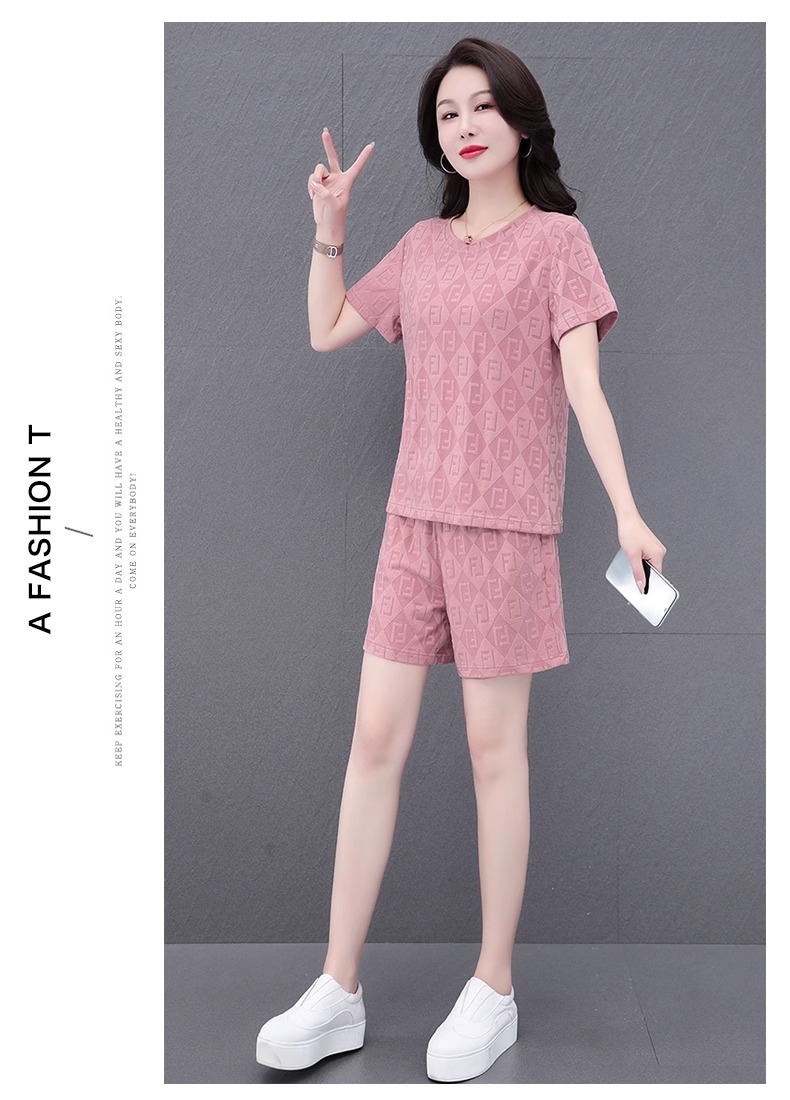 雀说冰丝短袖短裤套装女士新款女装休闲运动跑步五分裤两件套AL2586