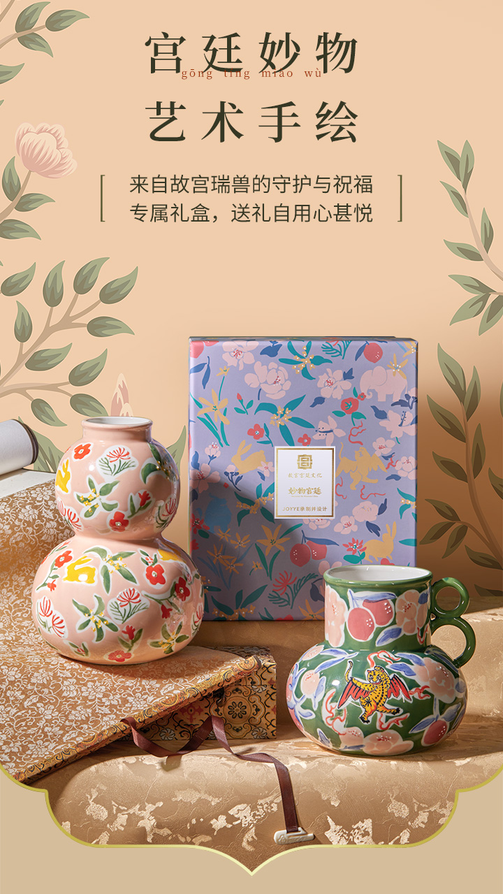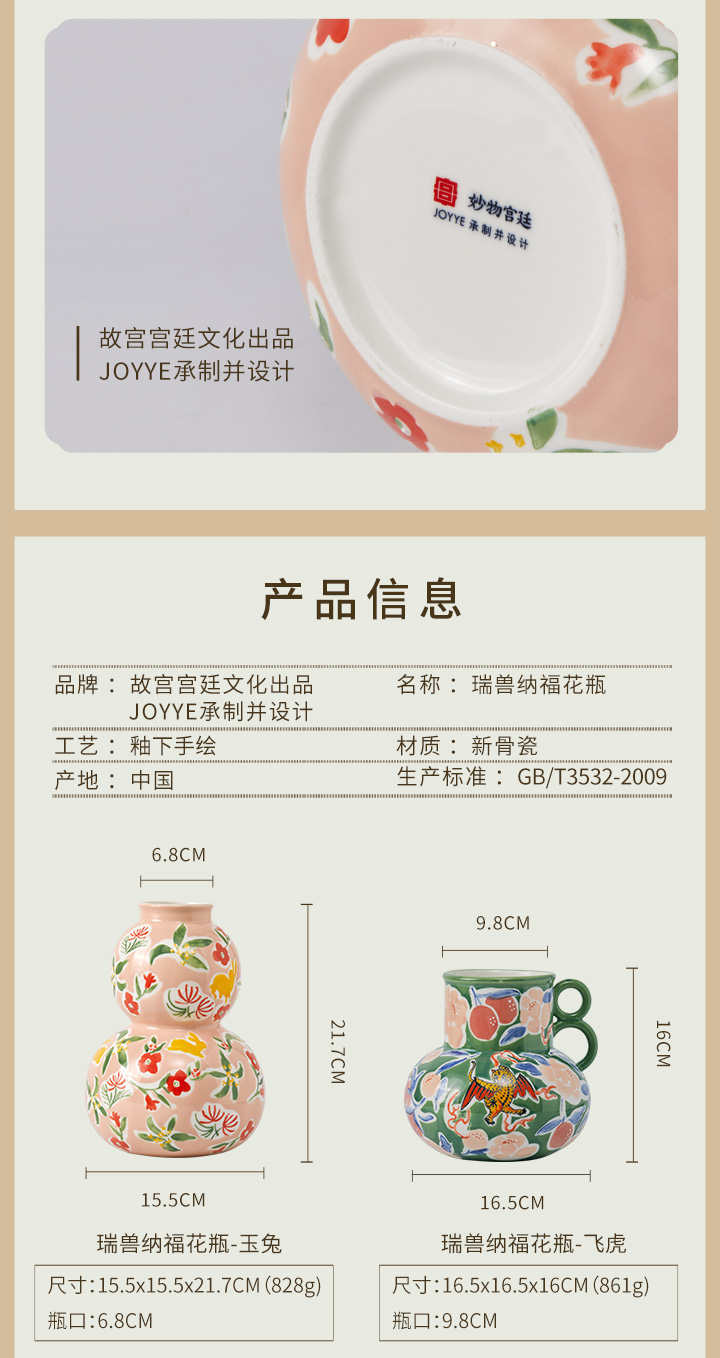JOYYE瑞兽纳福-故宫文化新中式陶瓷葫芦花器客厅插花摆件高档送礼花瓶礼盒