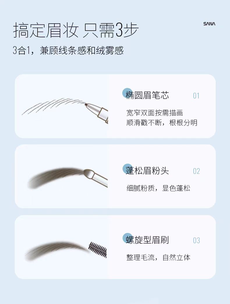 日本SANA莎娜 三合一眉笔防水持久不脱色眉粉眉刷三用【本商品不可用券】