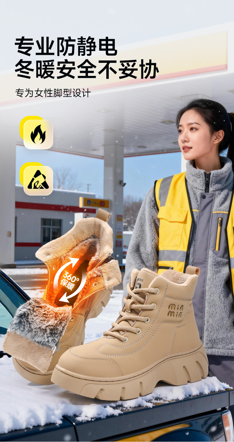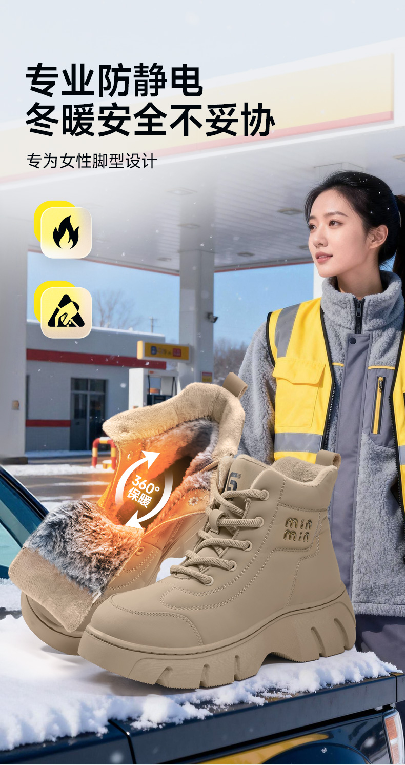 冬季新款防静电安全防护鞋无包头无中底橡胶底防水高帮