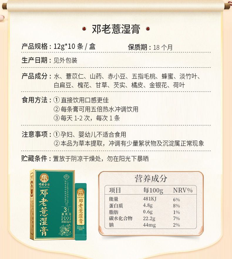 【每买3送1】国医邓老金方薏湿膏12g*10/盒