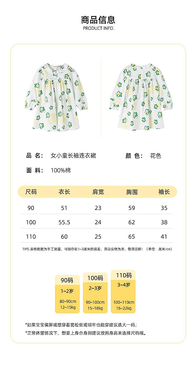 【MQD】童装秋新款女童碎花满版可爱连衣裙儿童时尚甜美公主裙奥莱