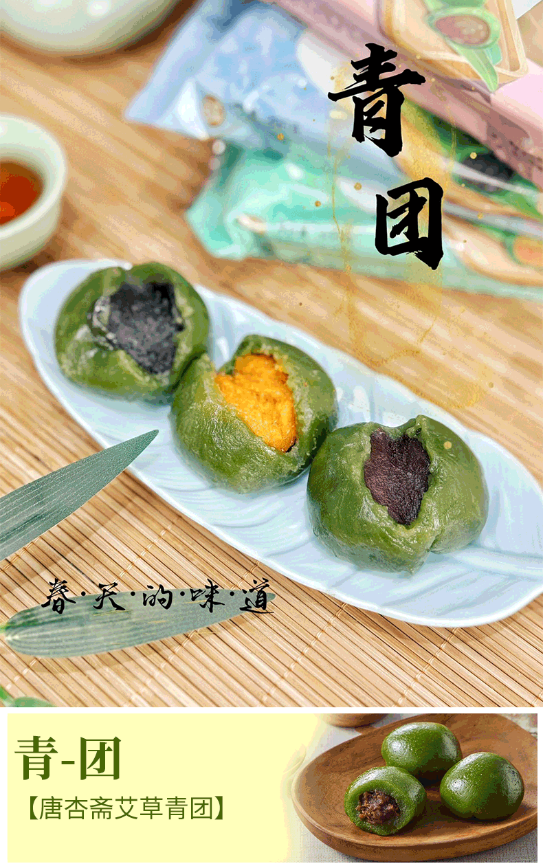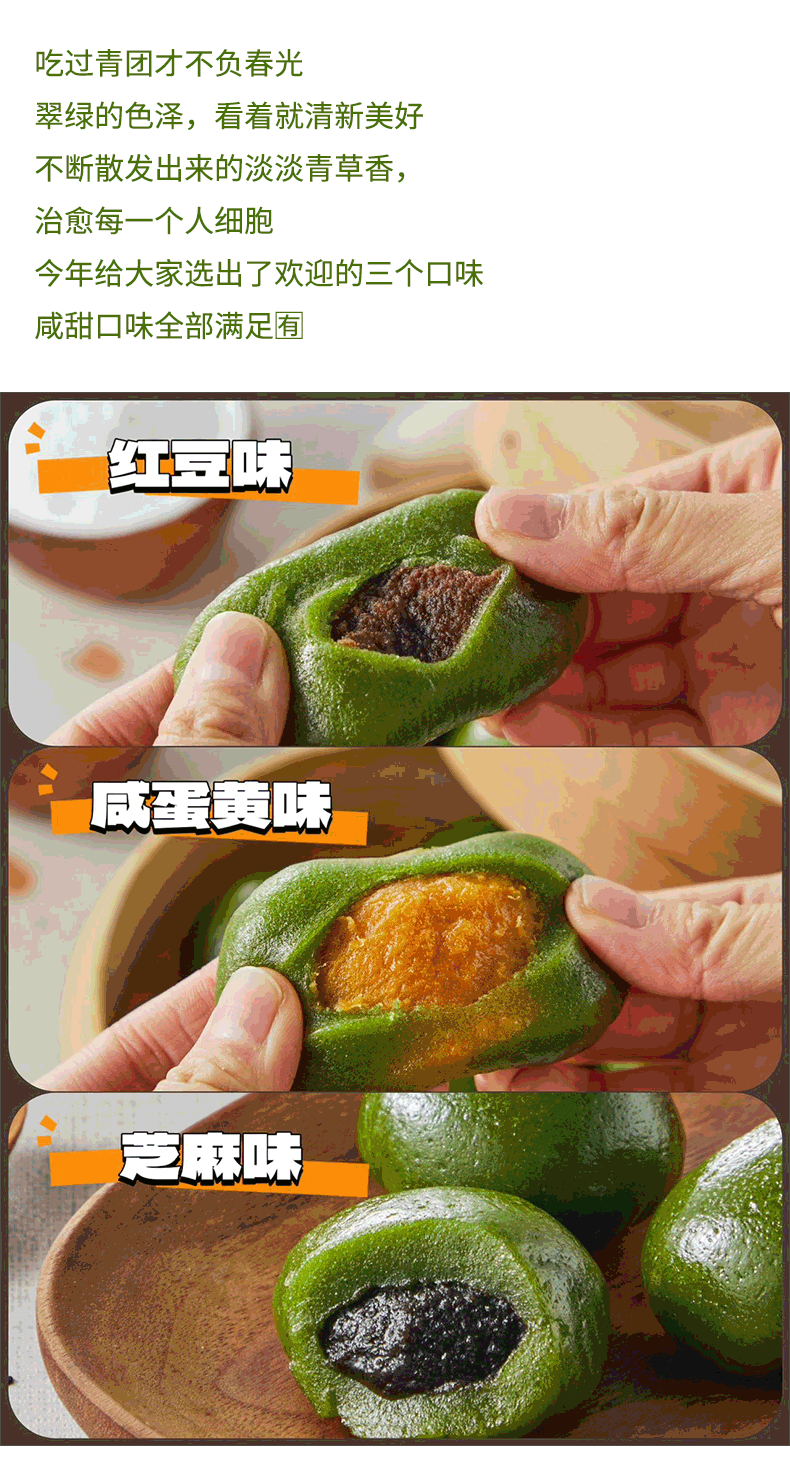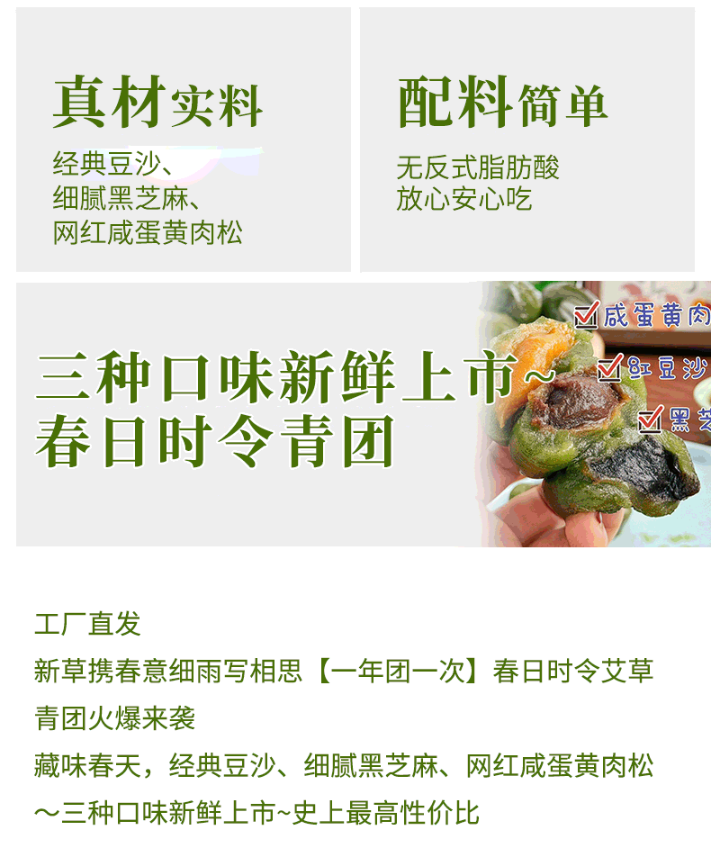 艾草青团 真材实料 配料简单 无反式脂肪酸 三种口味新鲜上市
