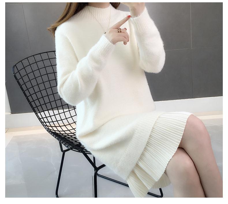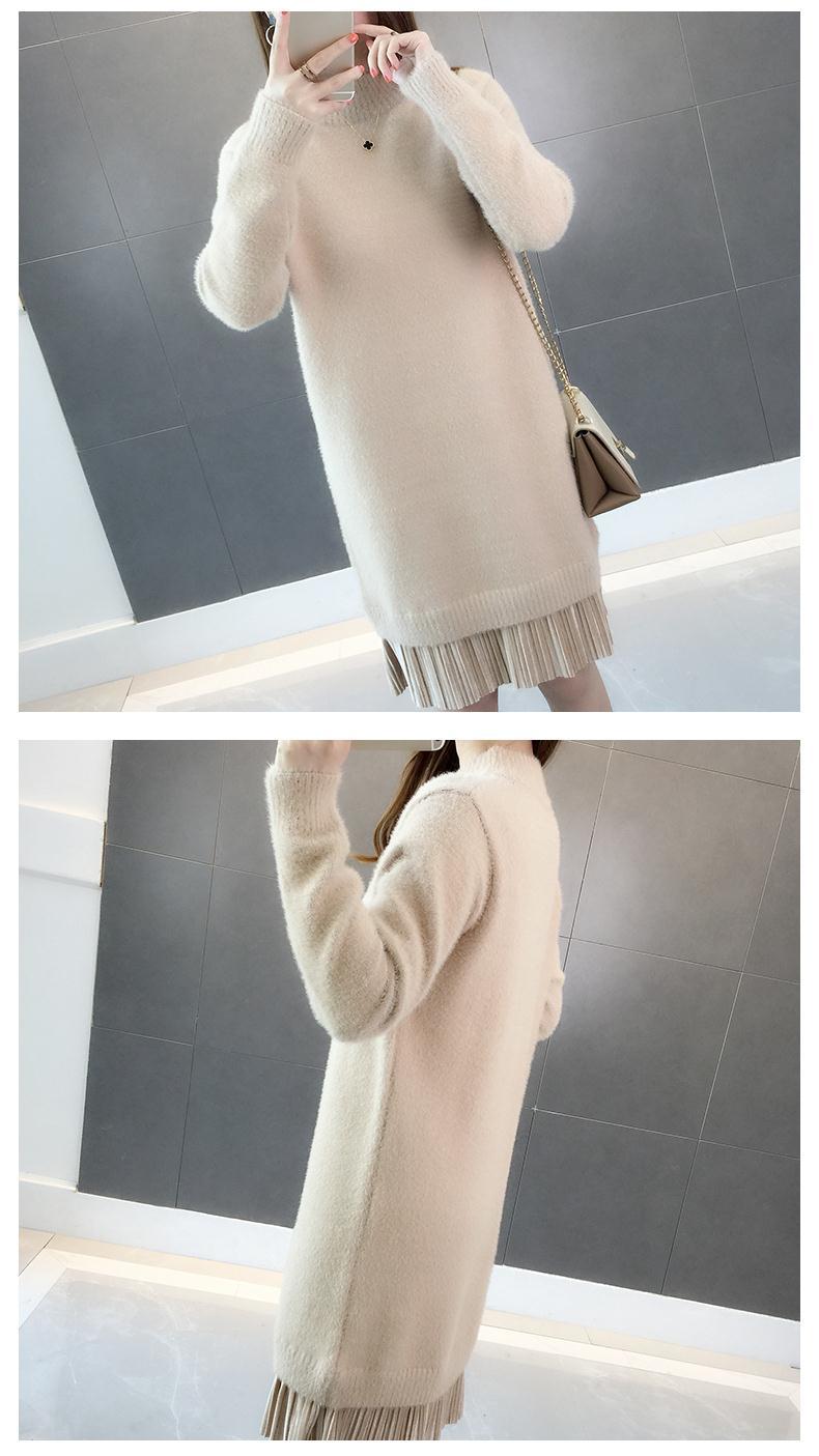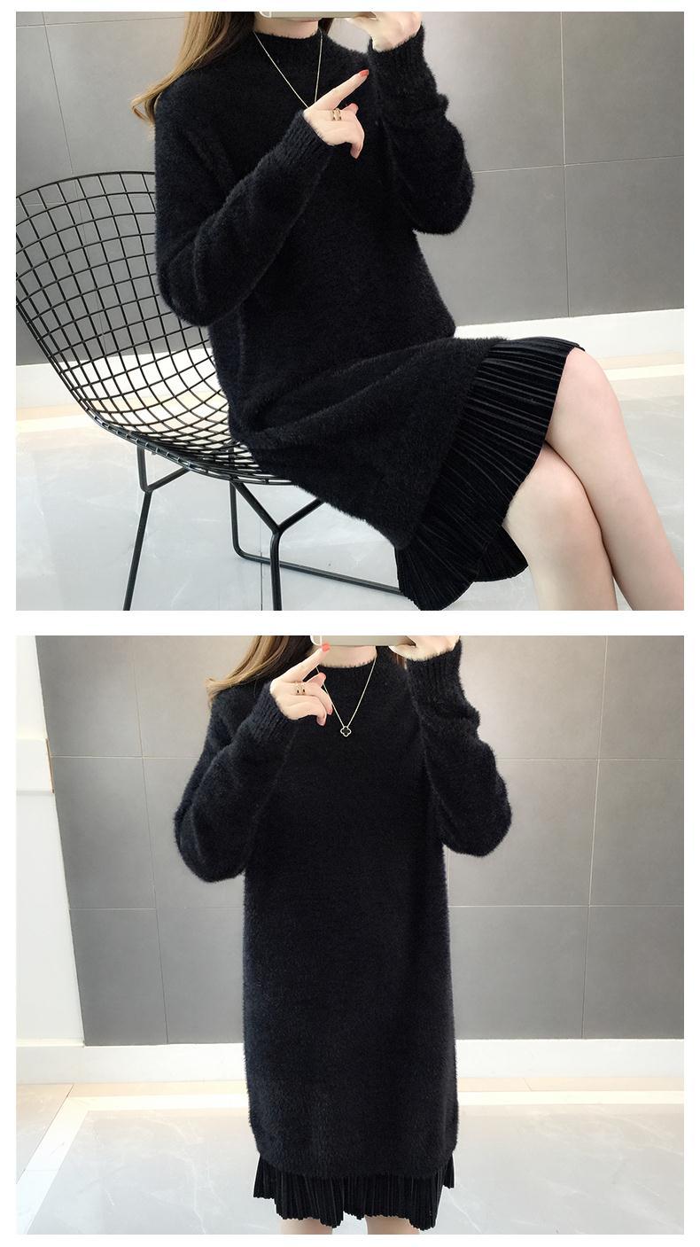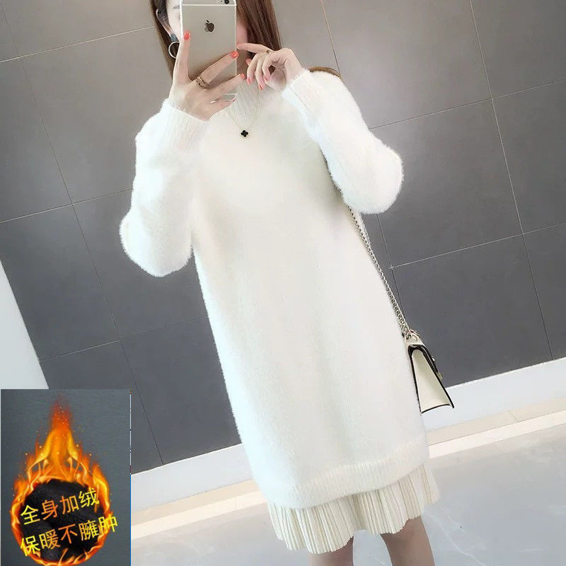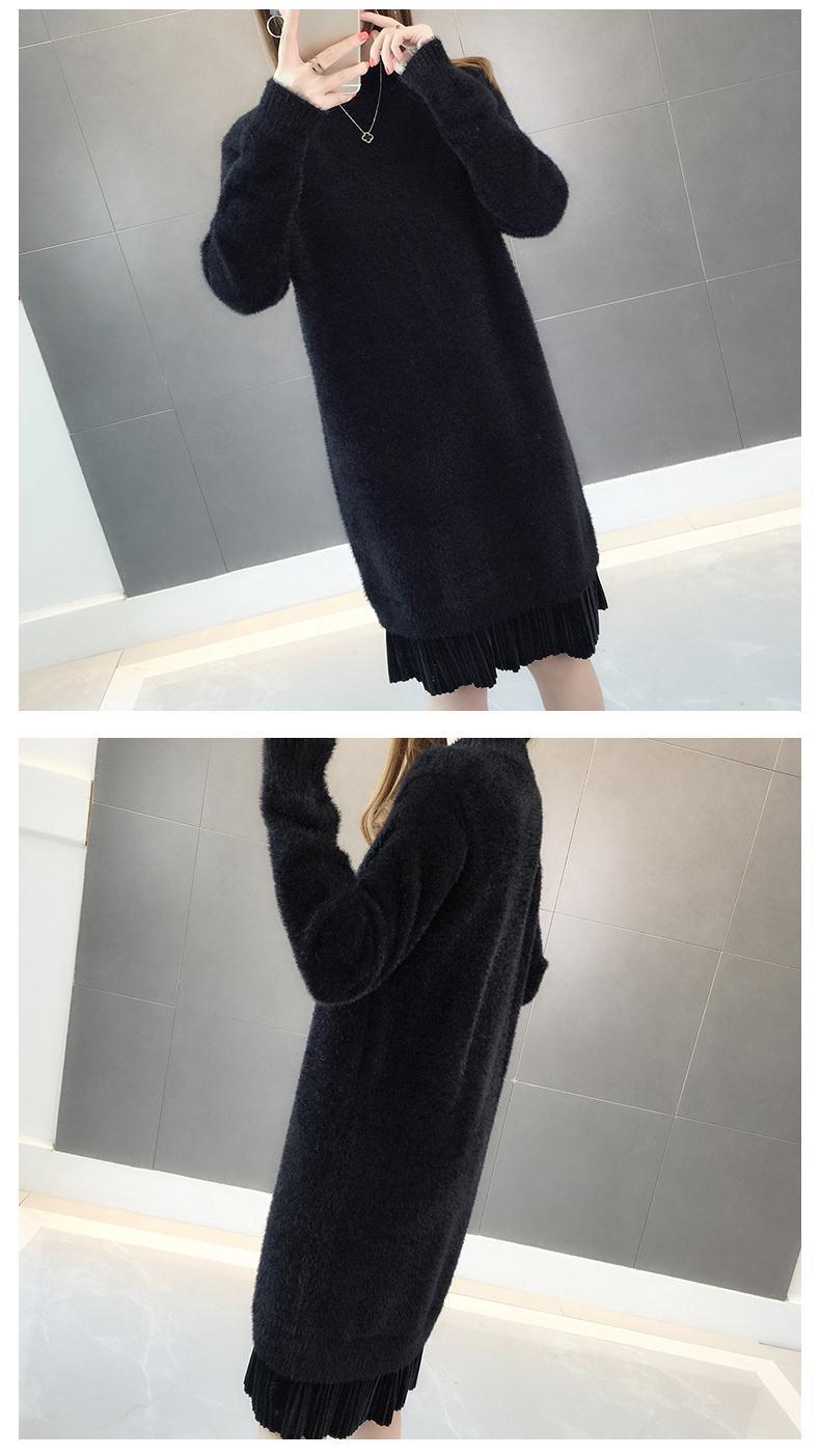 GO9P 中长款仿水貂绒毛衣冬新款打底衫加厚针织蕾丝毛衣裙