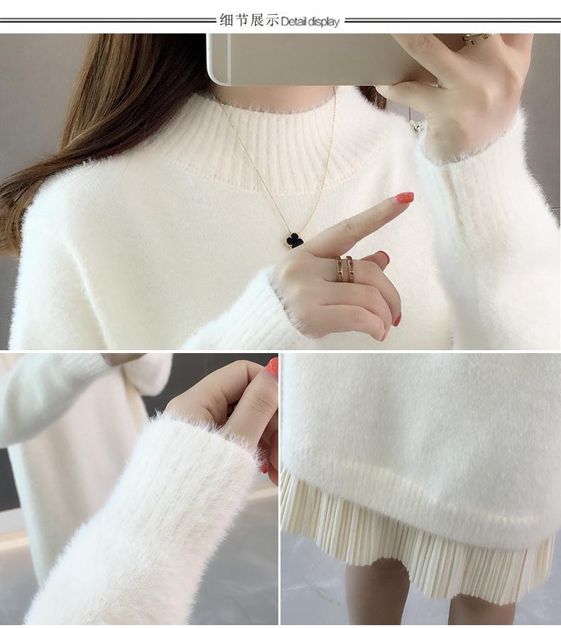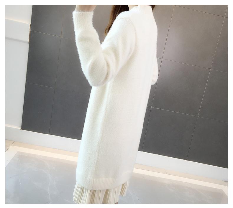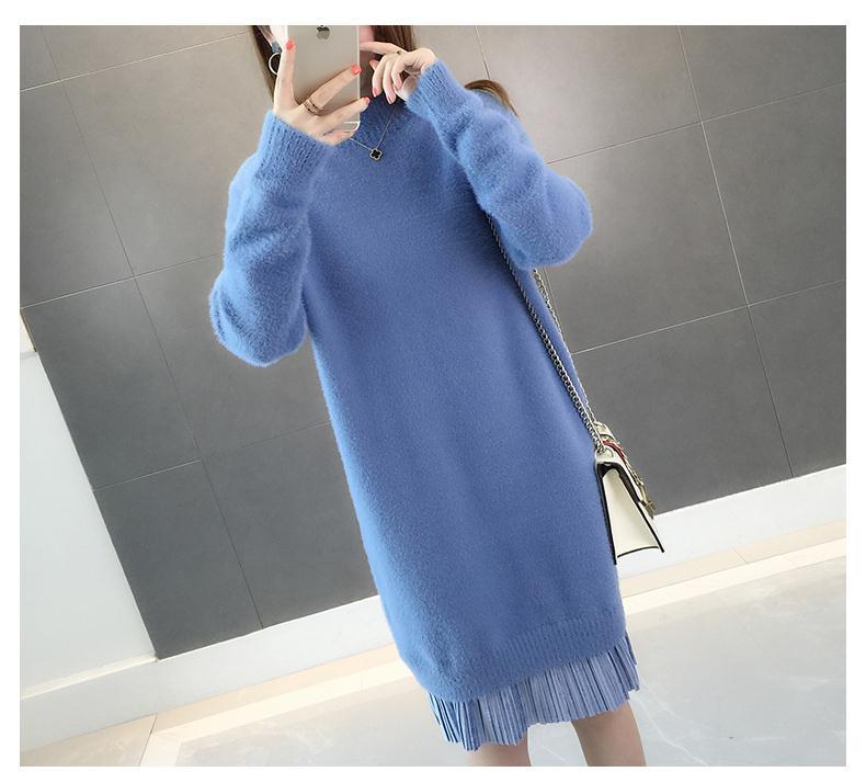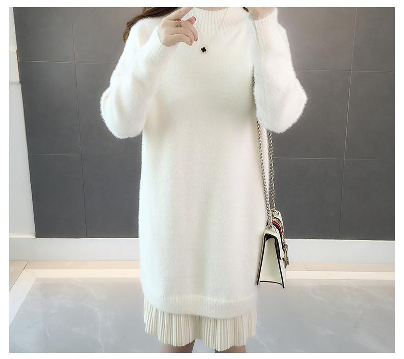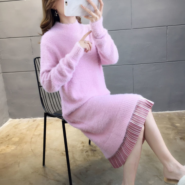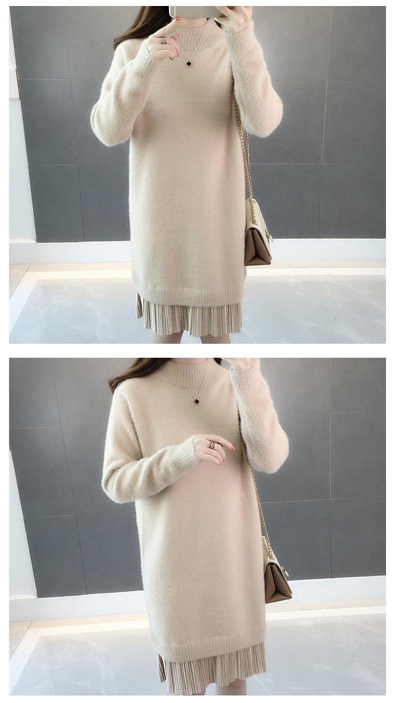 GO9P 中长款仿水貂绒毛衣冬新款打底衫加厚针织蕾丝毛衣裙