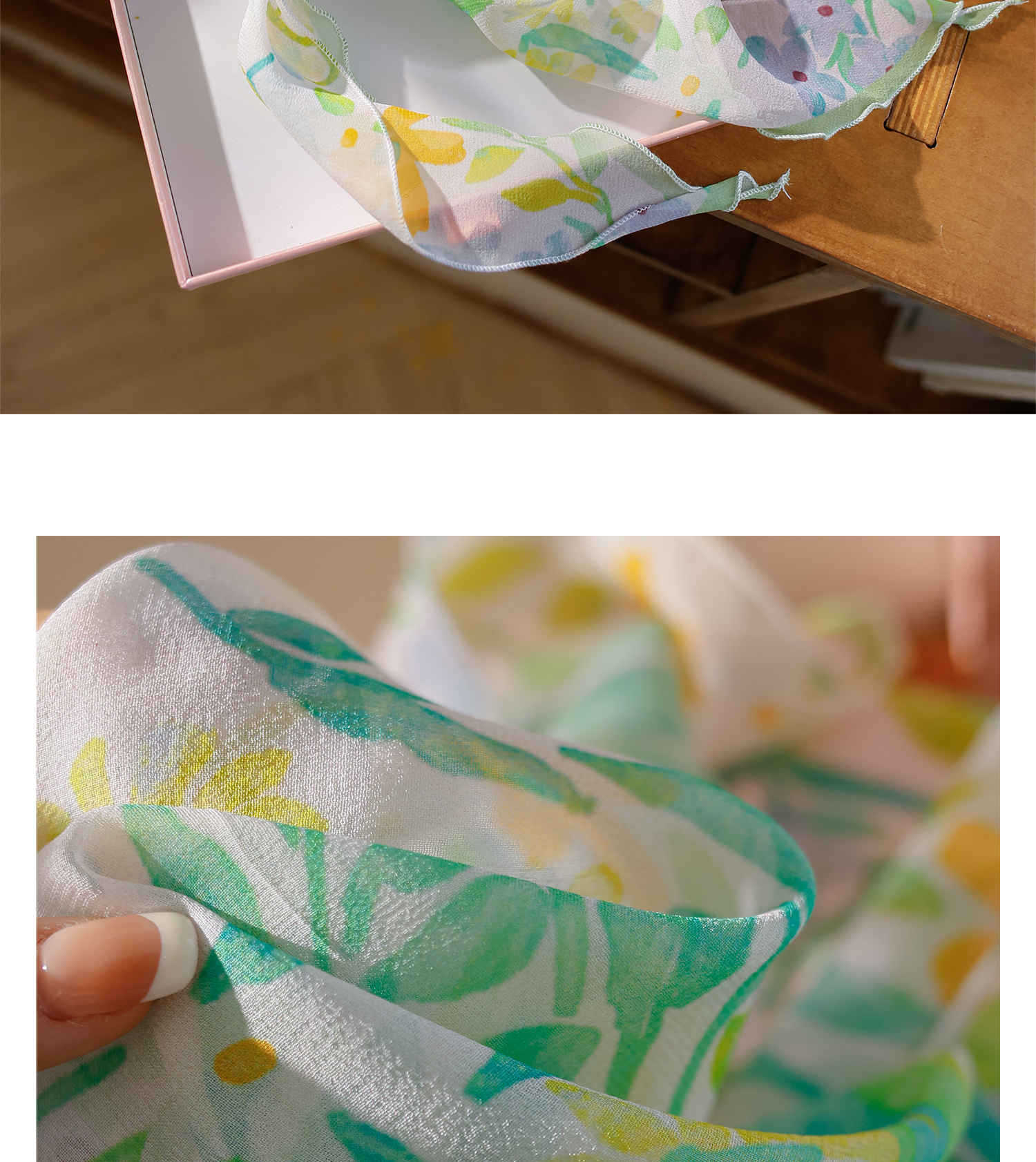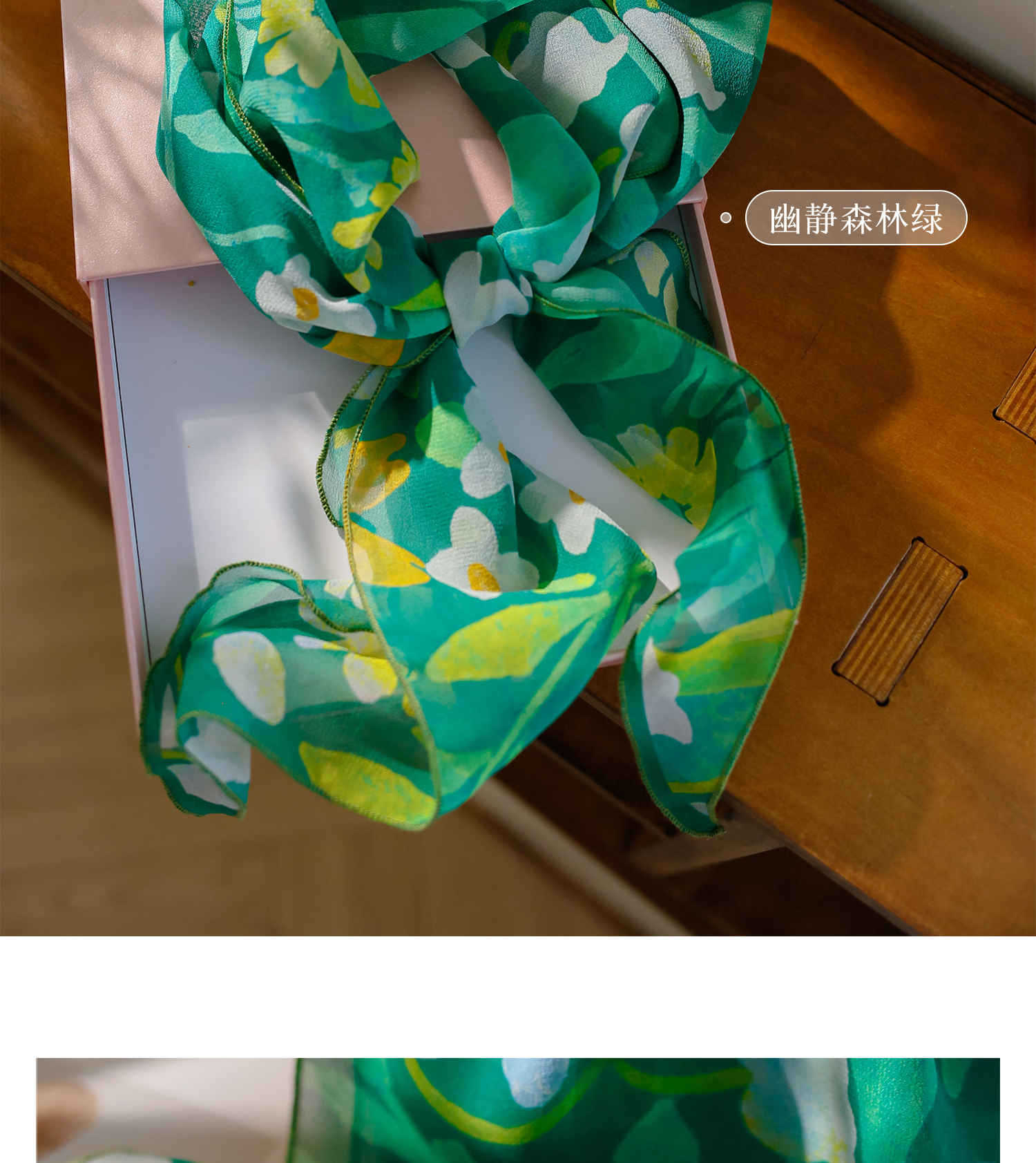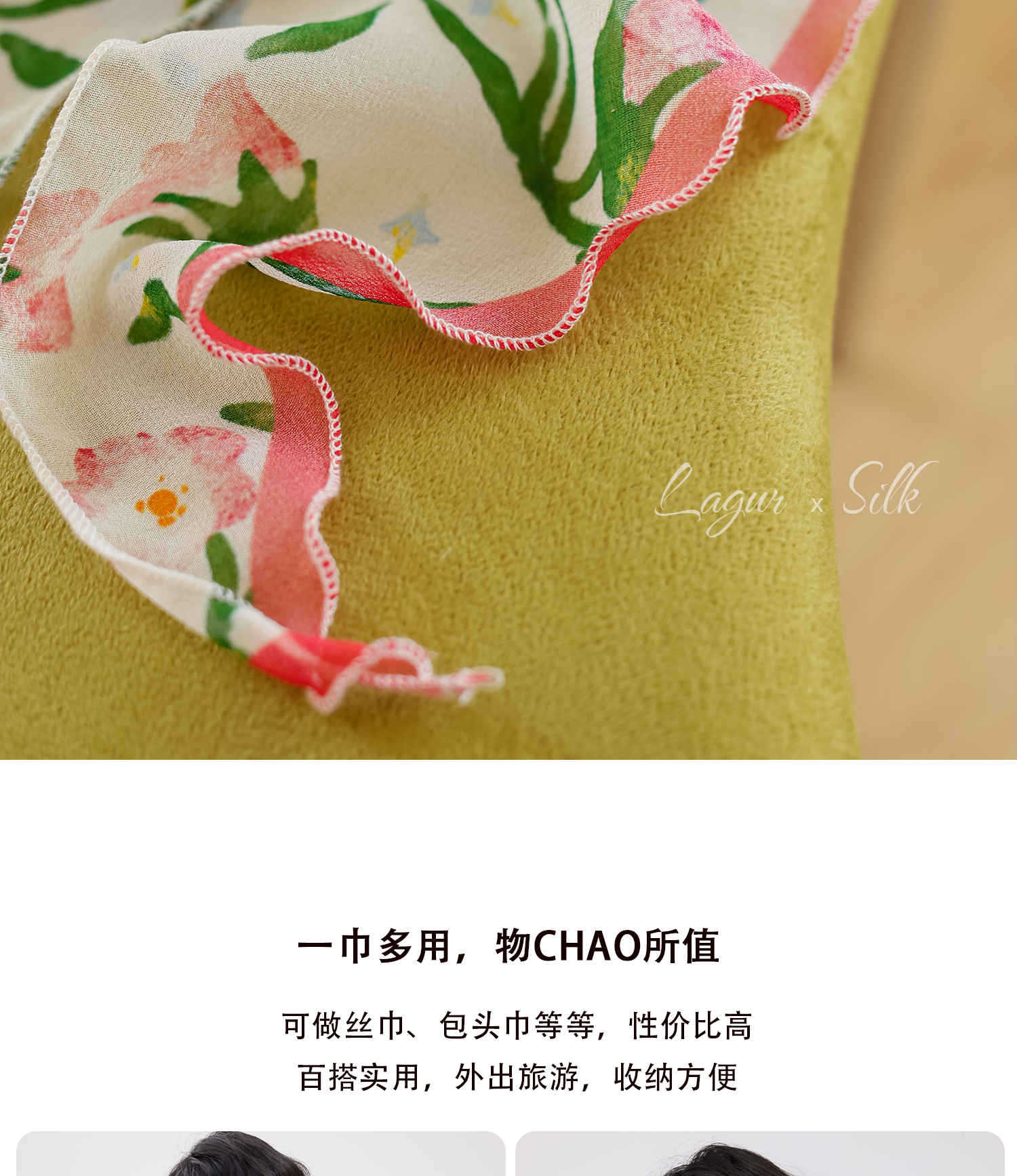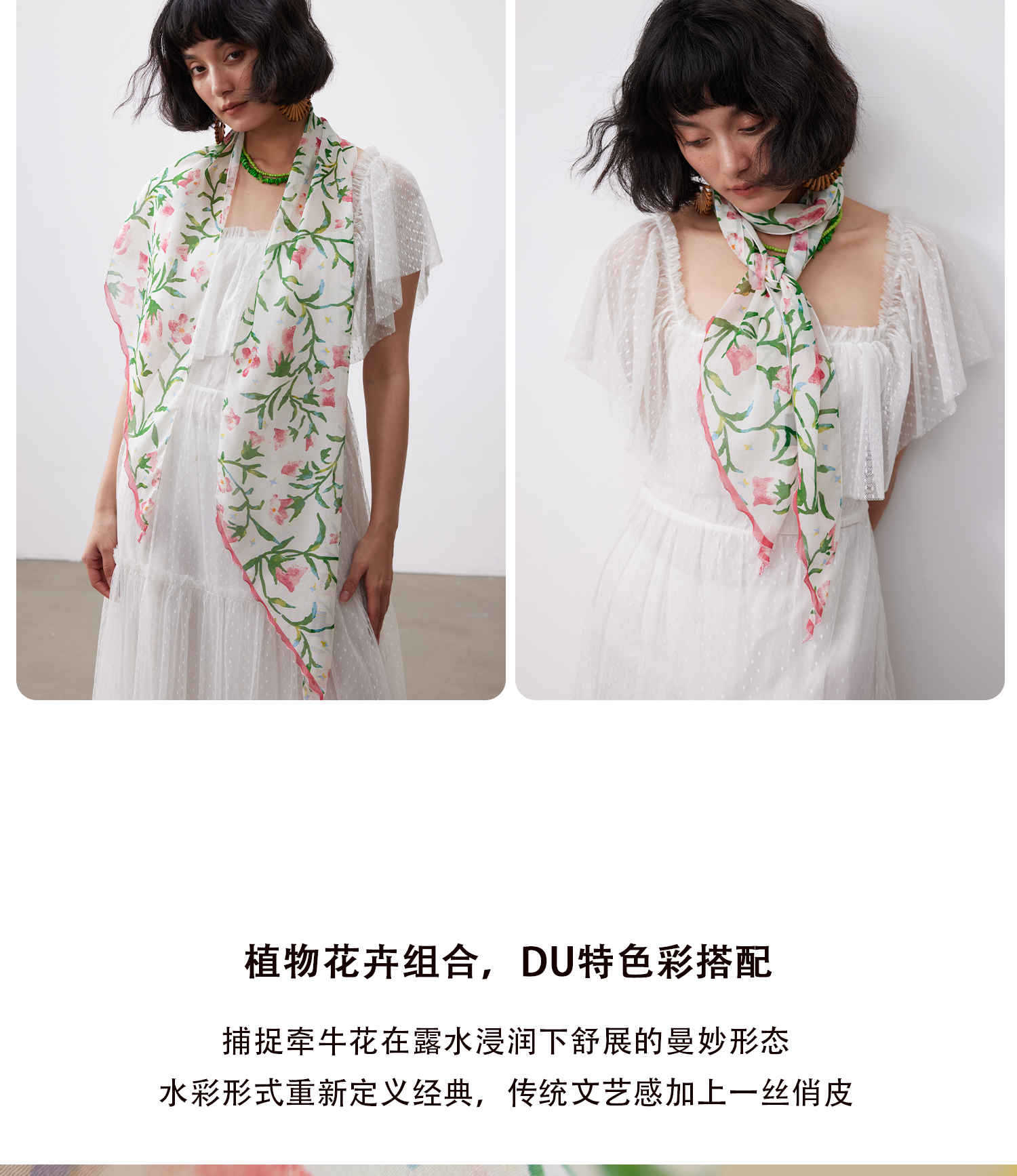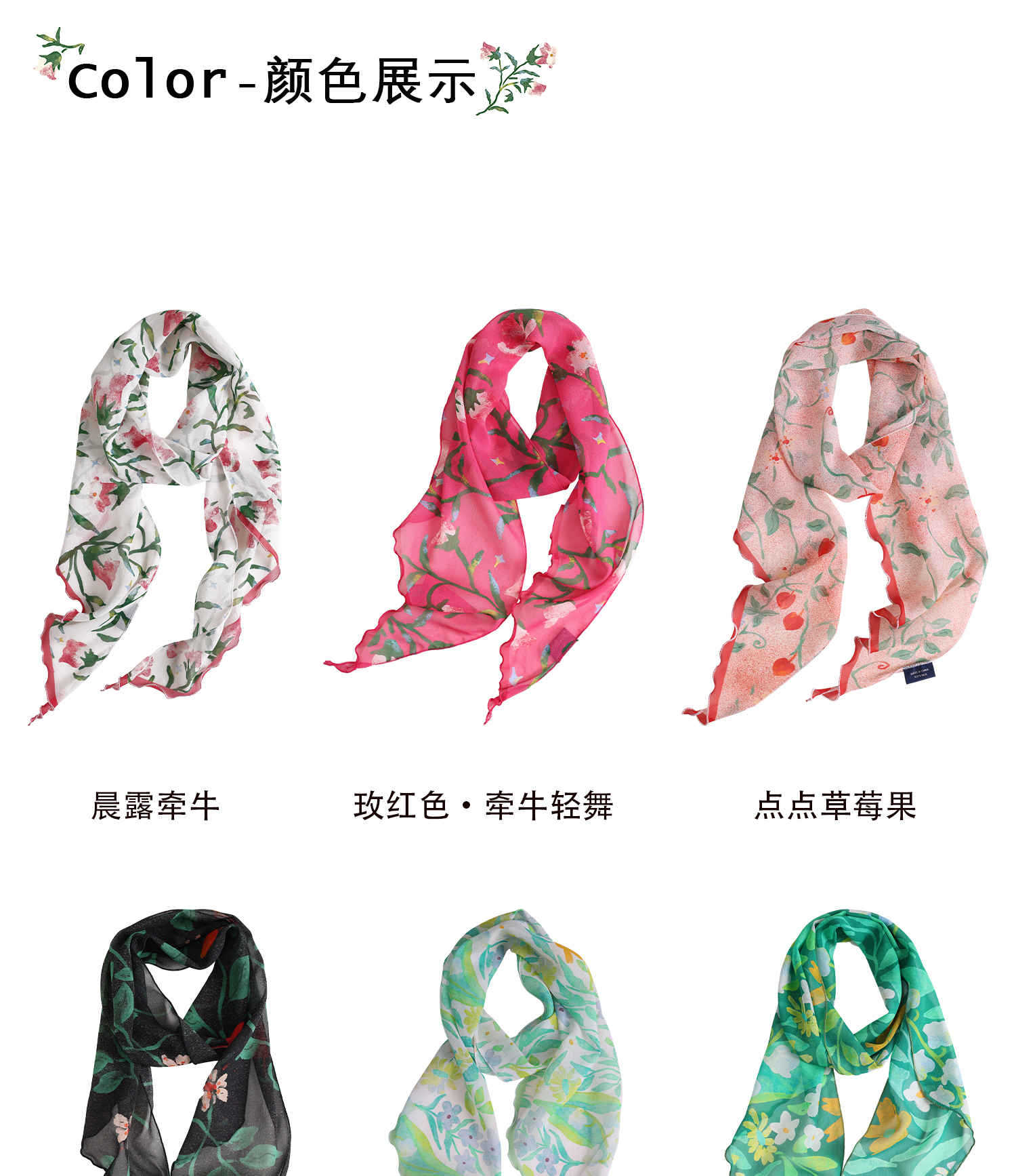 「晨露牵牛」100%乔其真丝长款围巾薄款桑蚕丝丝巾女氛围感长条巾 商品图4
