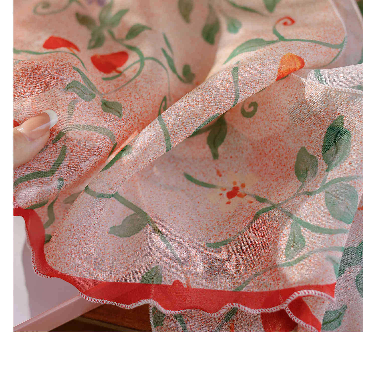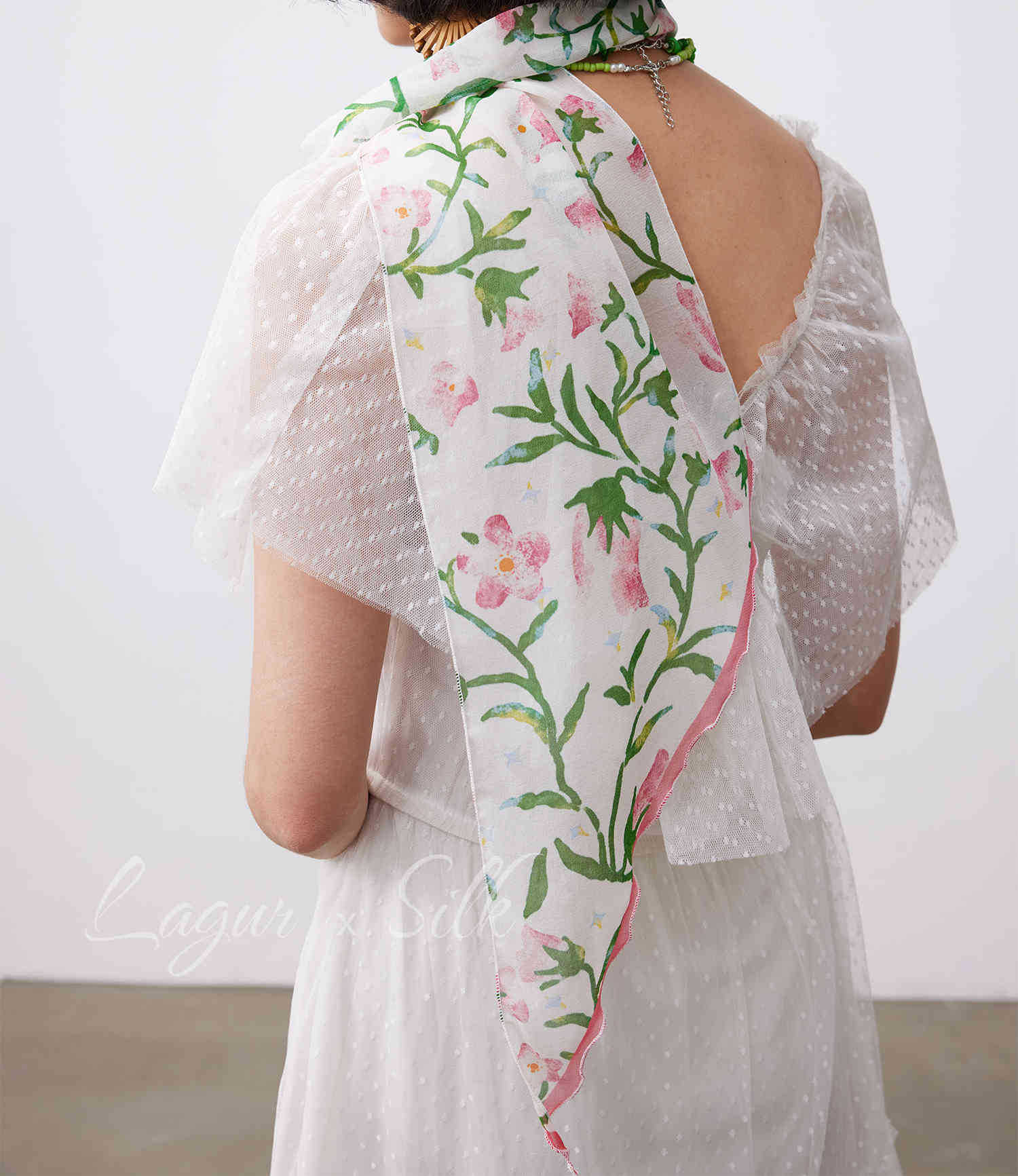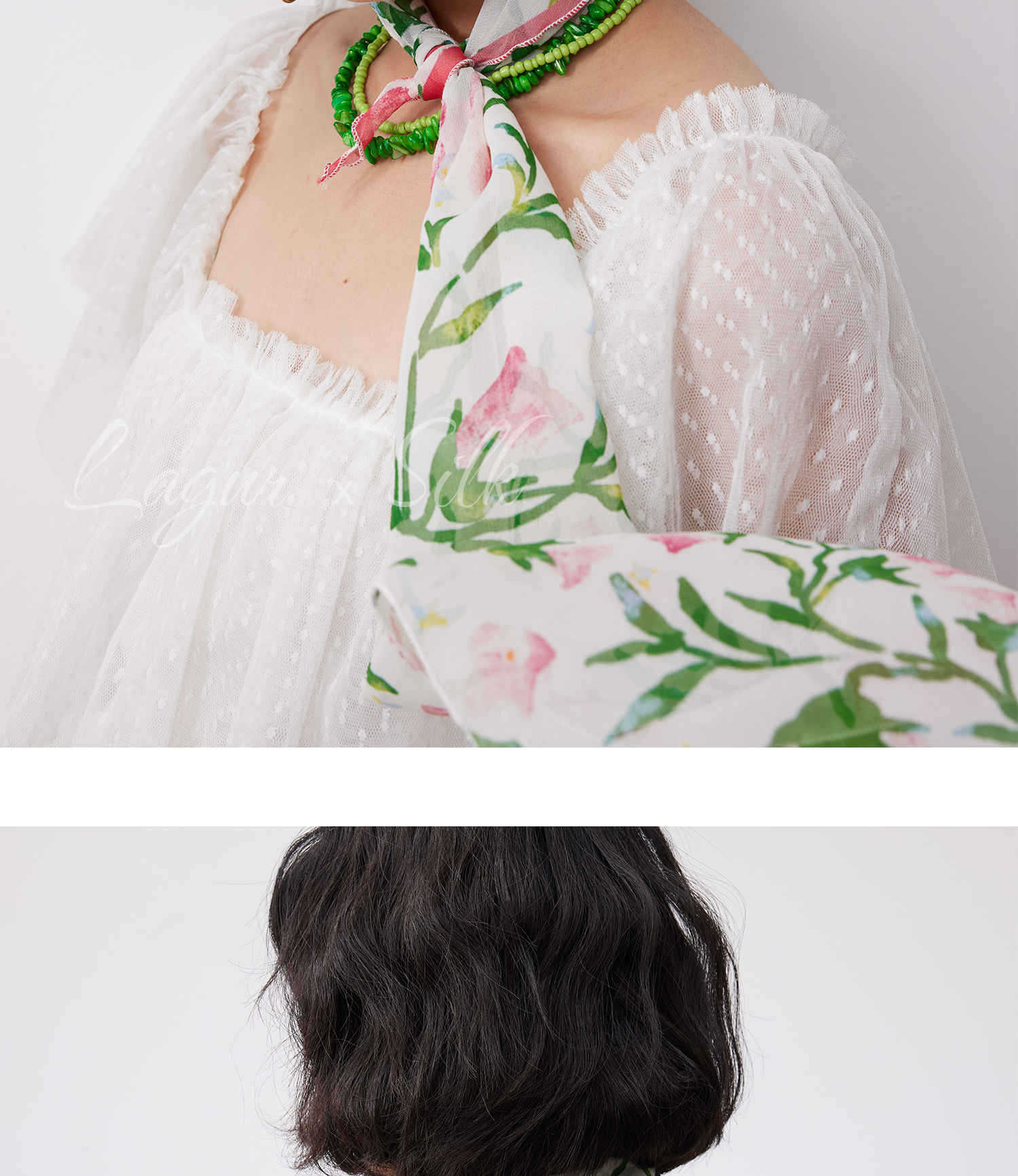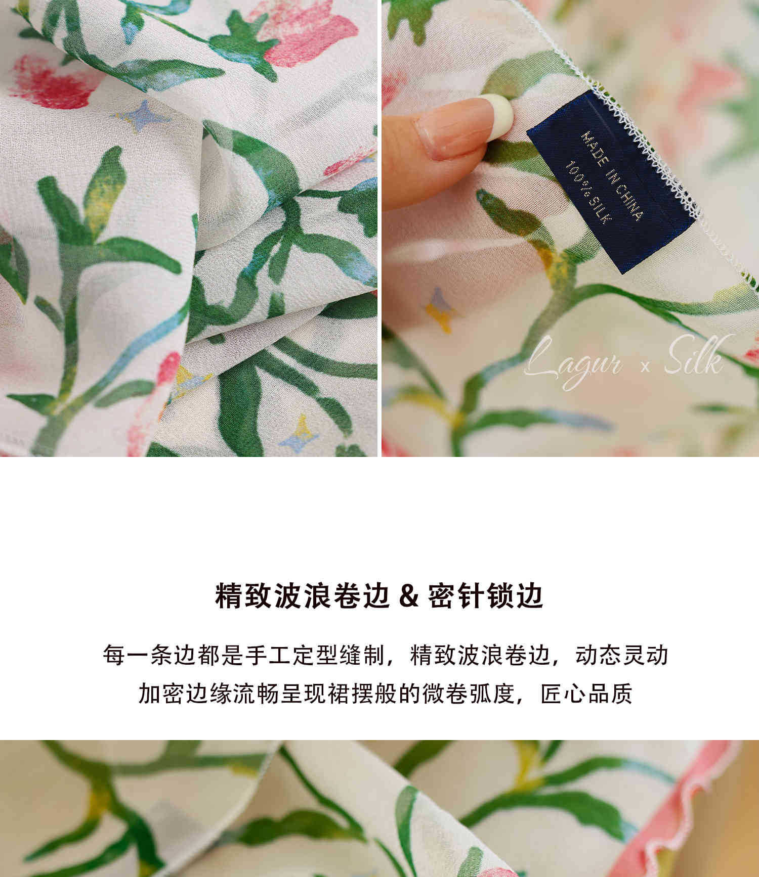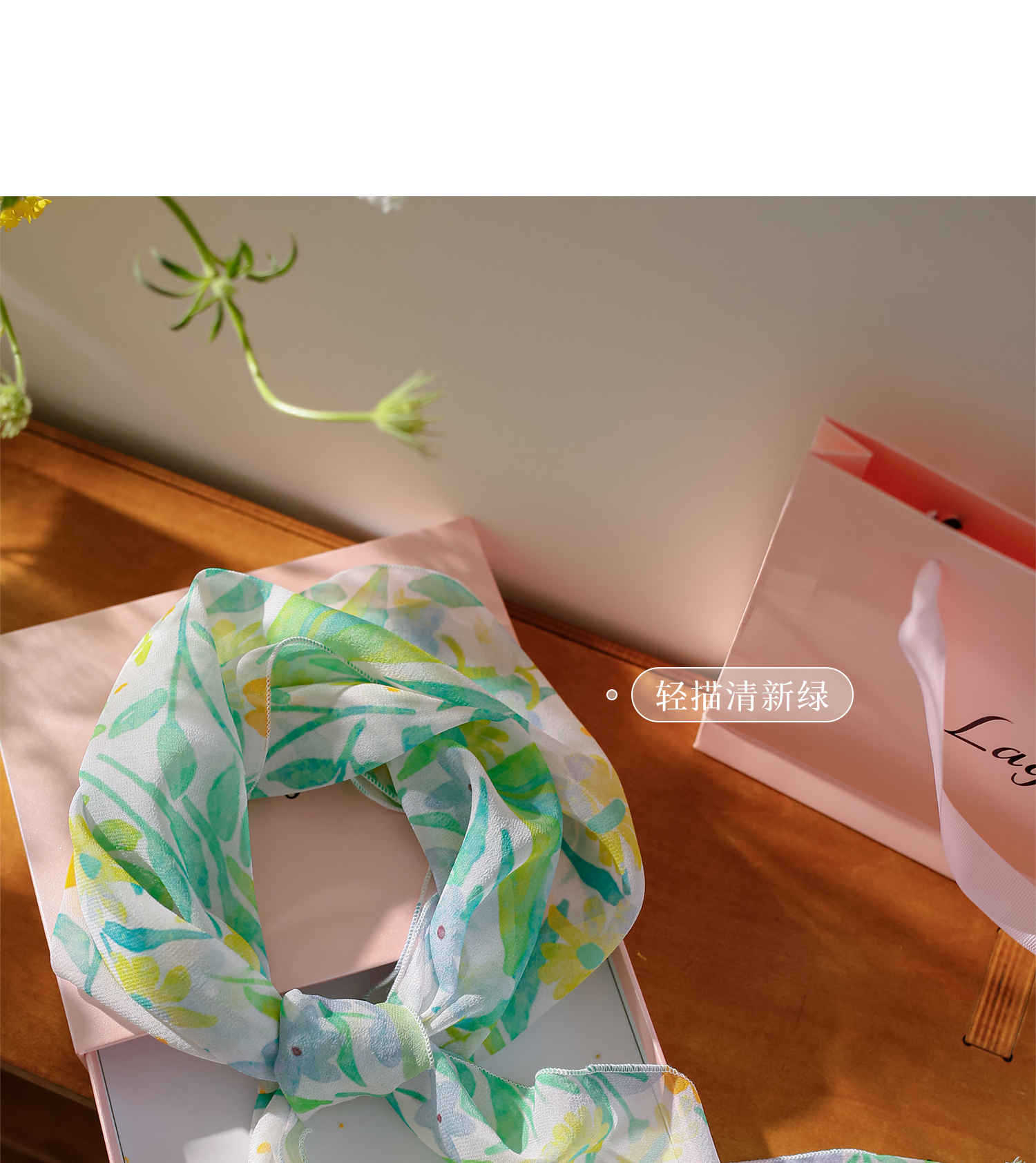「晨露牵牛」100%乔其真丝长款围巾薄款桑蚕丝丝巾女氛围感长条巾 商品图4