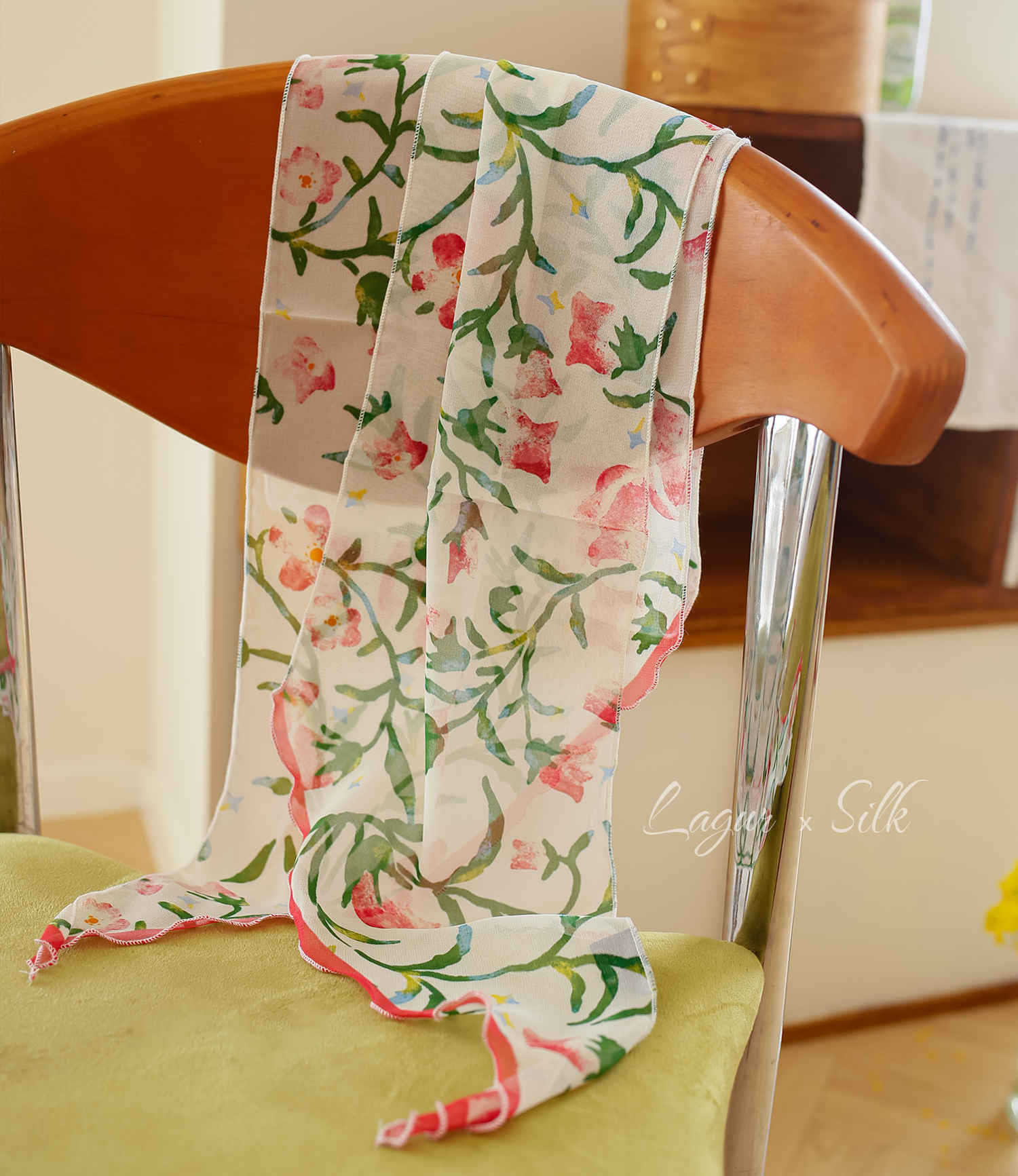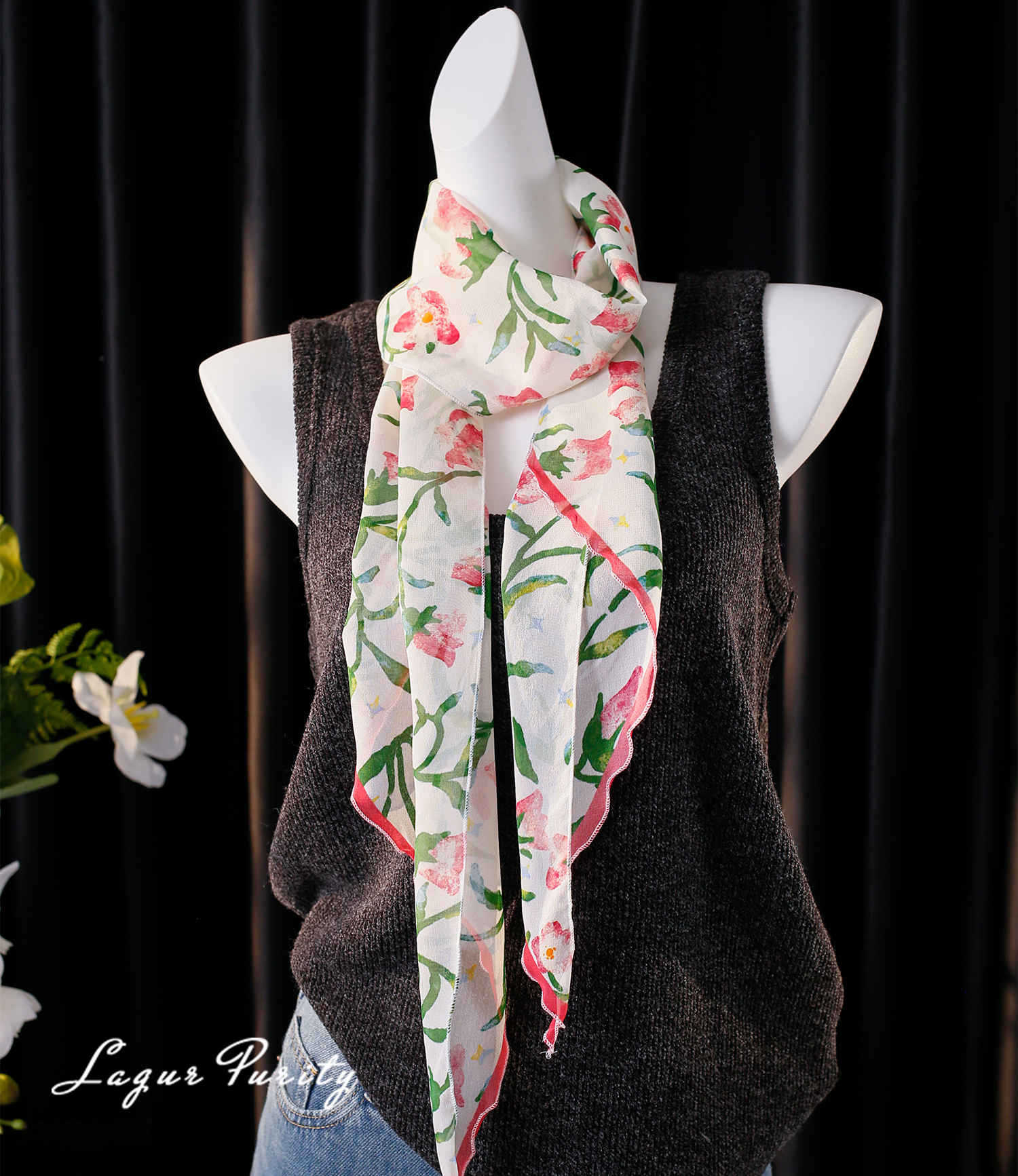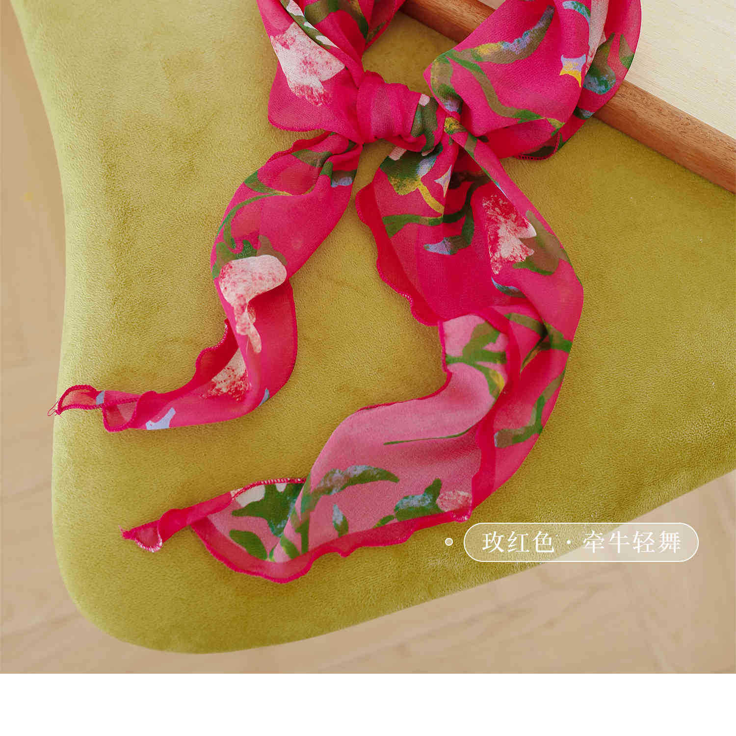 「晨露牵牛」100%乔其真丝长款围巾薄款桑蚕丝丝巾女氛围感长条巾 商品图0