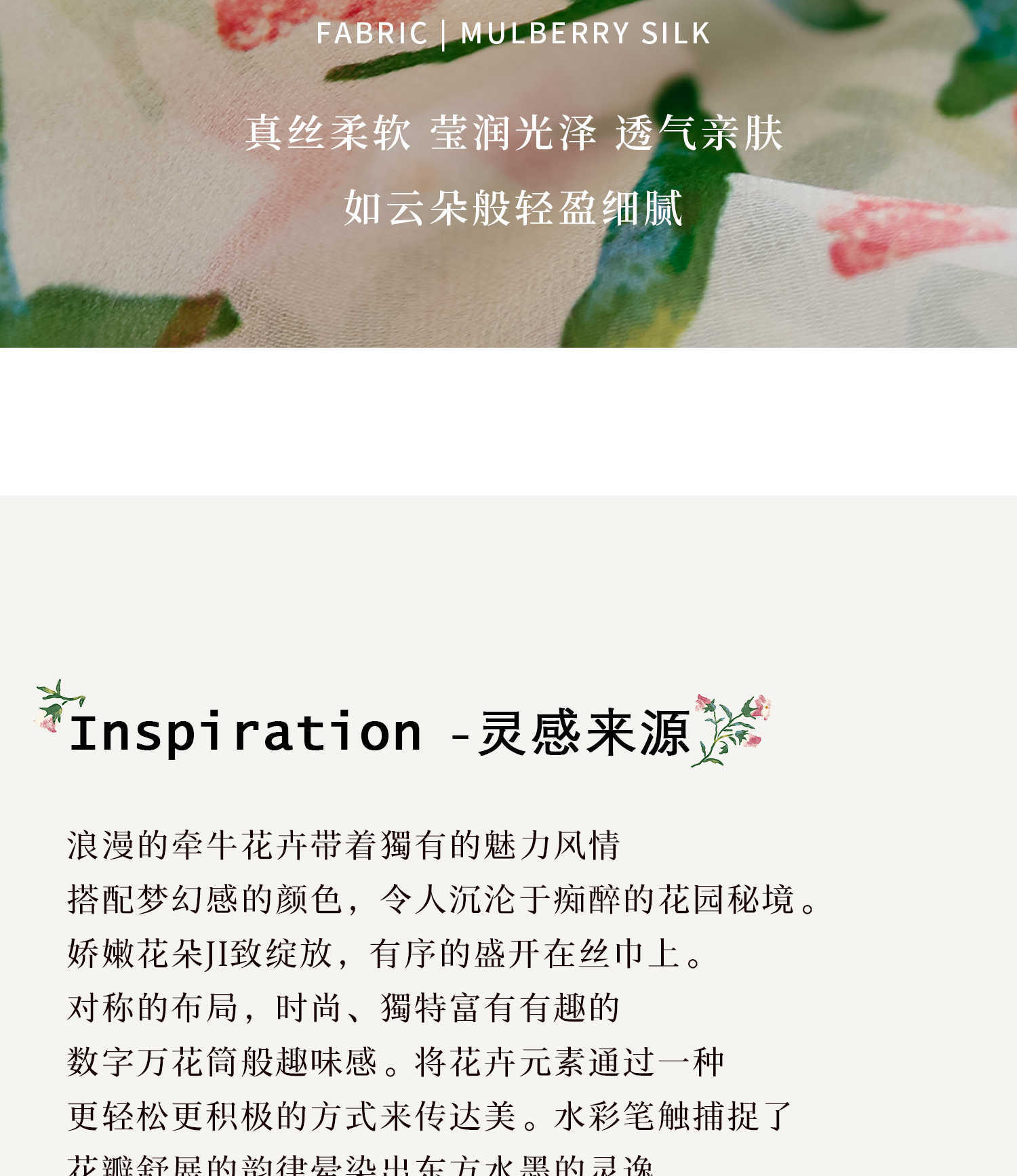 「晨露牵牛」100%乔其真丝长款围巾薄款桑蚕丝丝巾女氛围感长条巾 商品图2