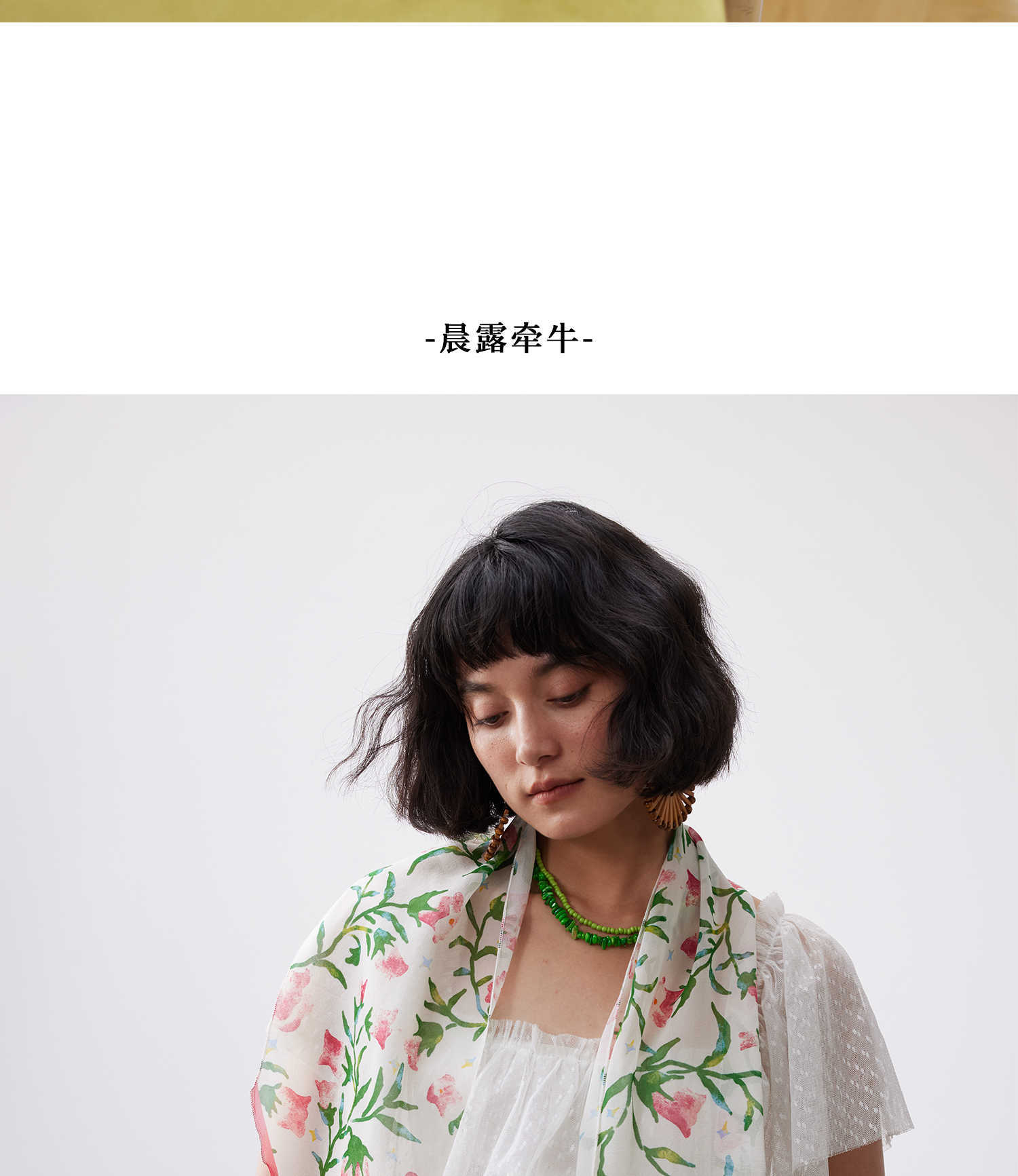 「晨露牵牛」100%乔其真丝长款围巾薄款桑蚕丝丝巾女氛围感长条巾 商品图1