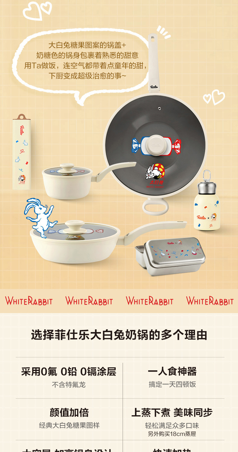 【IP联名-乐彩+大白兔全家福】大白兔IP联名锅具周边全家福+乐彩系列