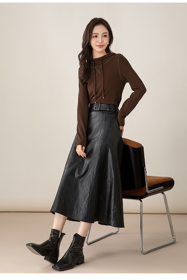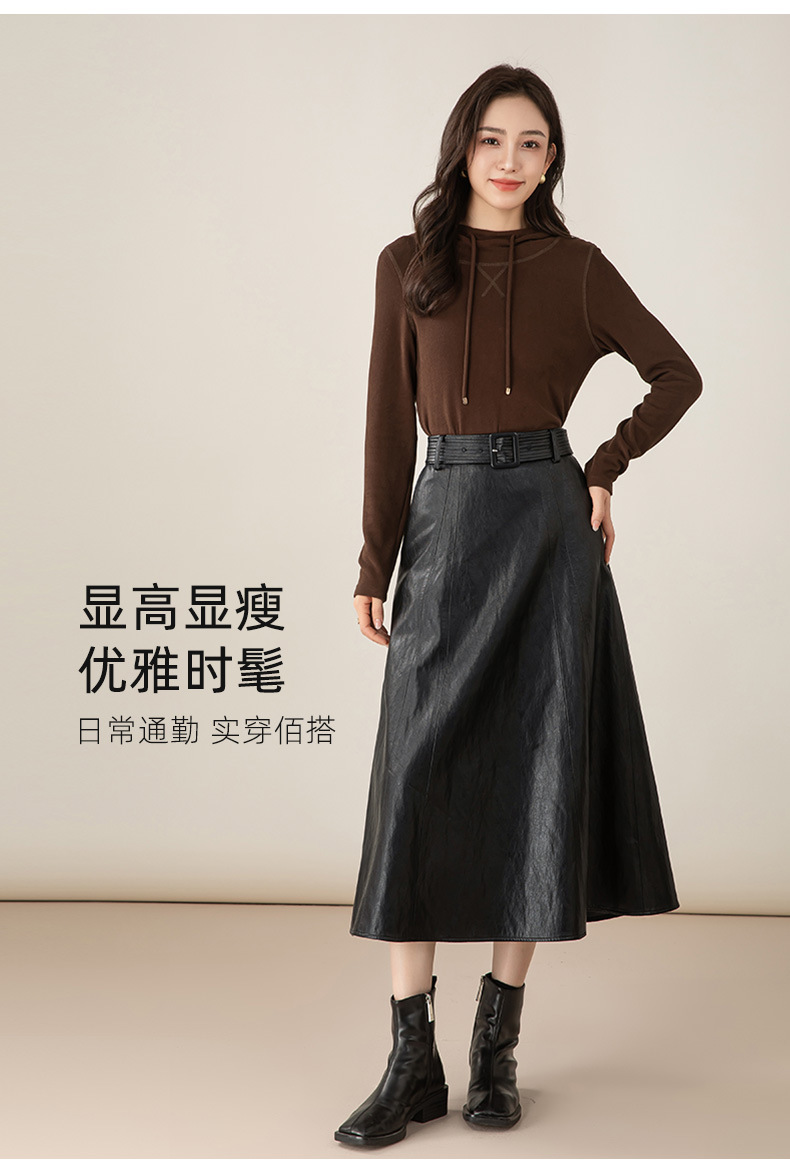 雀说新款韩版设计感百搭系带pu皮半身裙法式优雅百搭长裙AL65731 商品图0