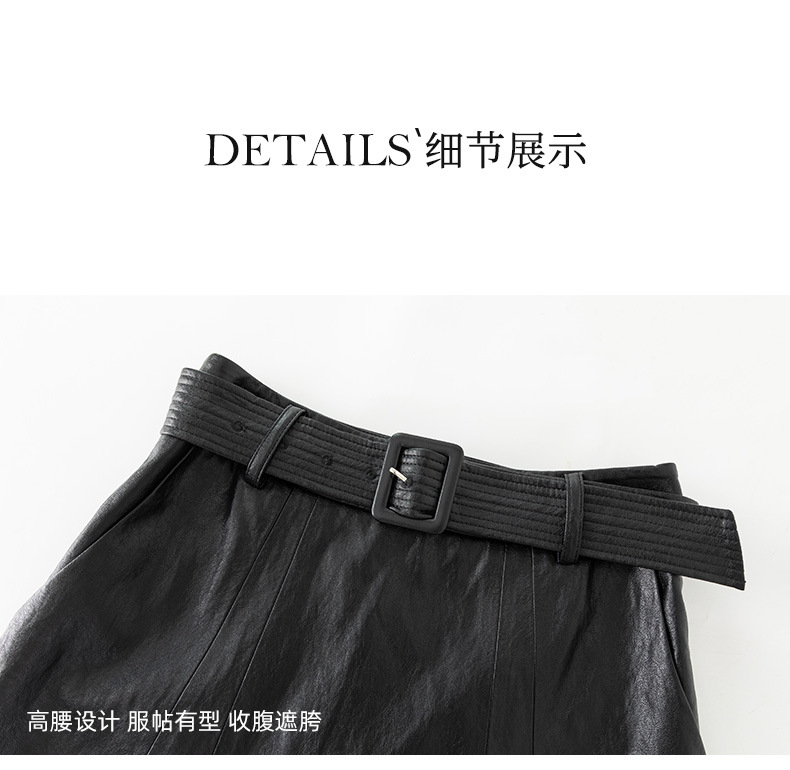 雀说新款韩版设计感百搭系带pu皮半身裙法式优雅百搭长裙AL65731 商品图3