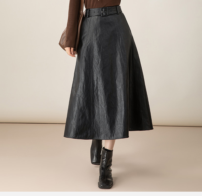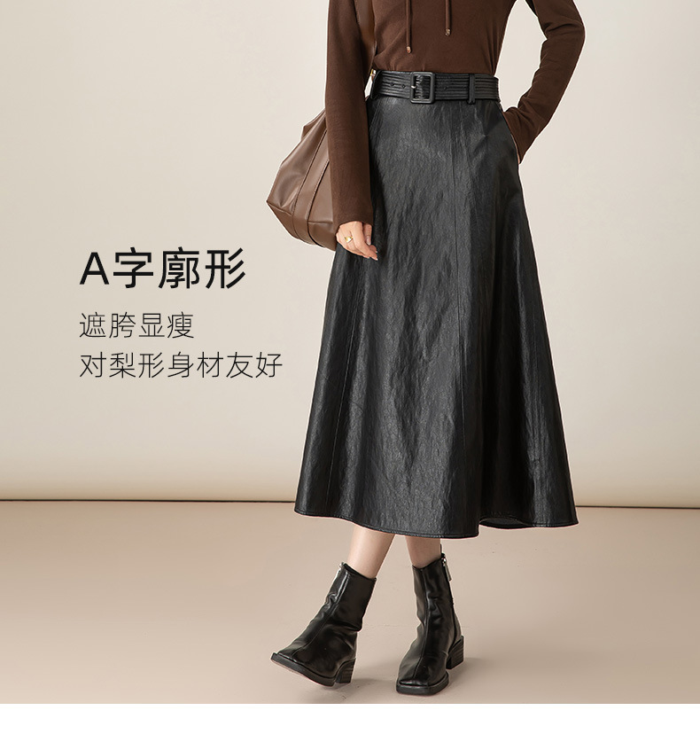 雀说新款韩版设计感百搭系带pu皮半身裙法式优雅百搭长裙AL65731 商品图1