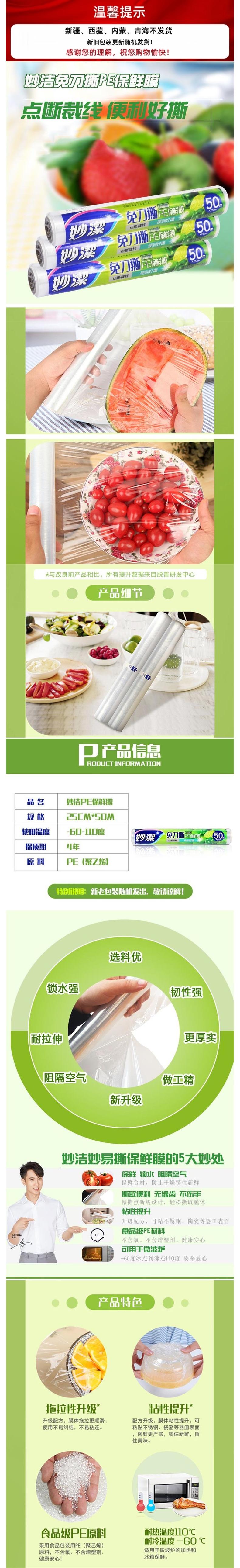 妙洁 免刀撕PE保鲜膜50米中碗经济装*4卷 MJ50M04J