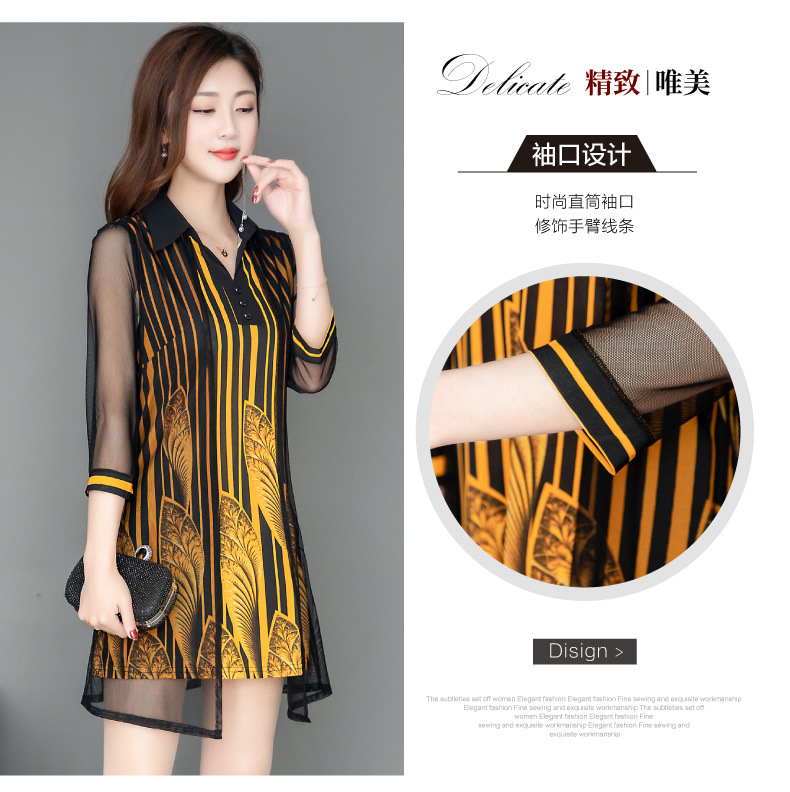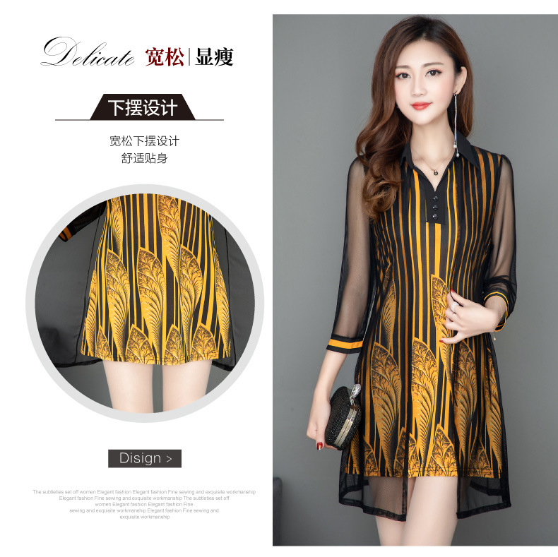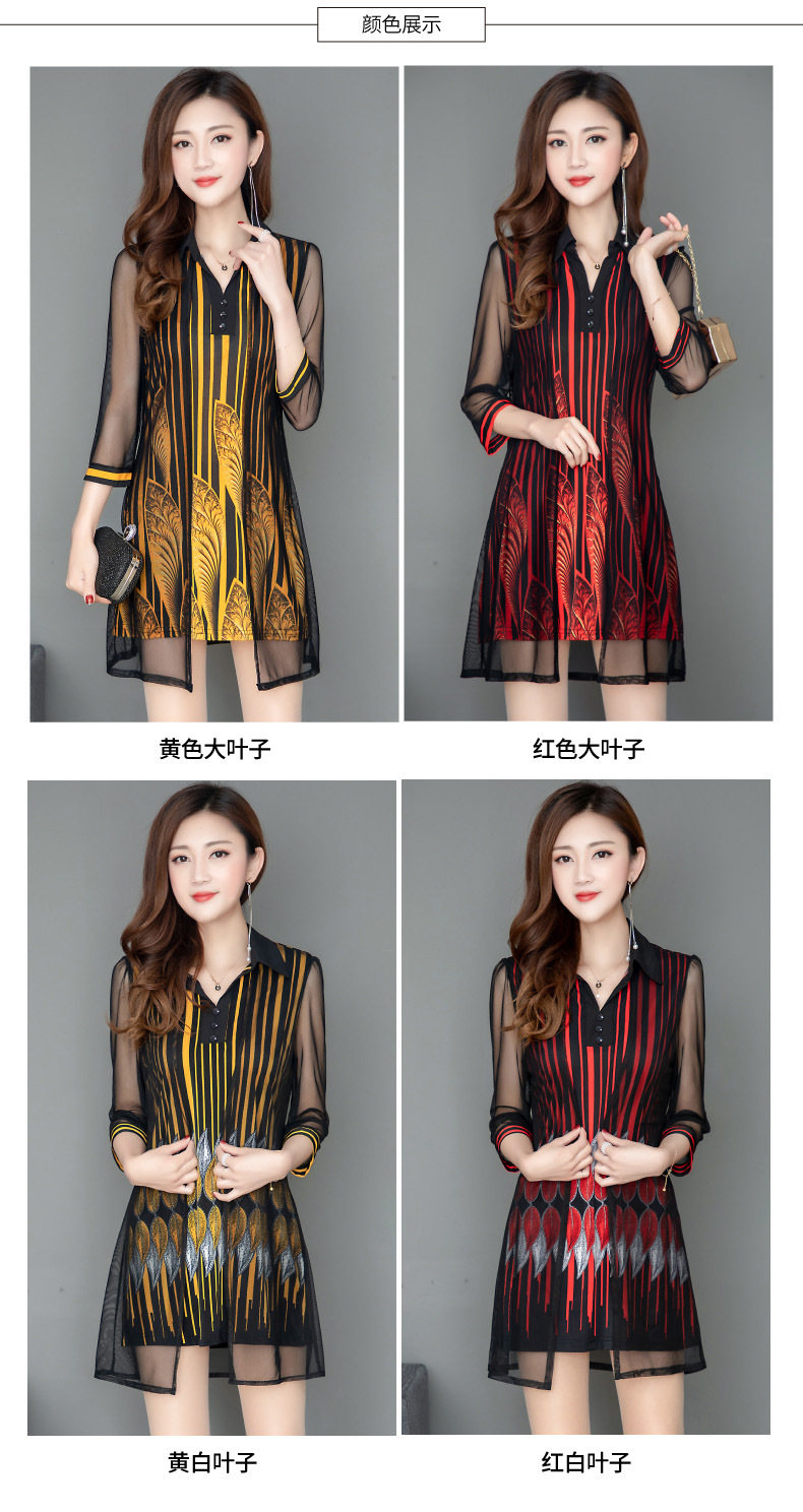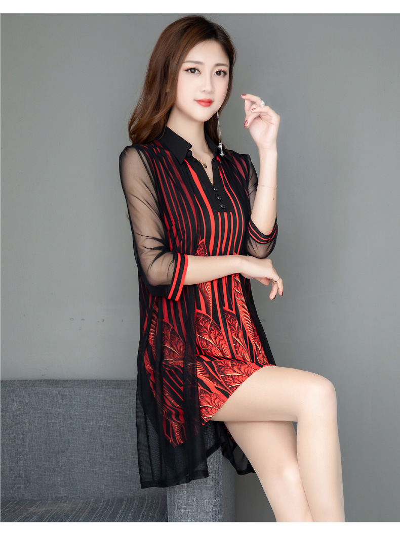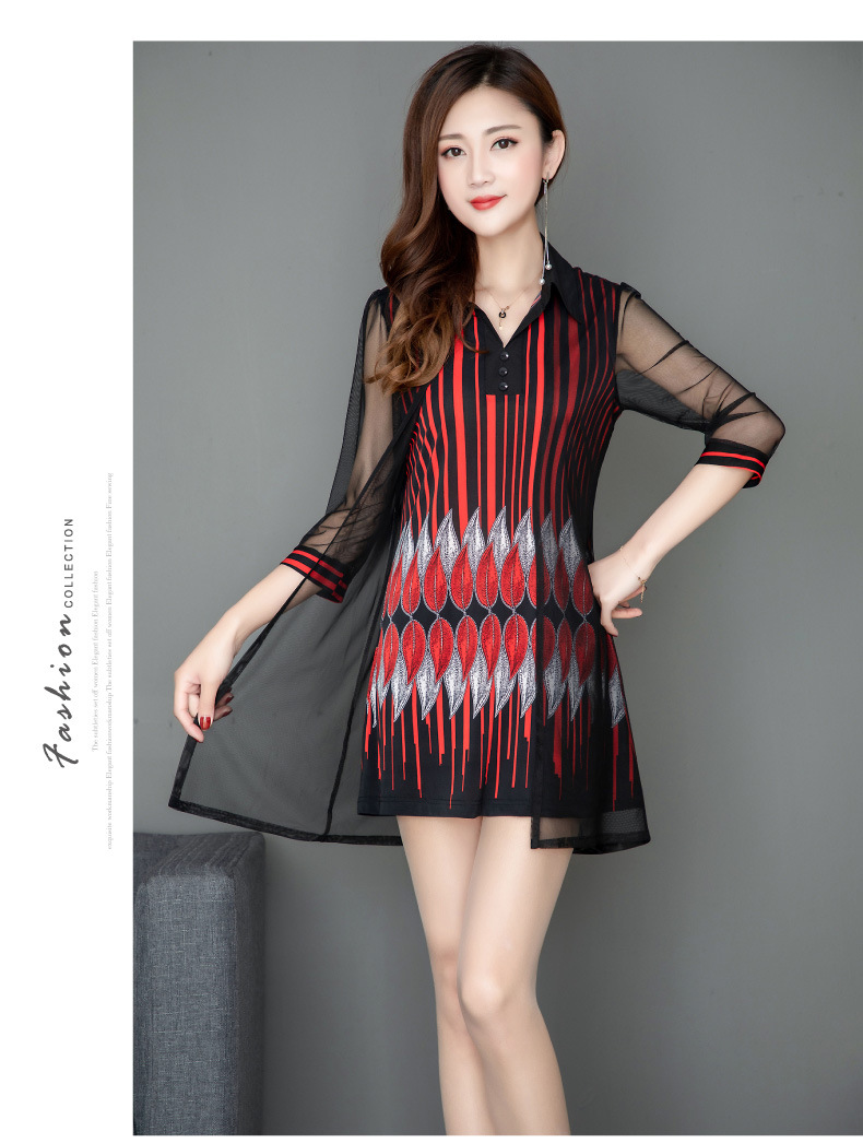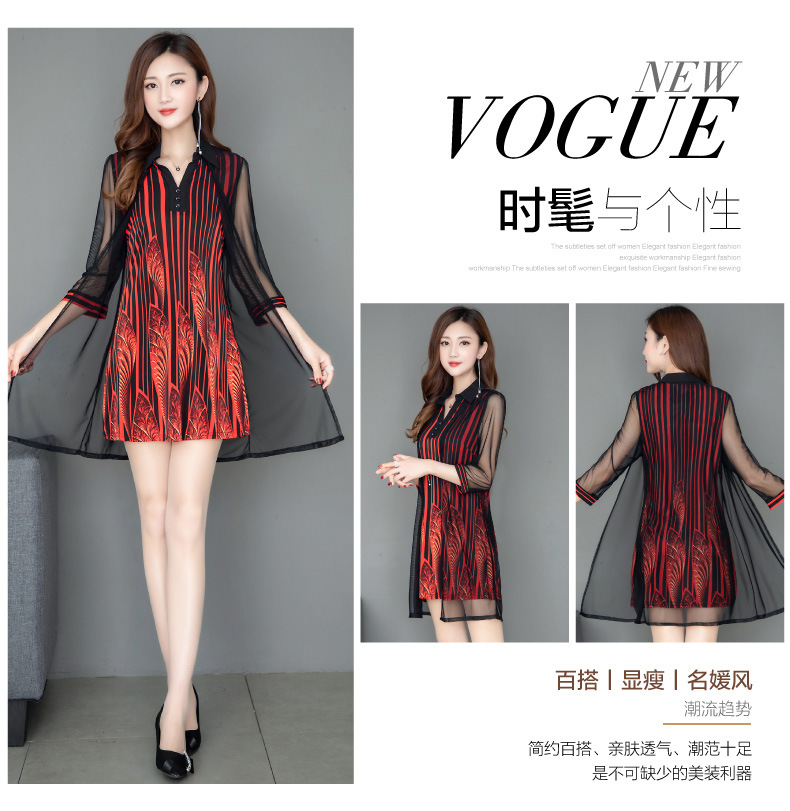 MQ-1909-215夏季新款气质洋气网纱印花上衣假两件YY