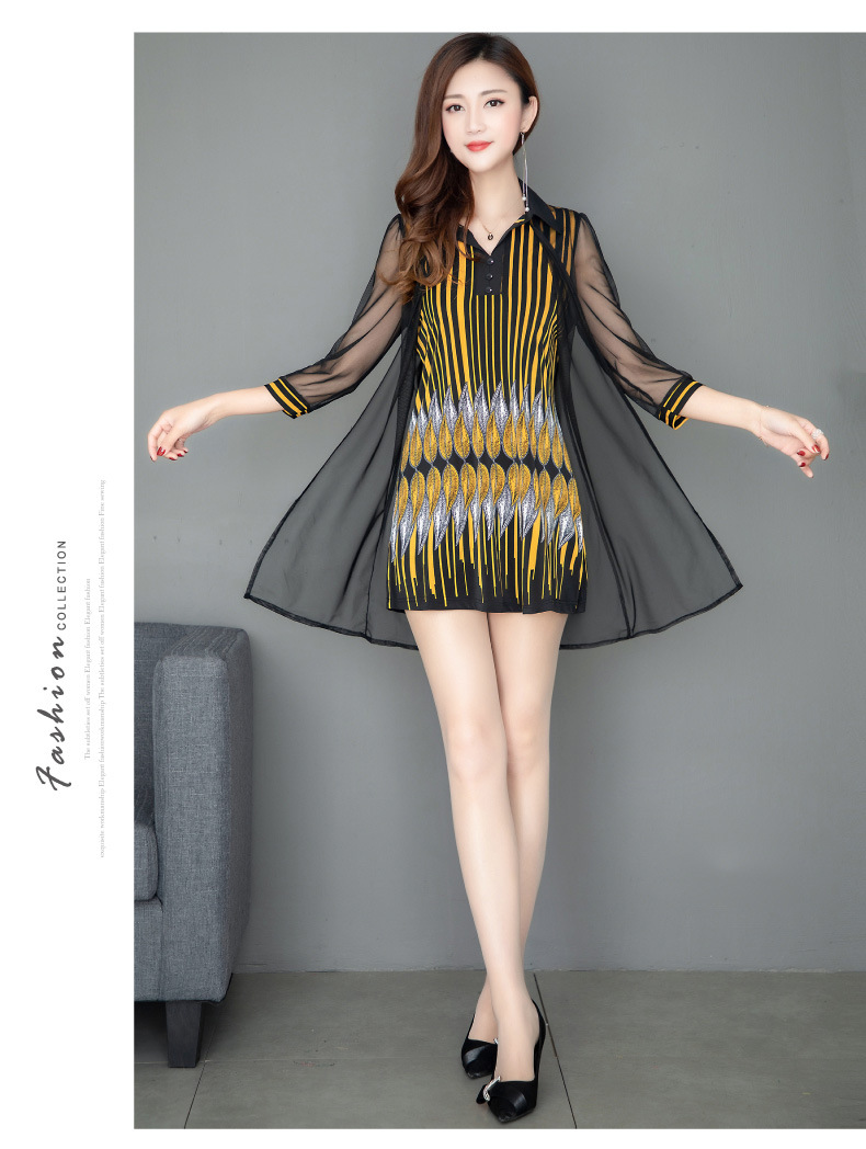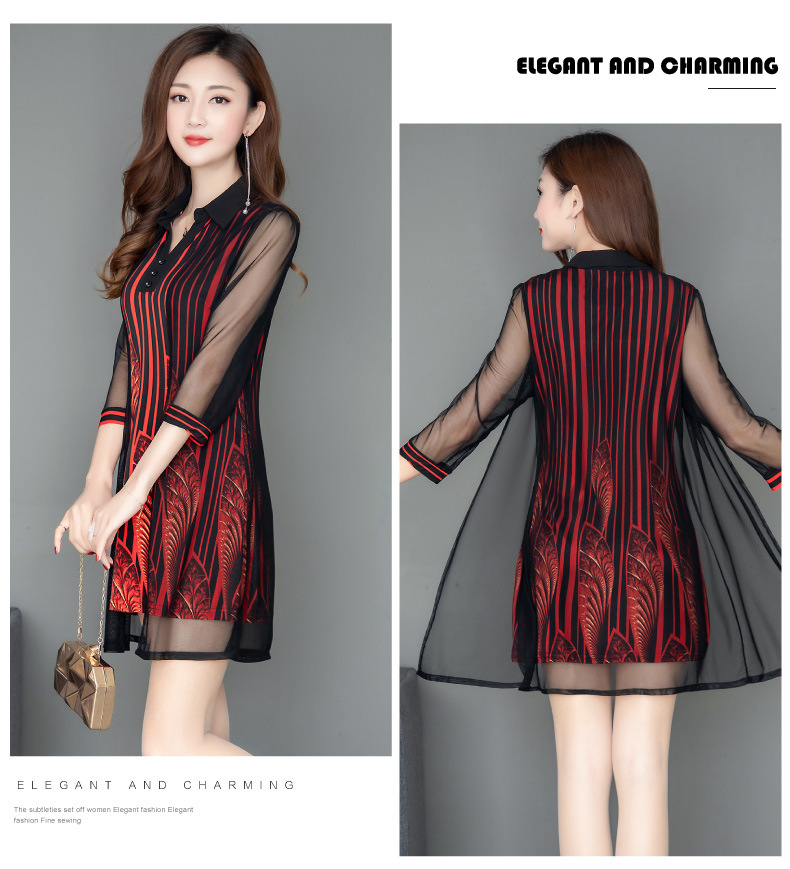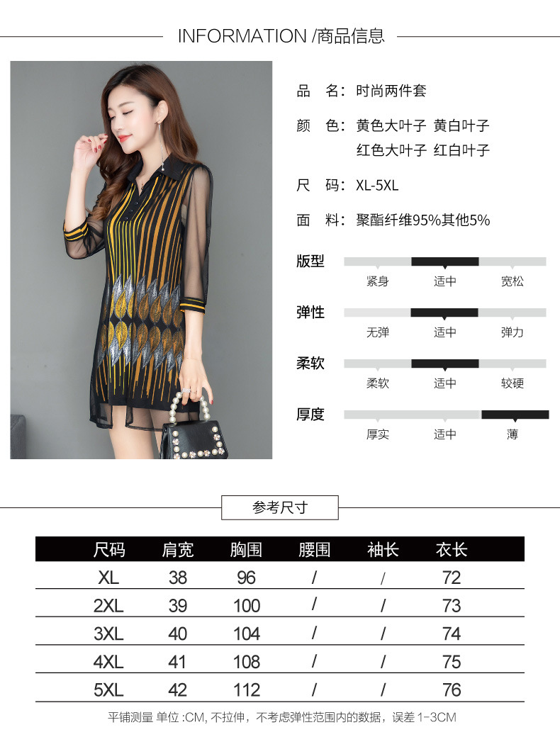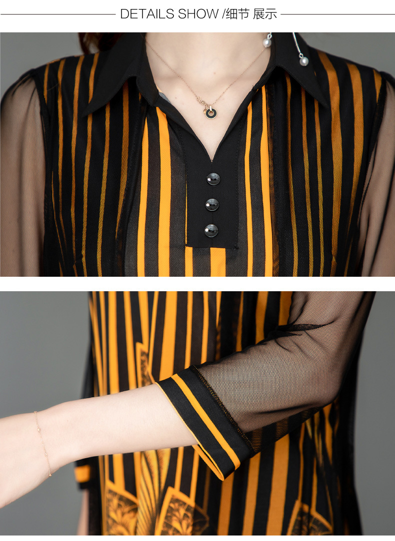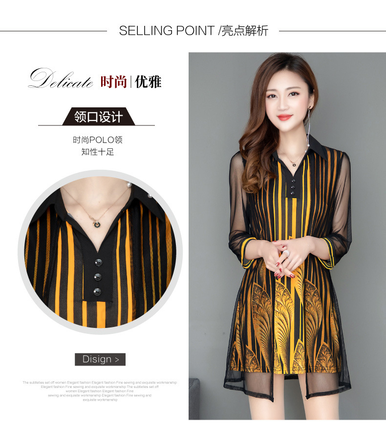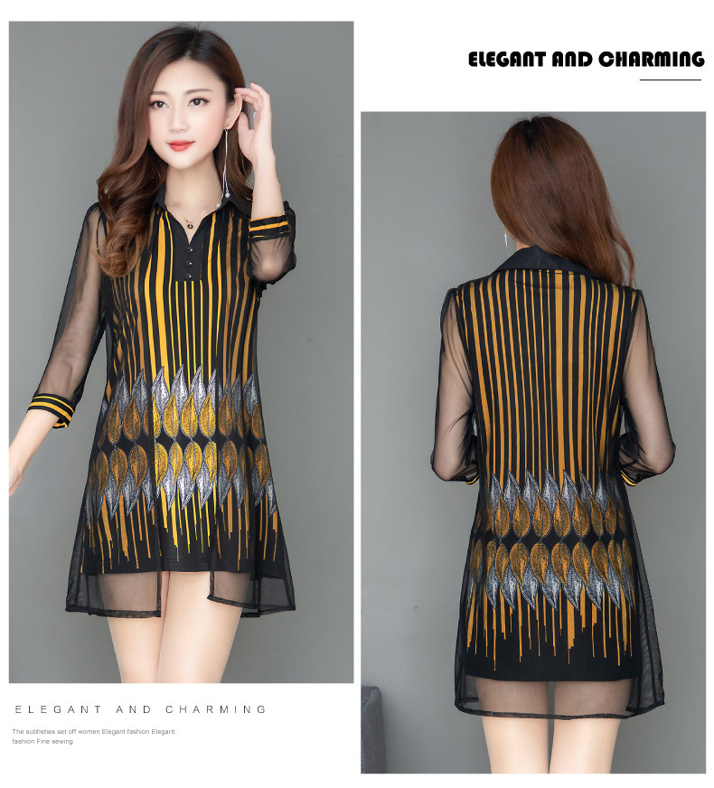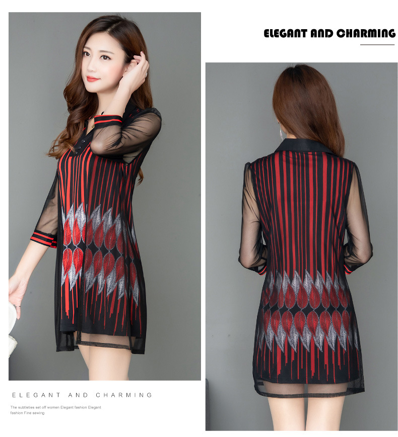 MQ-1909-215夏季新款气质洋气网纱印花上衣假两件YY