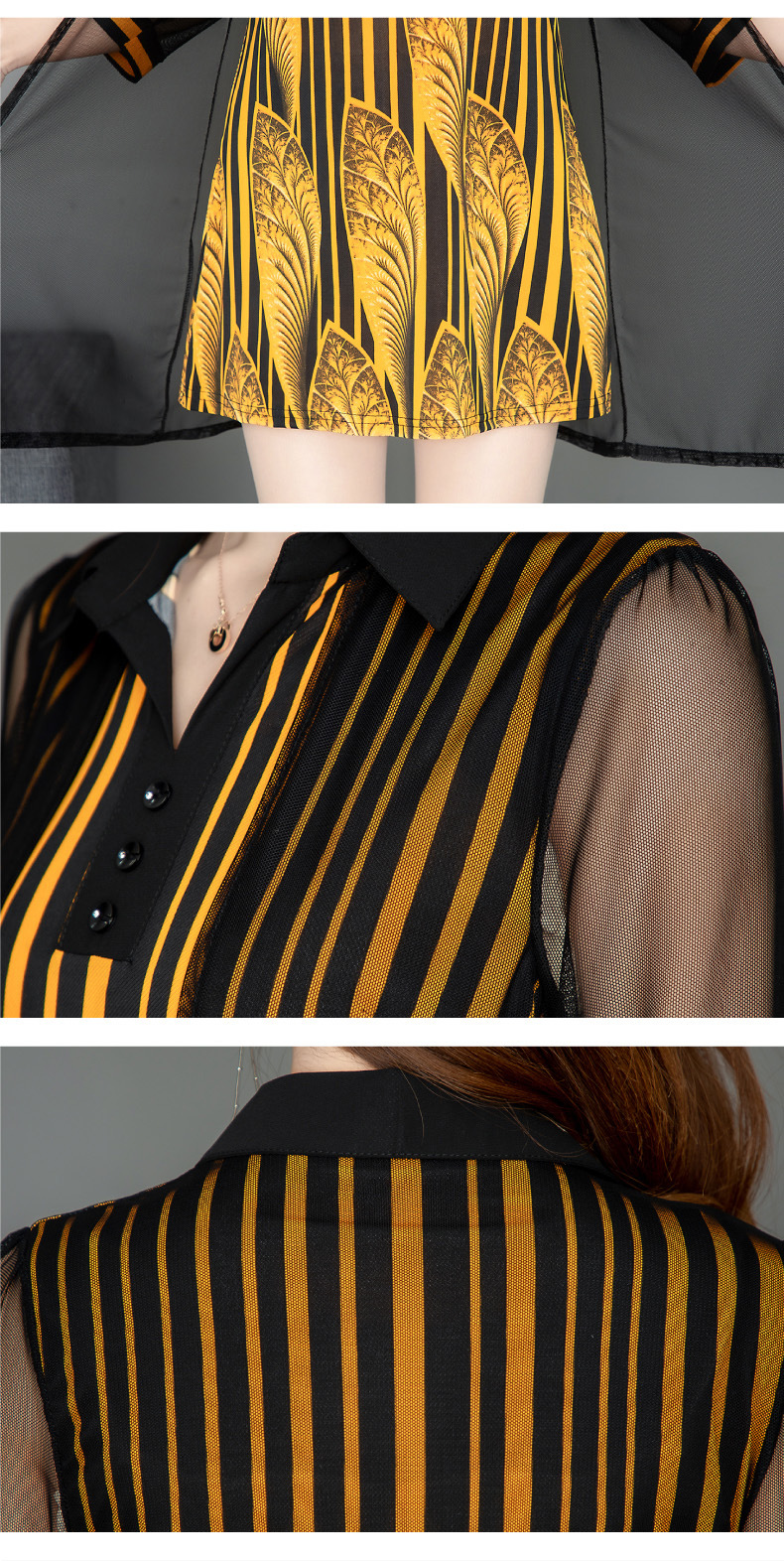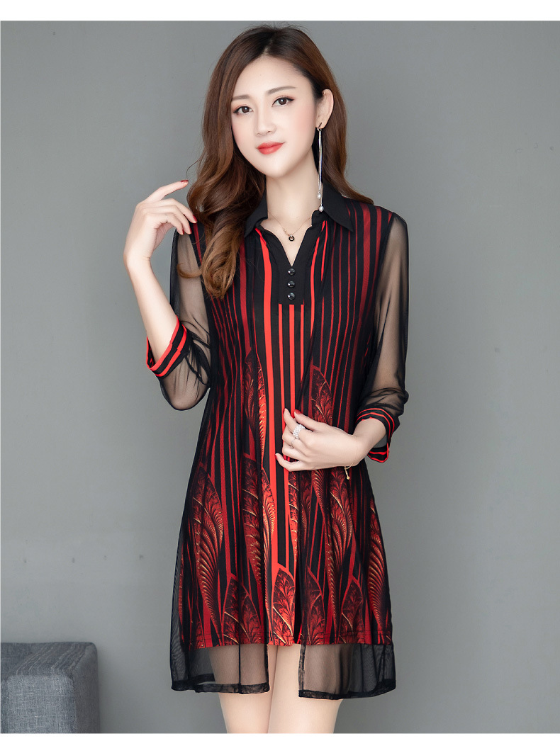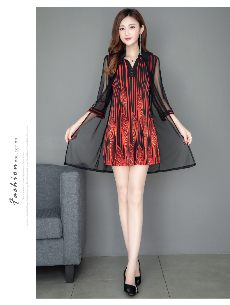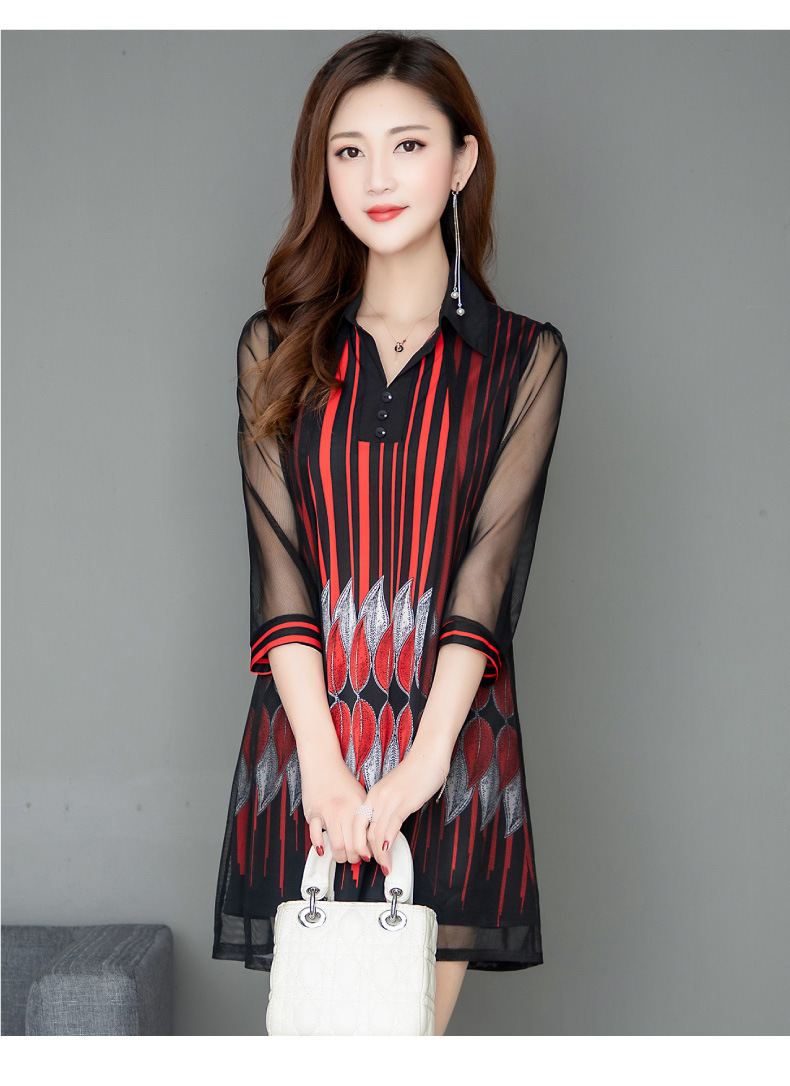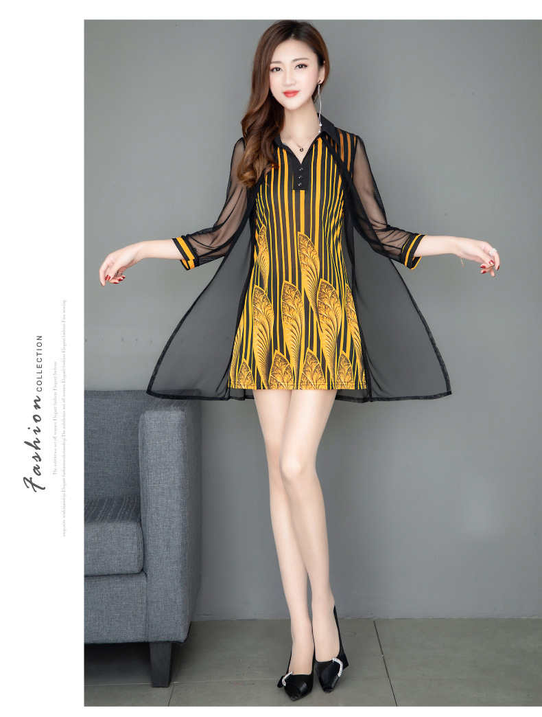 MQ-1909-215夏季新款气质洋气网纱印花上衣假两件YY