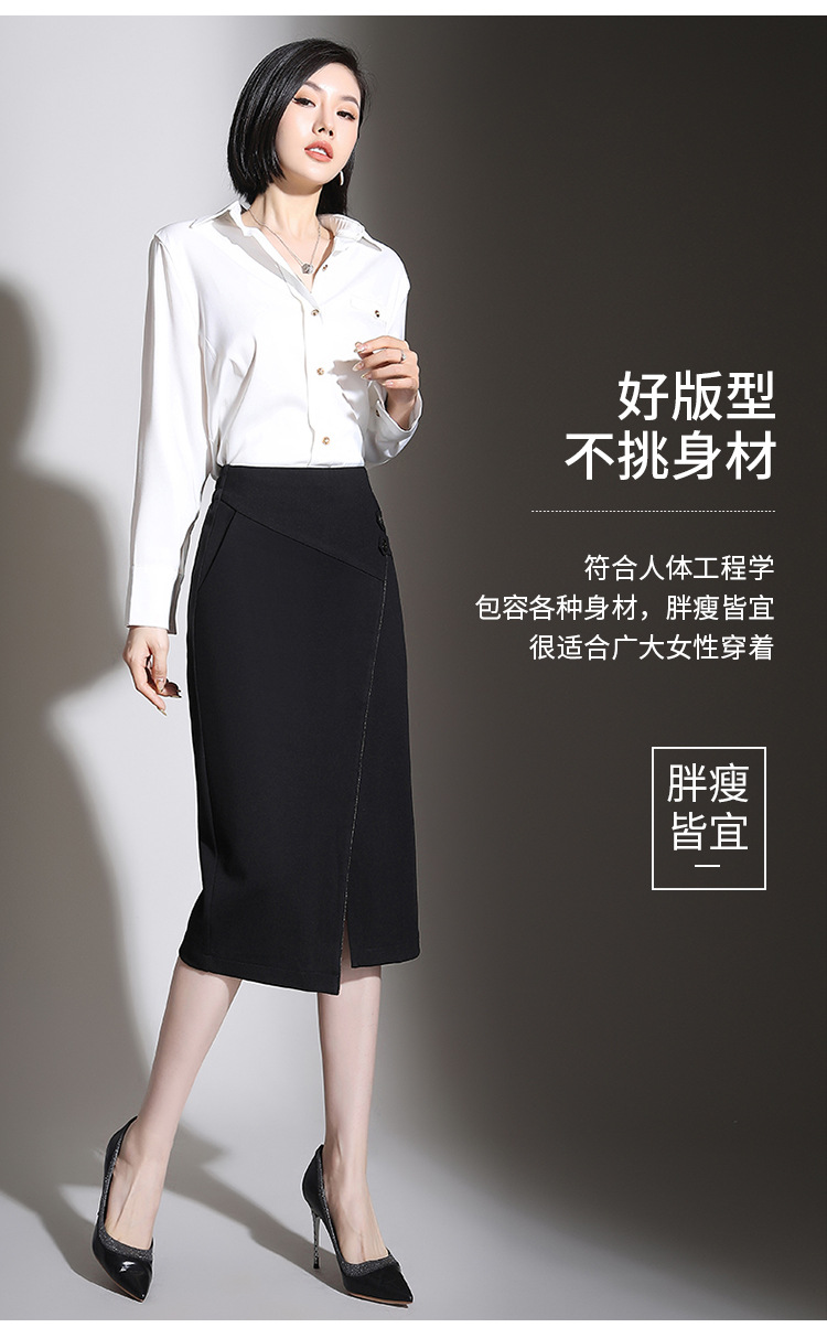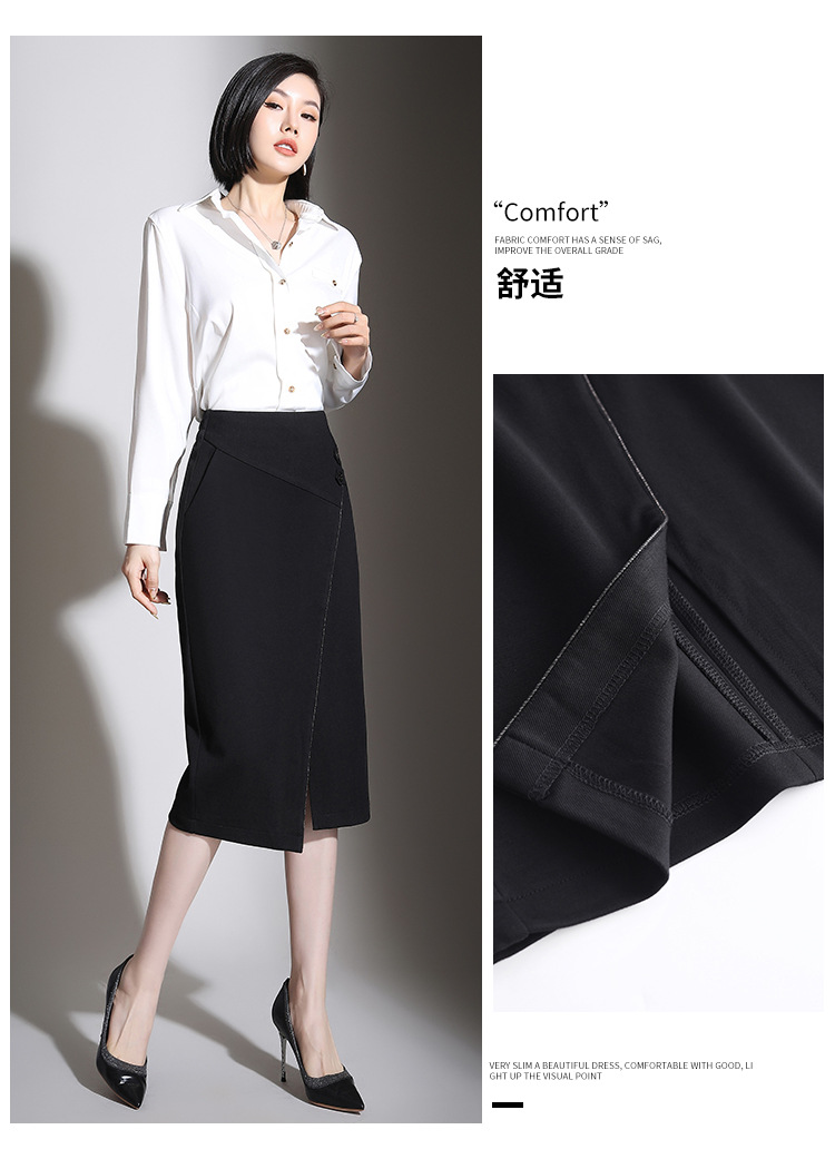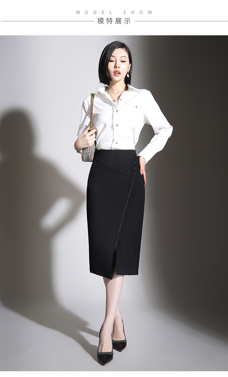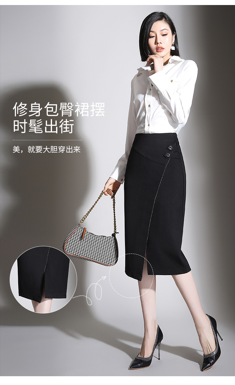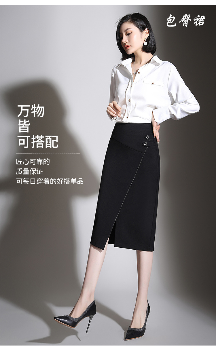 纯色时尚包臀裙高腰简约下摆开叉修身气质半身A字裙 MYX-8606