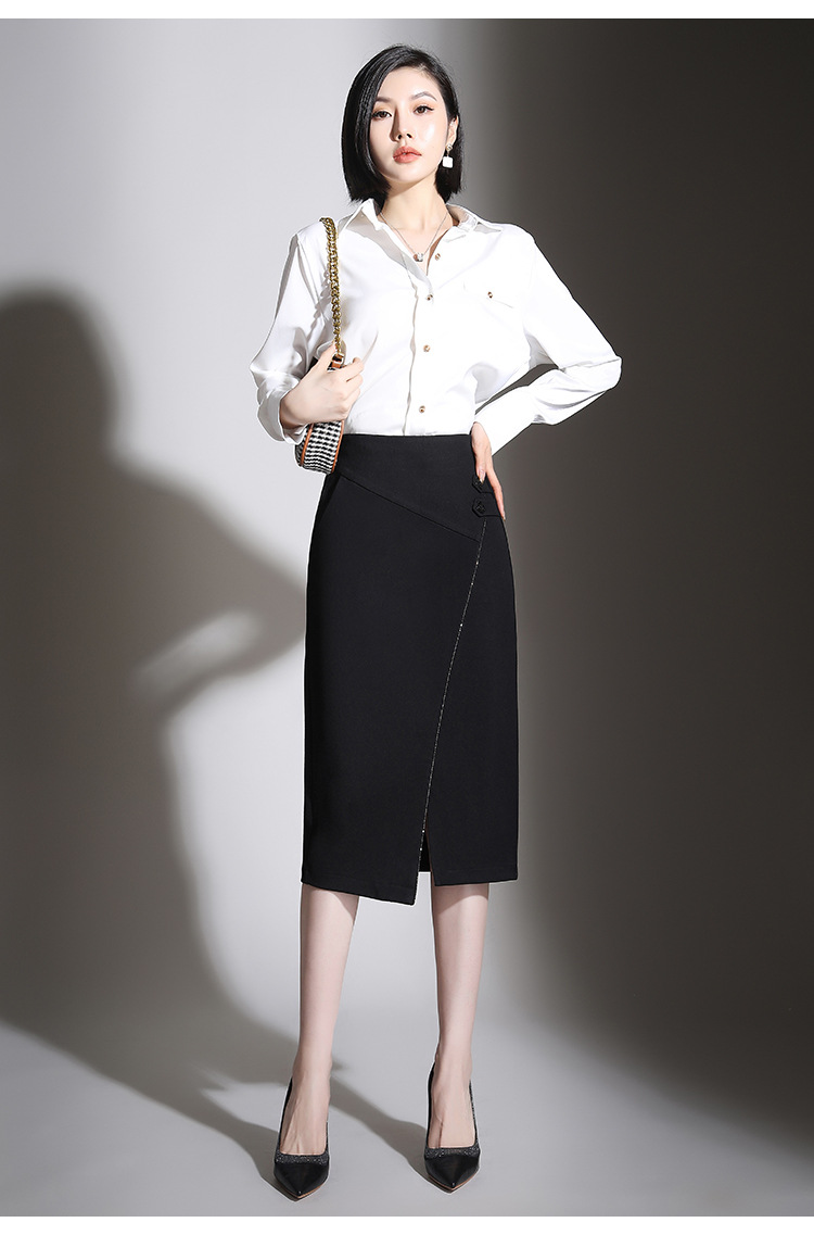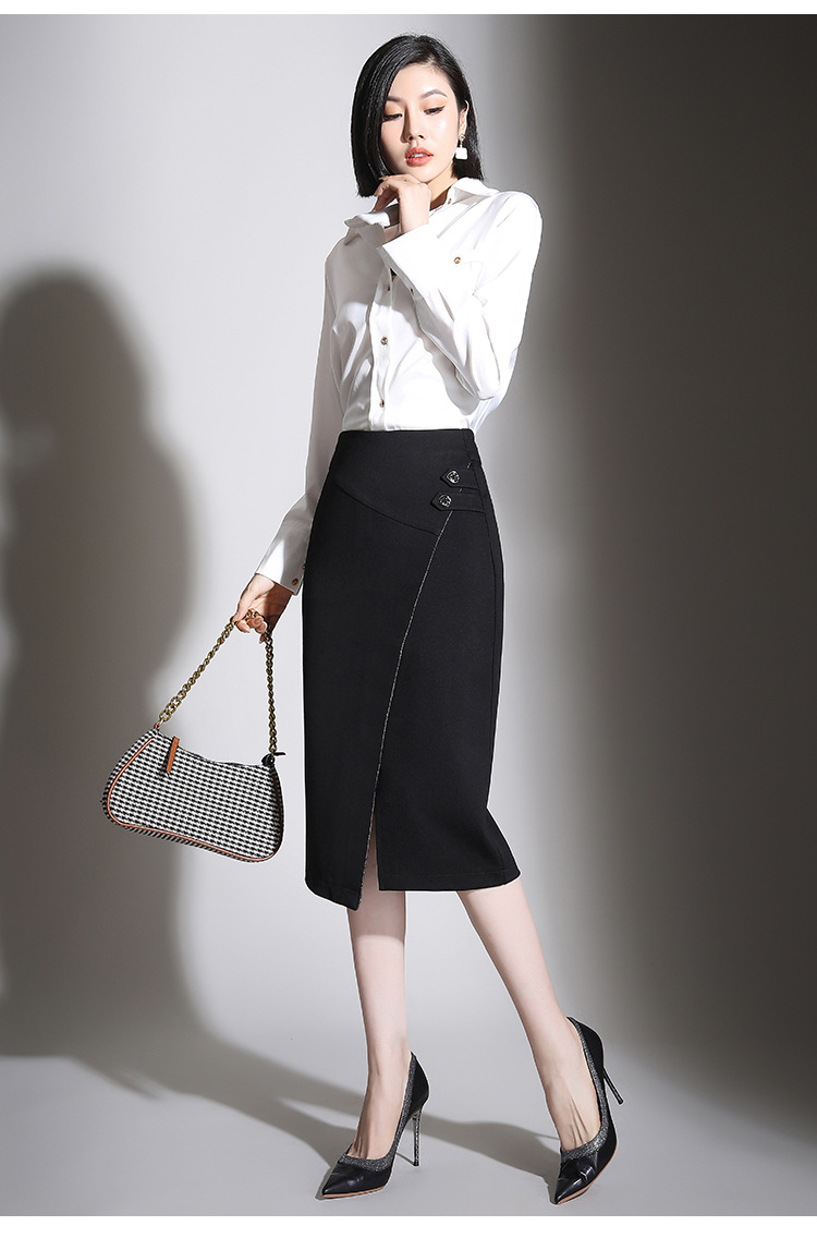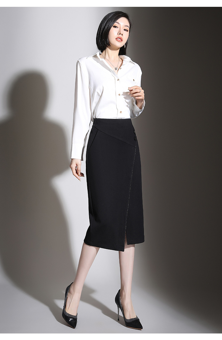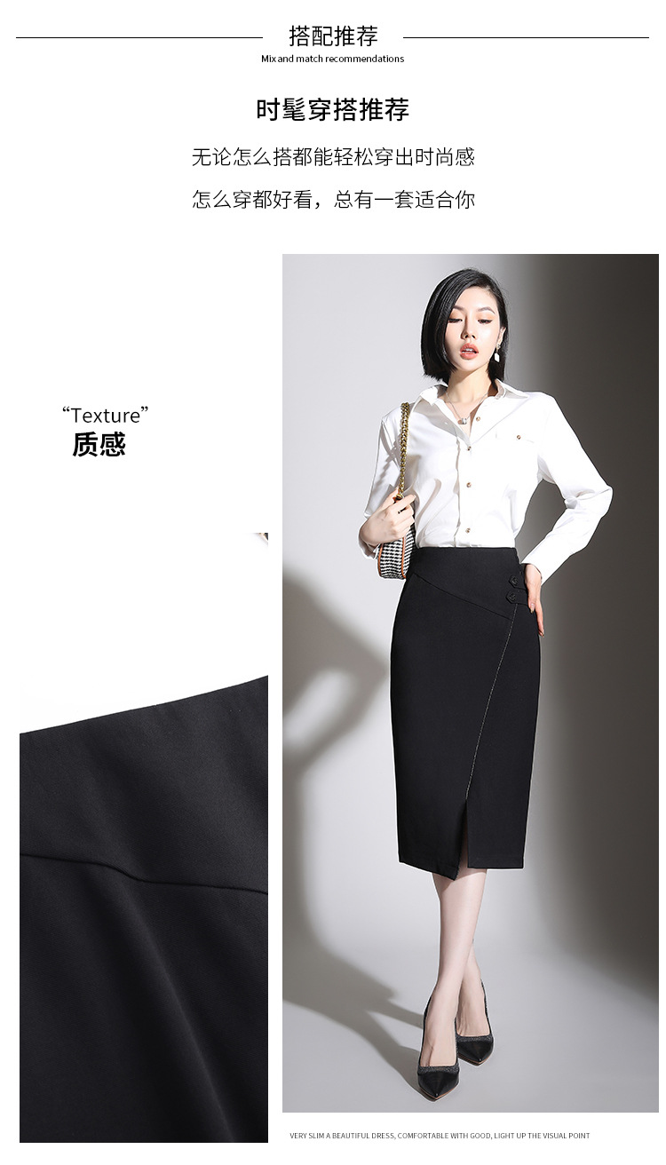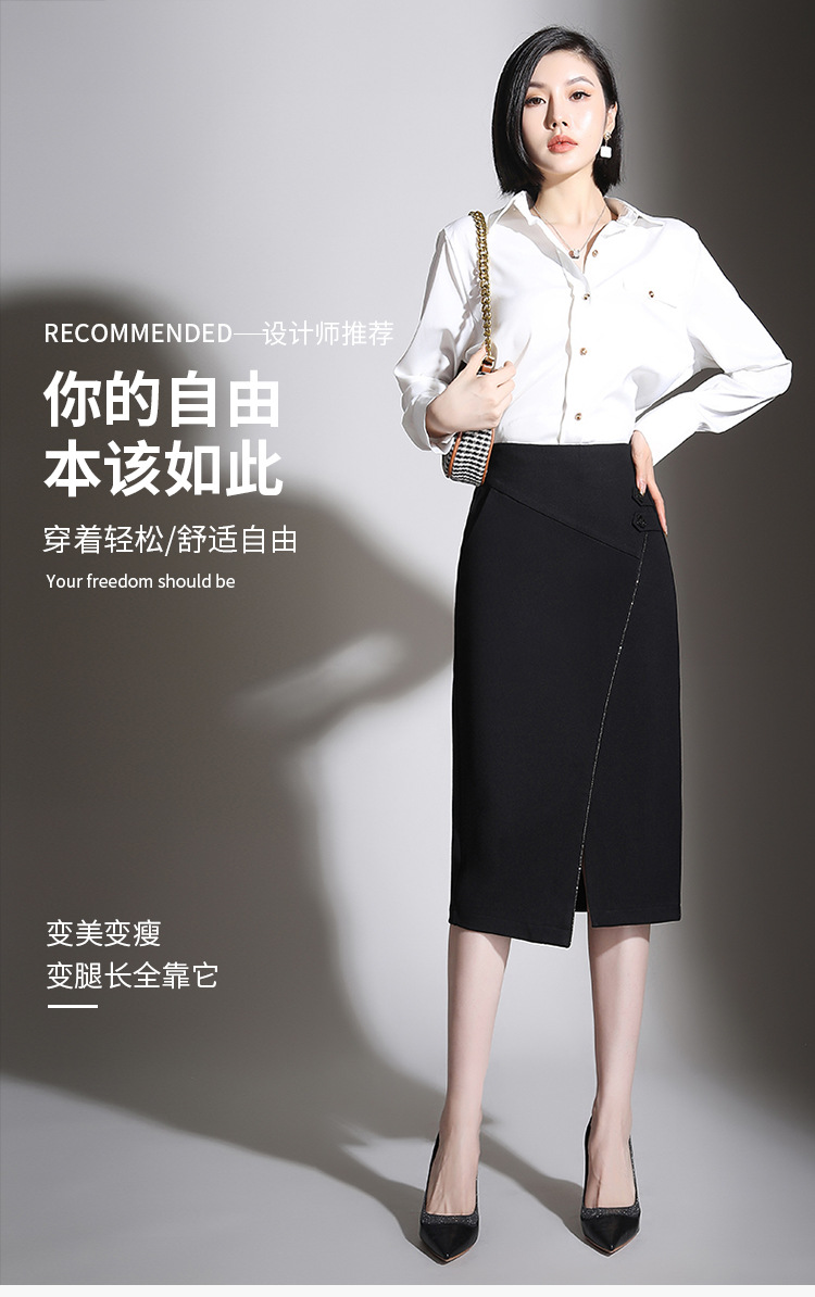 纯色时尚包臀裙高腰简约下摆开叉修身气质半身A字裙 MYX-8606