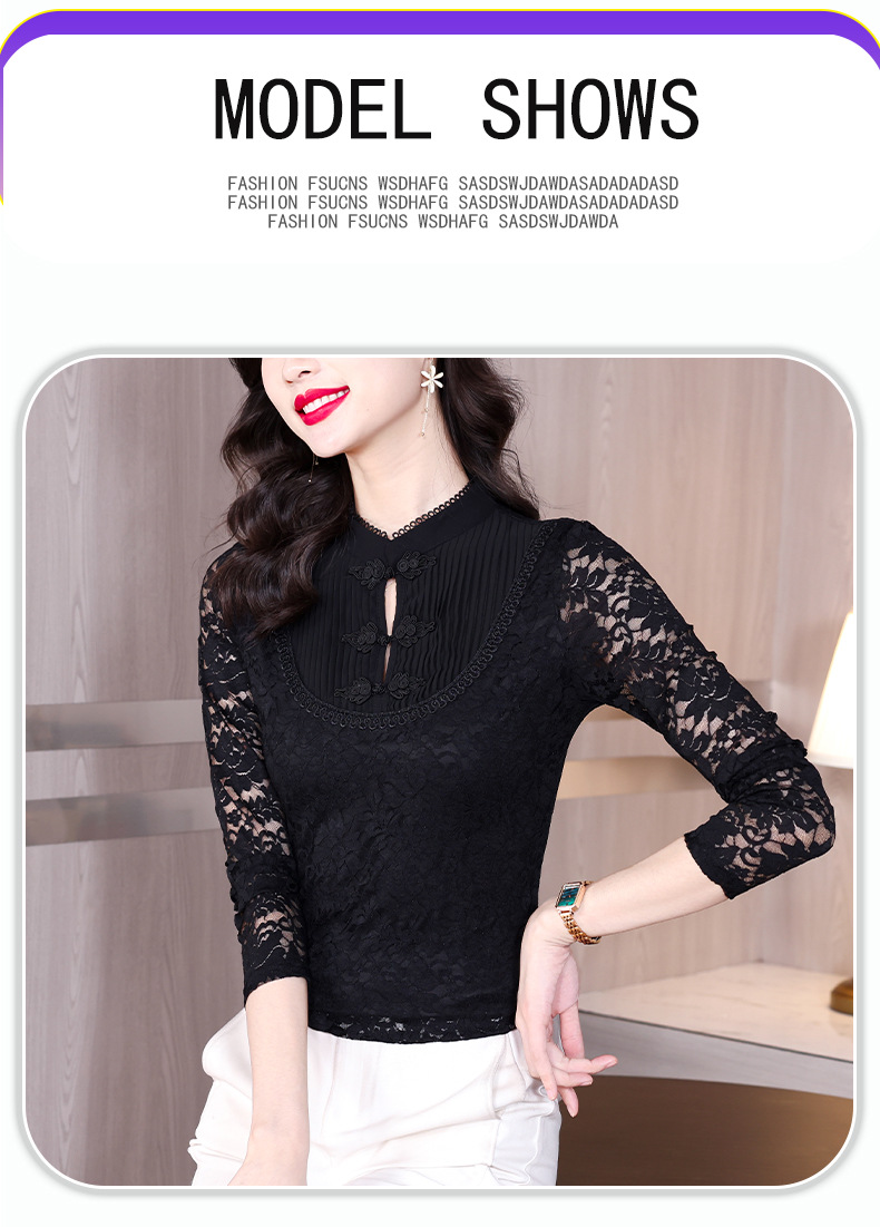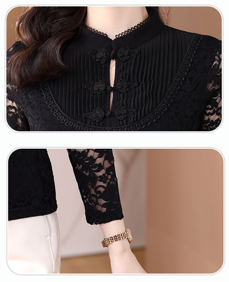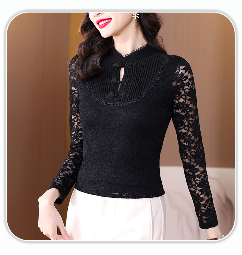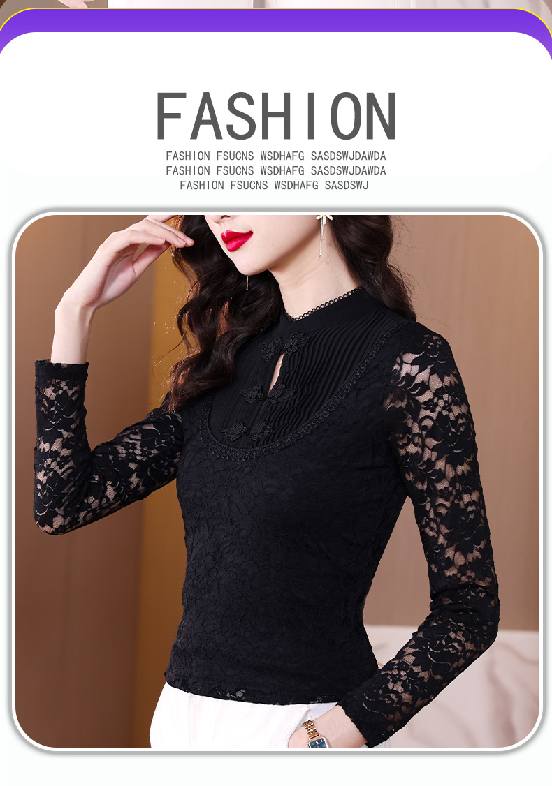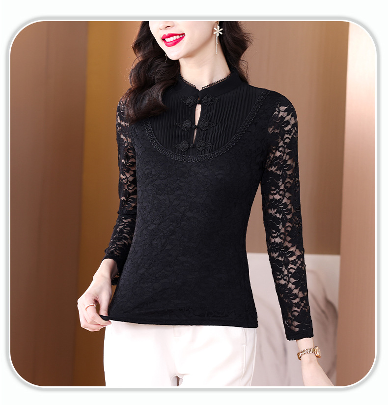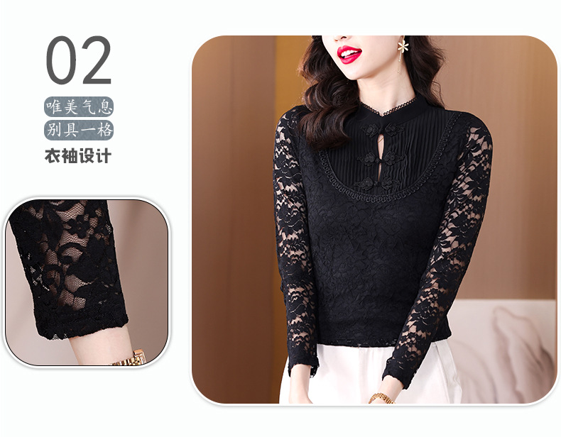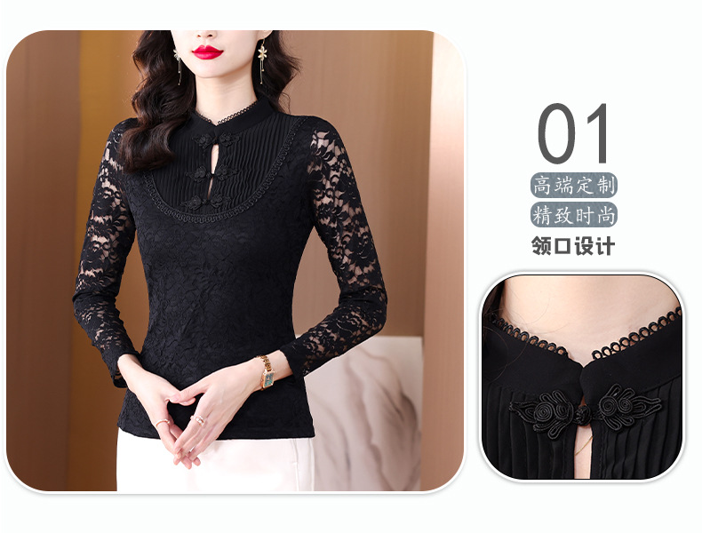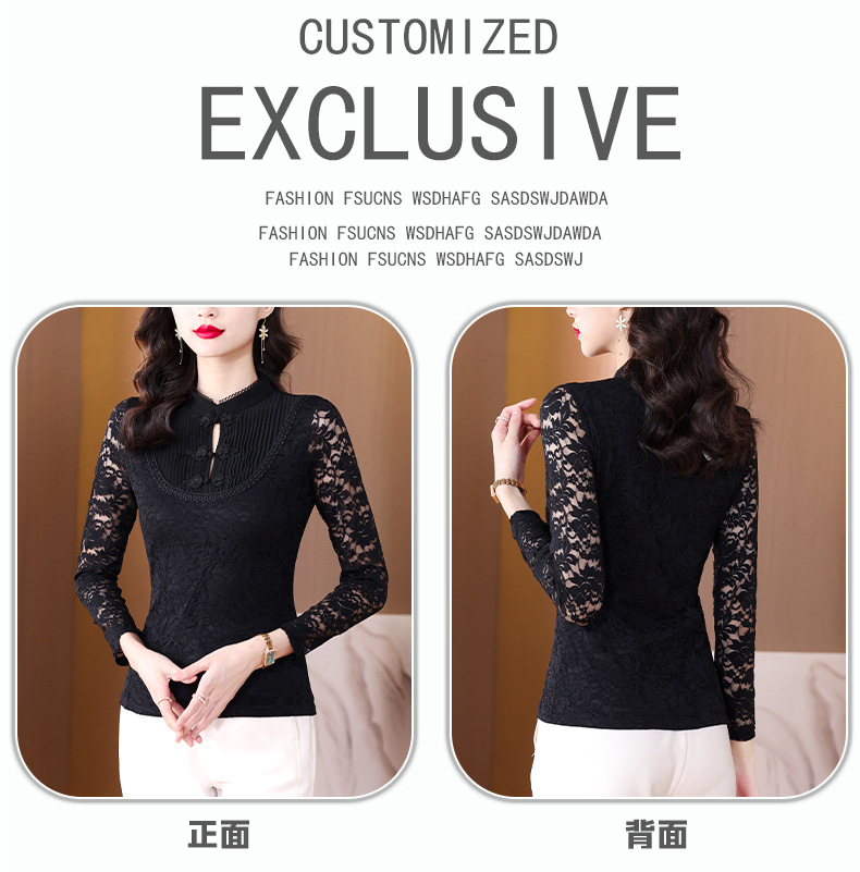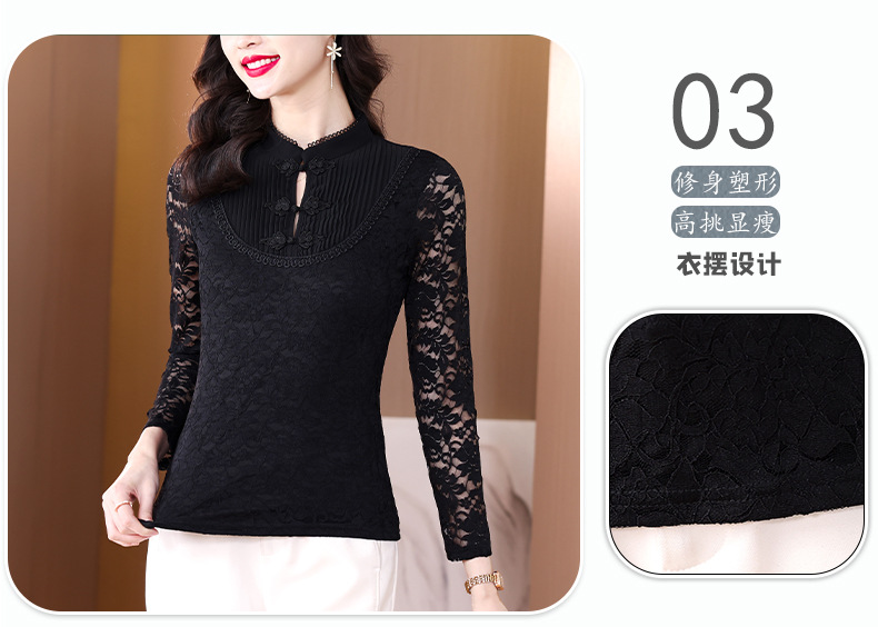 DD-蕾丝打底衫女2023冬季新款唐装立领黑色洋气秋冬加绒保暖内搭上衣