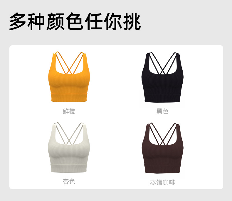 跃牌【瑜堂系列】固定胸垫防震瑜伽美背条纹后背交叉细肩带运动背心 JYTN011