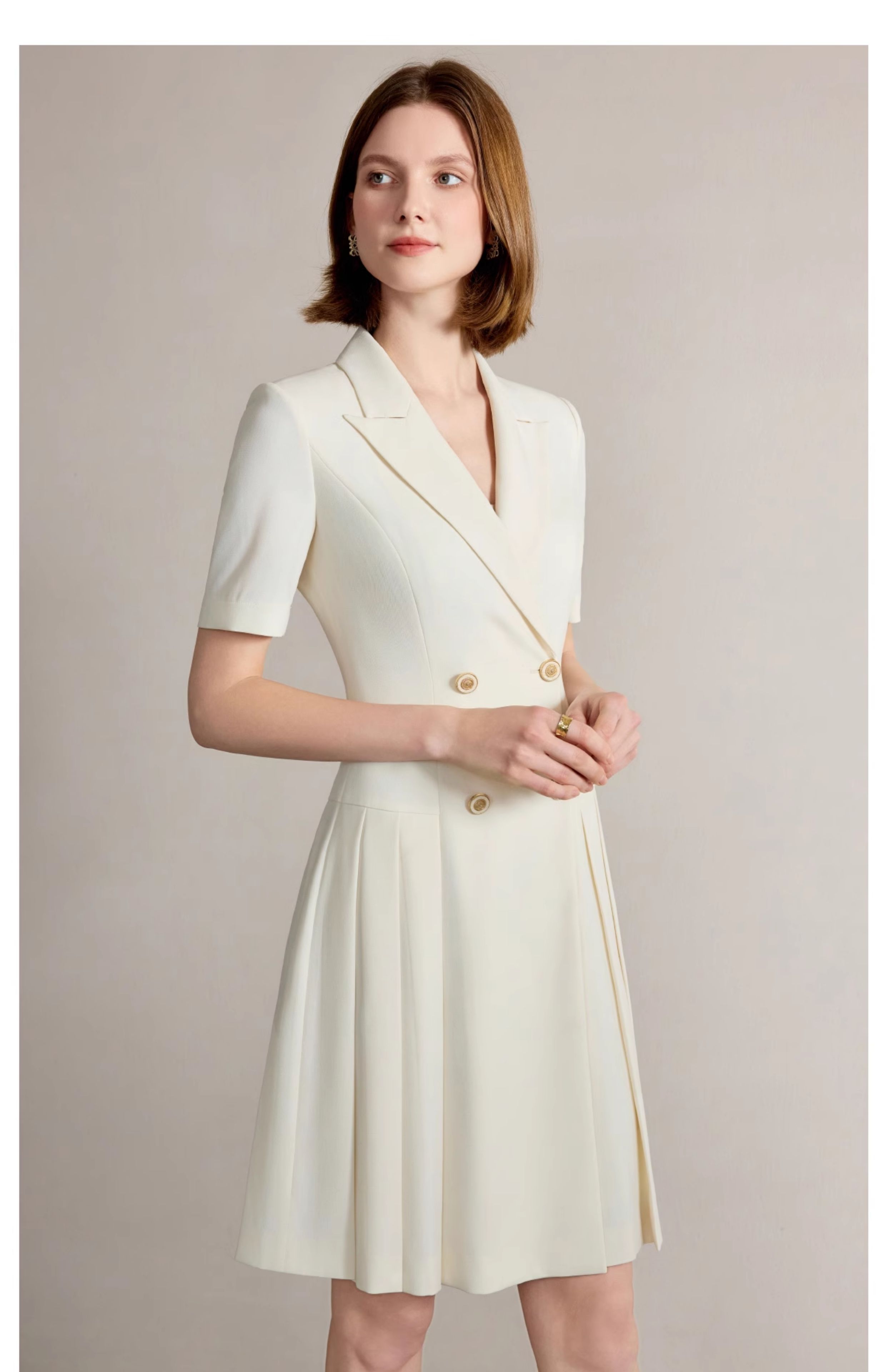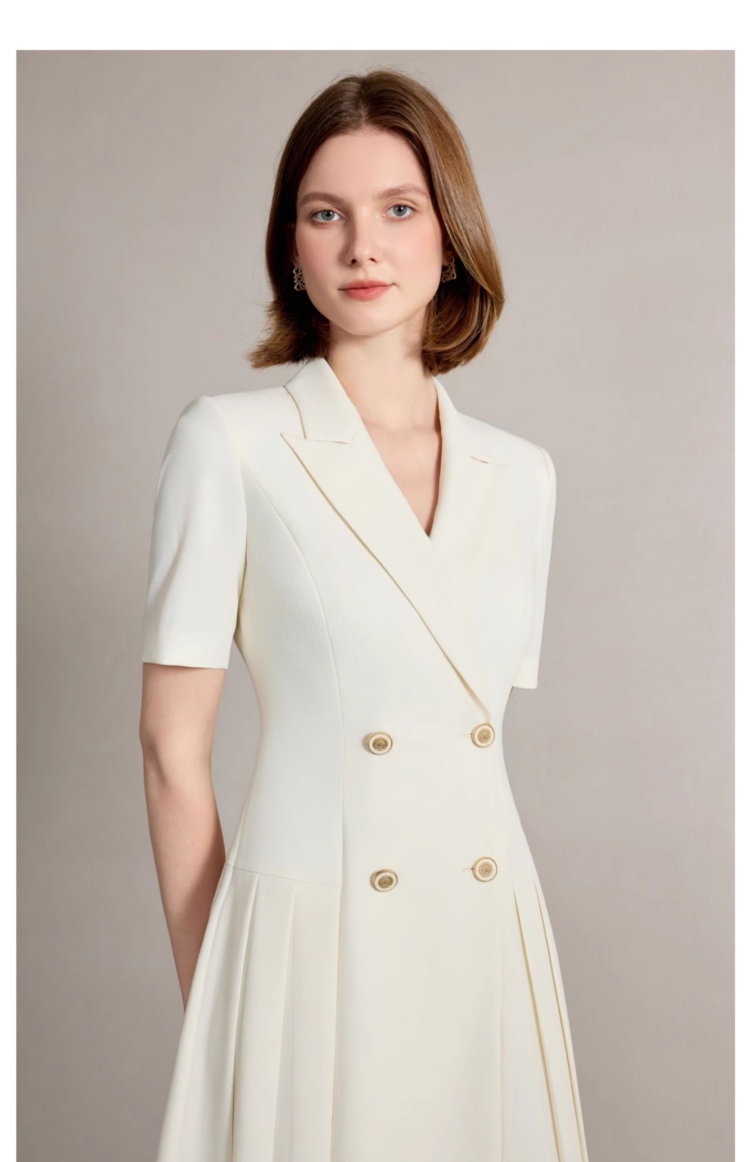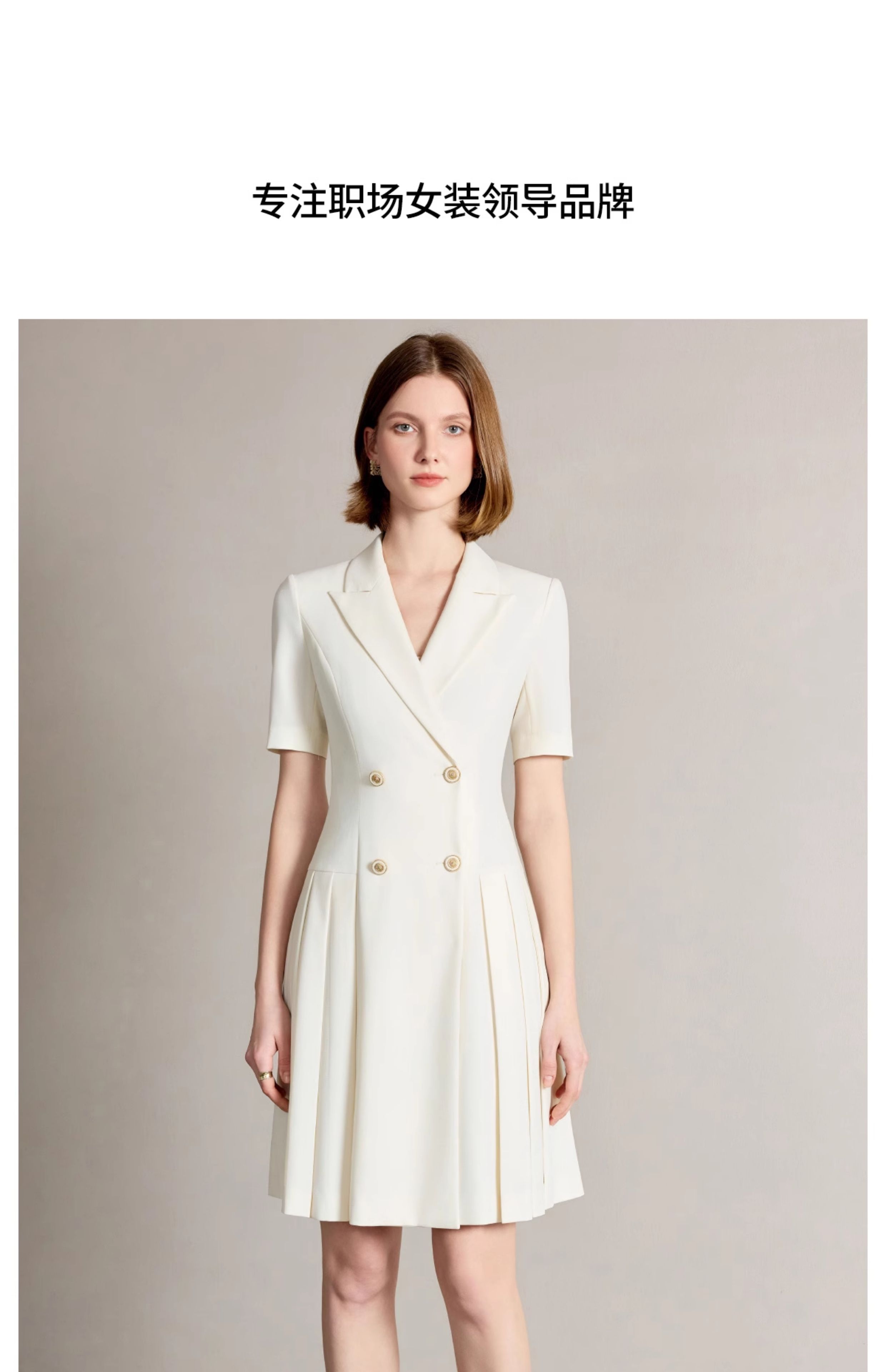 IWY/优雅气质短袖西装连衣裙女高级感百褶职业长裙夏季新款Q1337