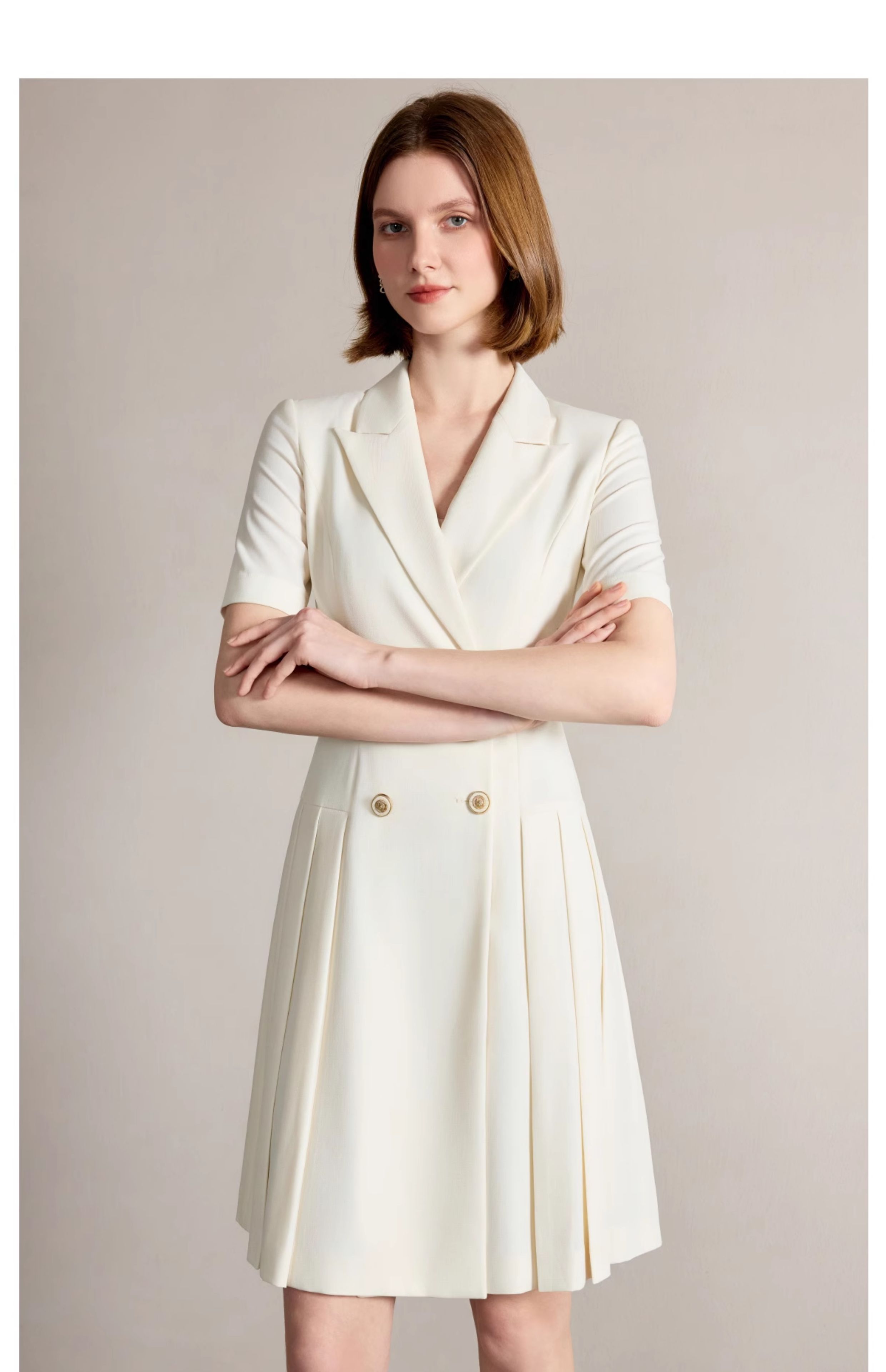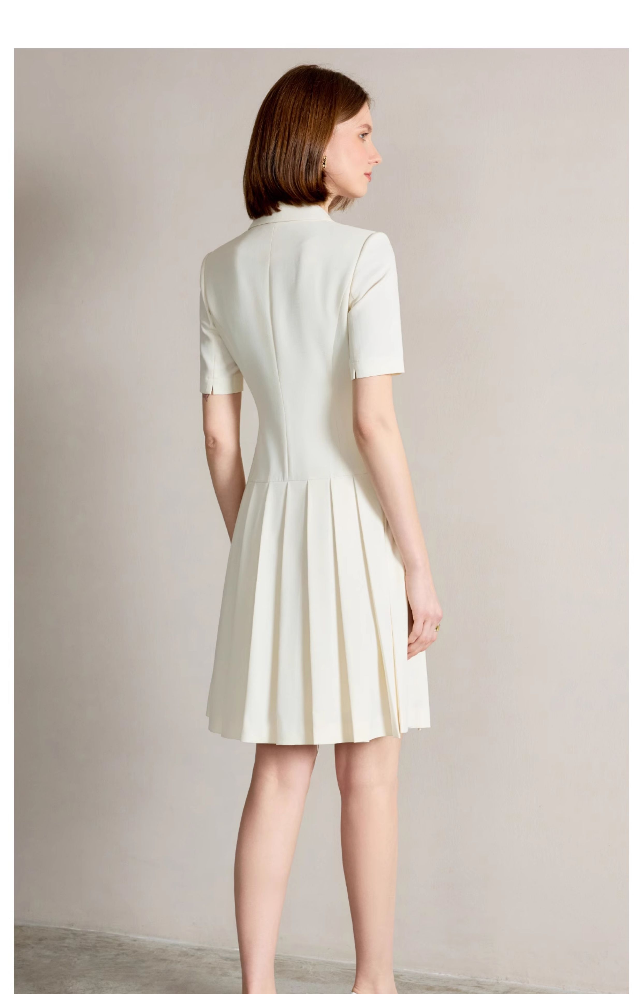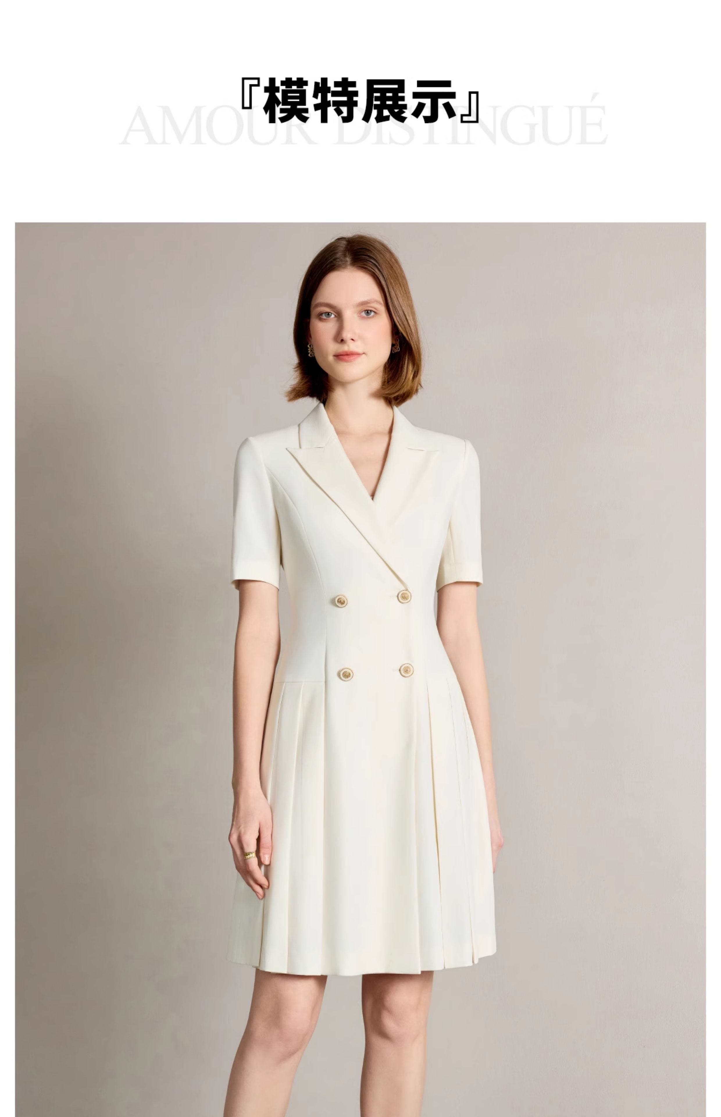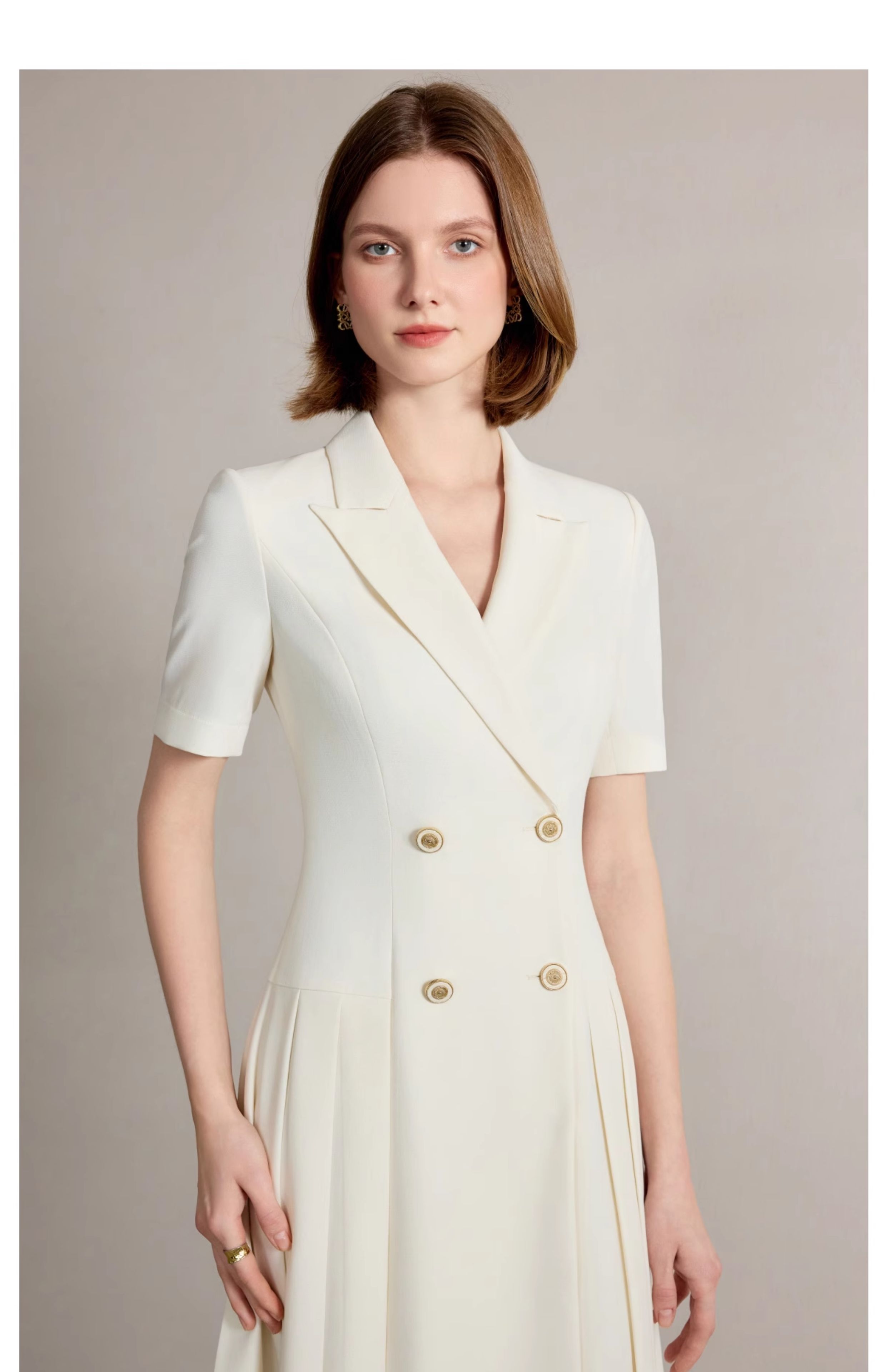 IWY/优雅气质短袖西装连衣裙女高级感百褶职业长裙夏季新款Q1337