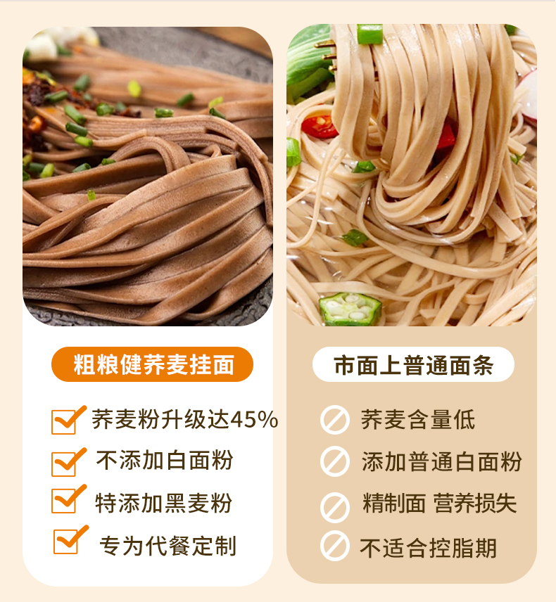 粗良健黑麦荞麦挂面230g/袋 0脂肪汤面拉面早餐面方便速食