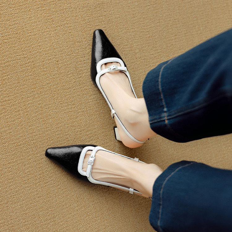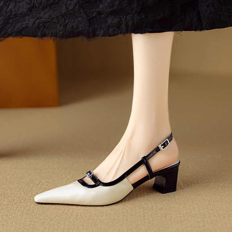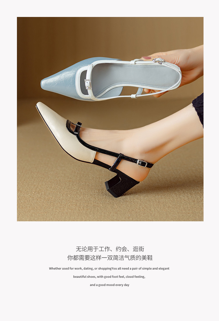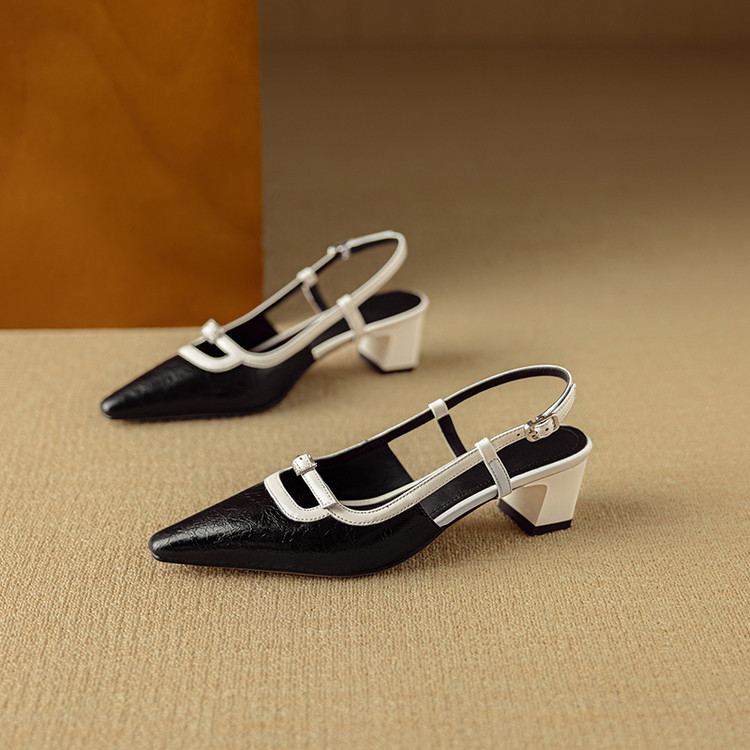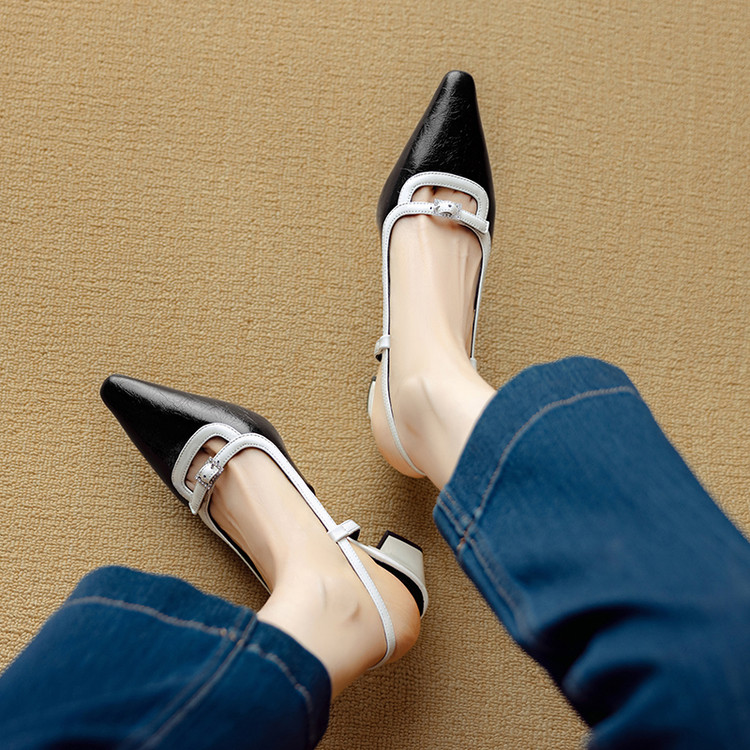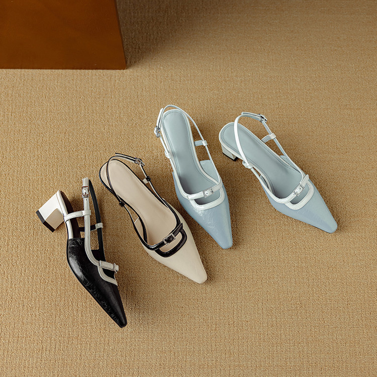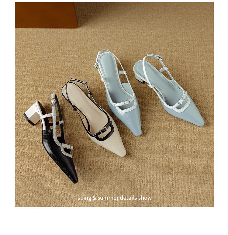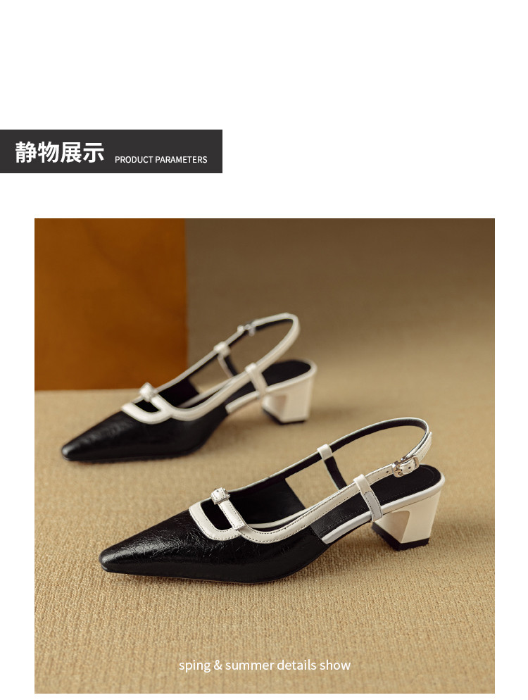 【预售5天】新款时尚拼色时装女鞋欧美风小方头低跟包头后空凉鞋DB&M6276