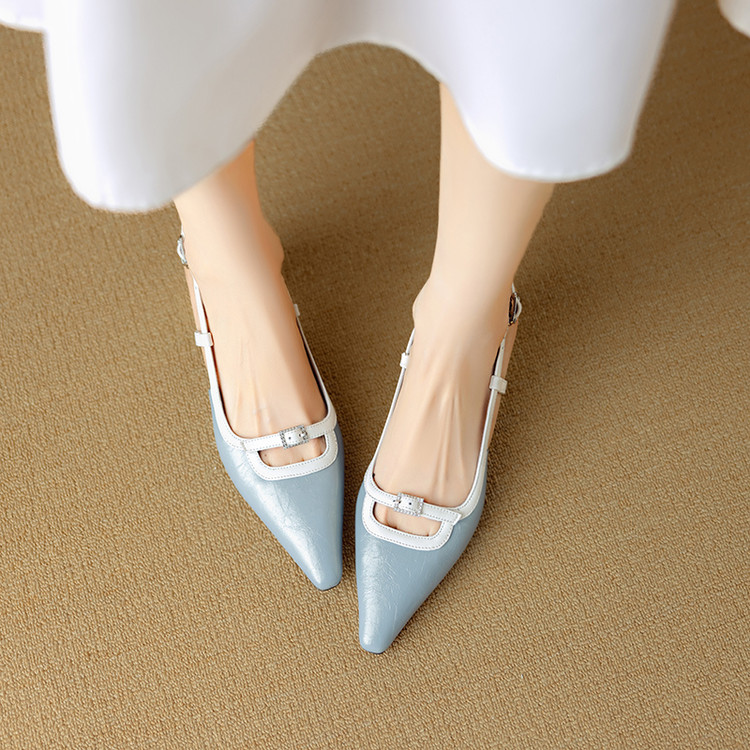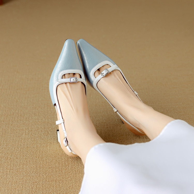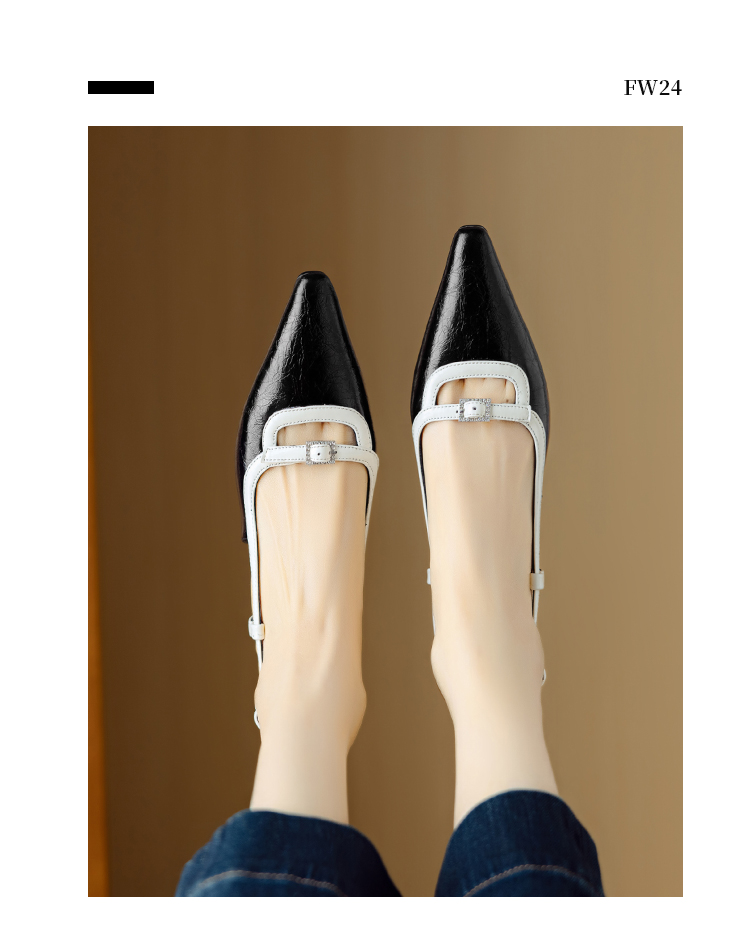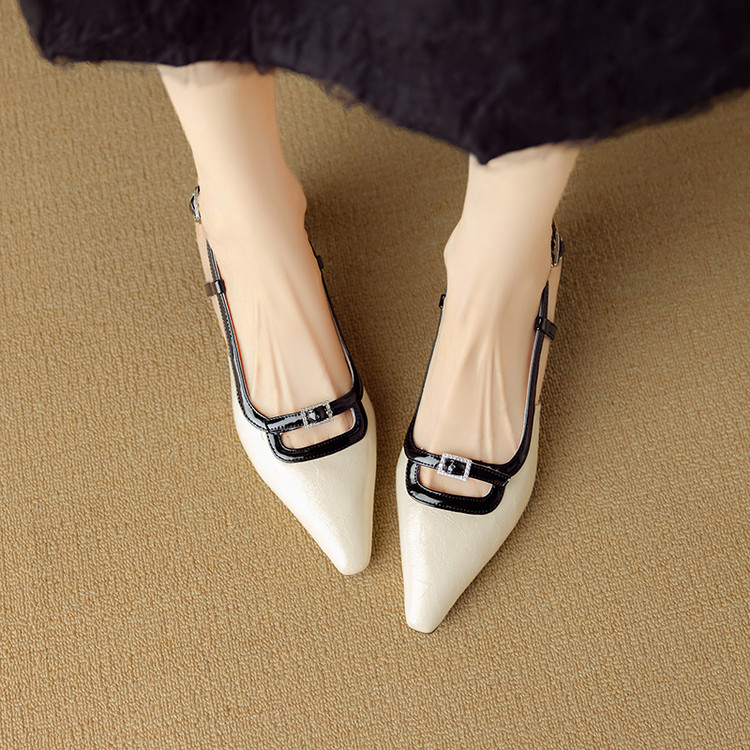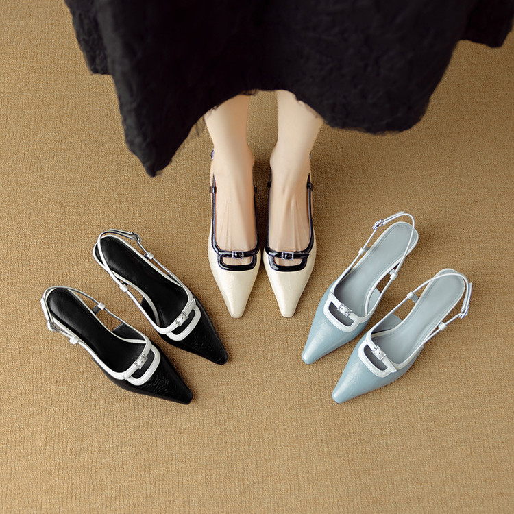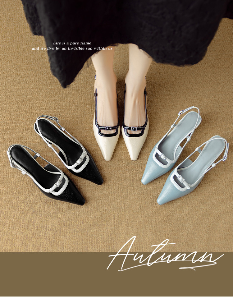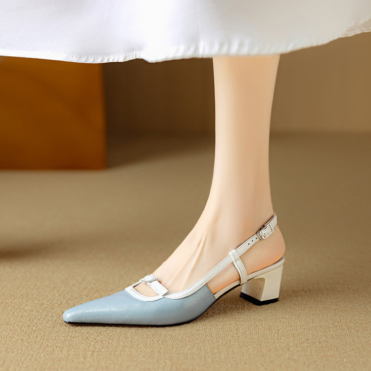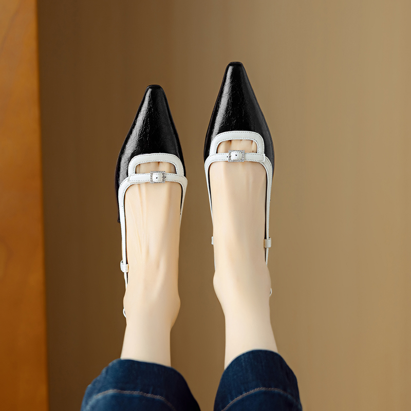 【预售5天】新款时尚拼色时装女鞋欧美风小方头低跟包头后空凉鞋DB&M6276