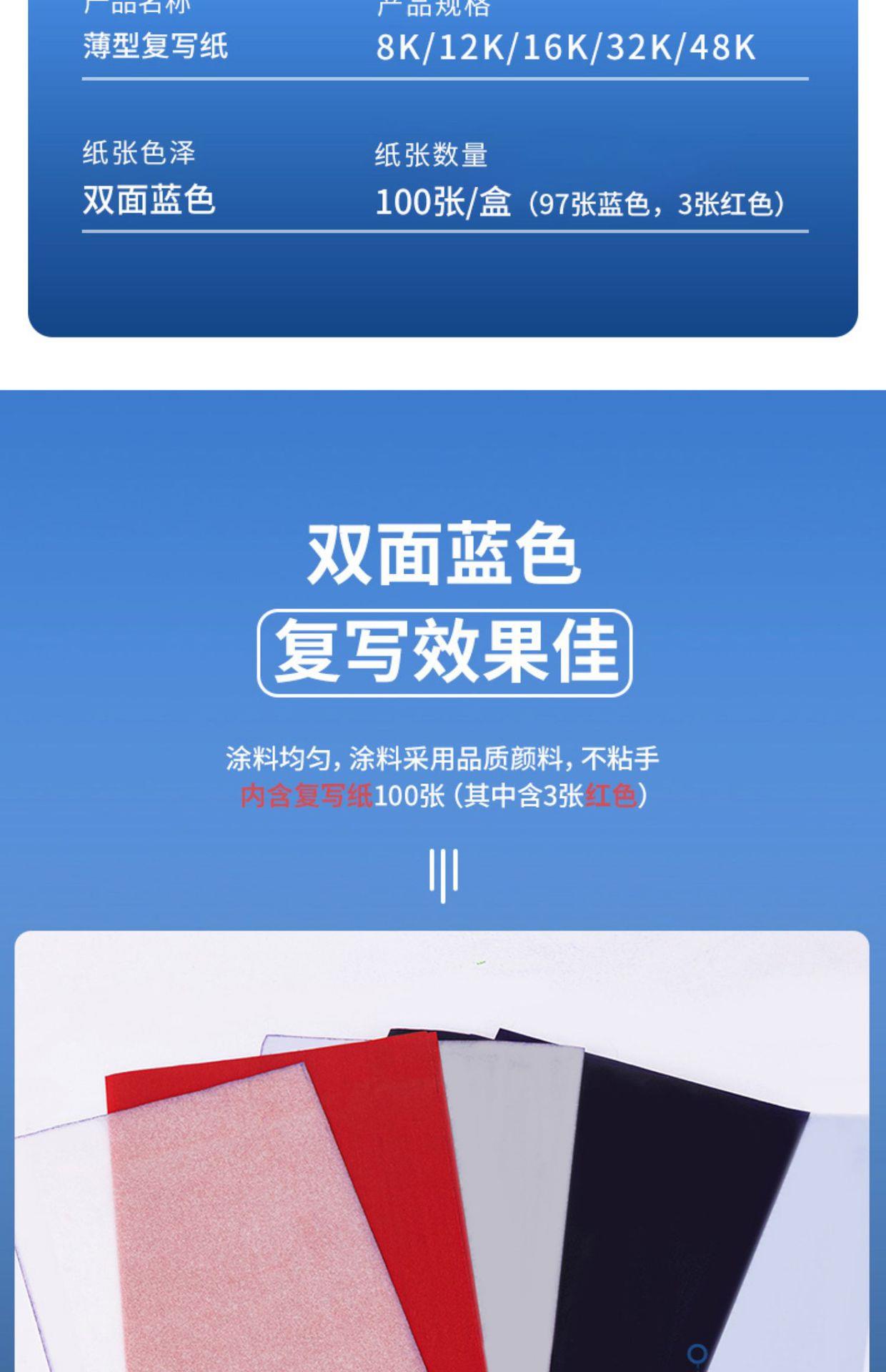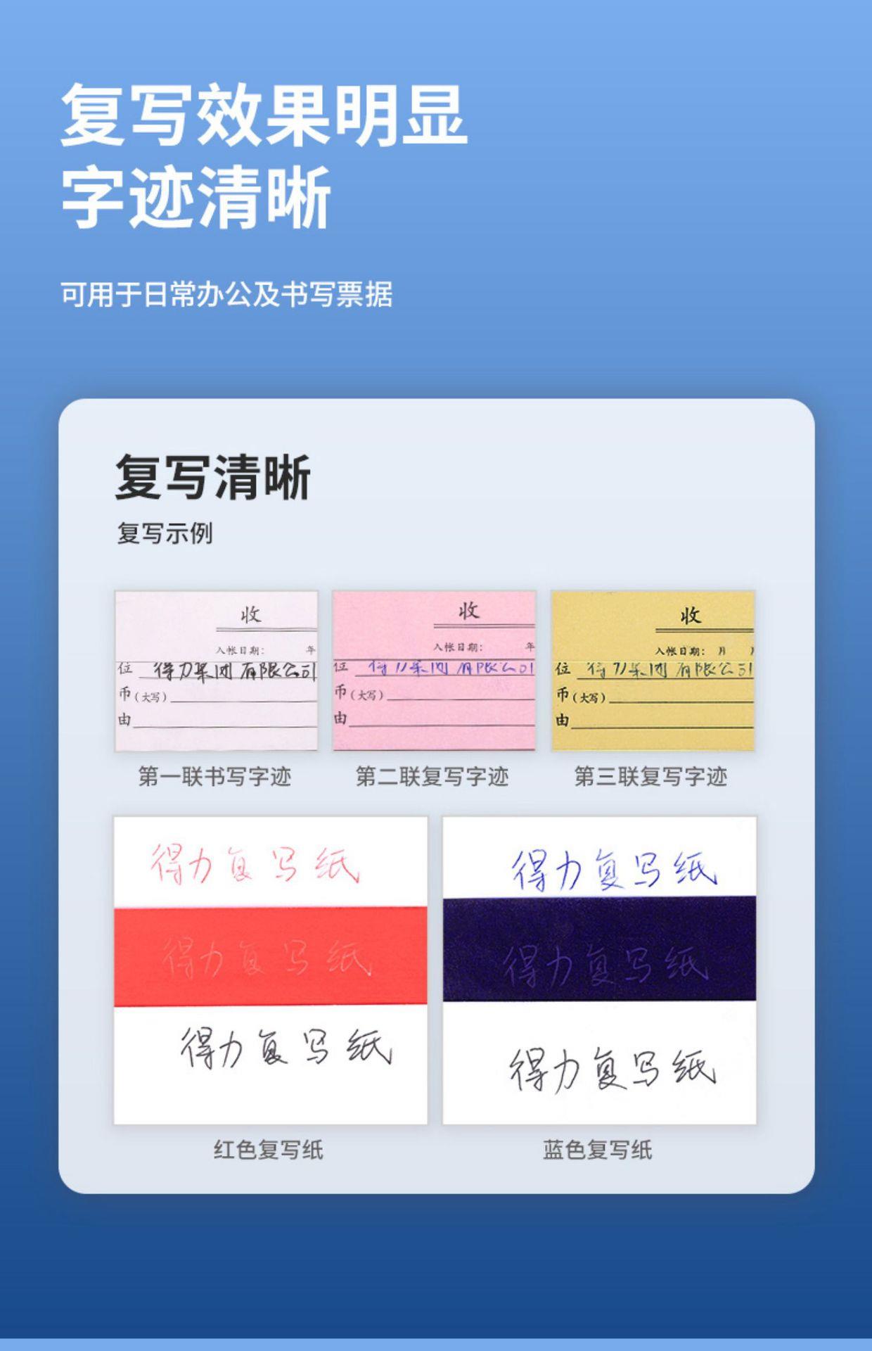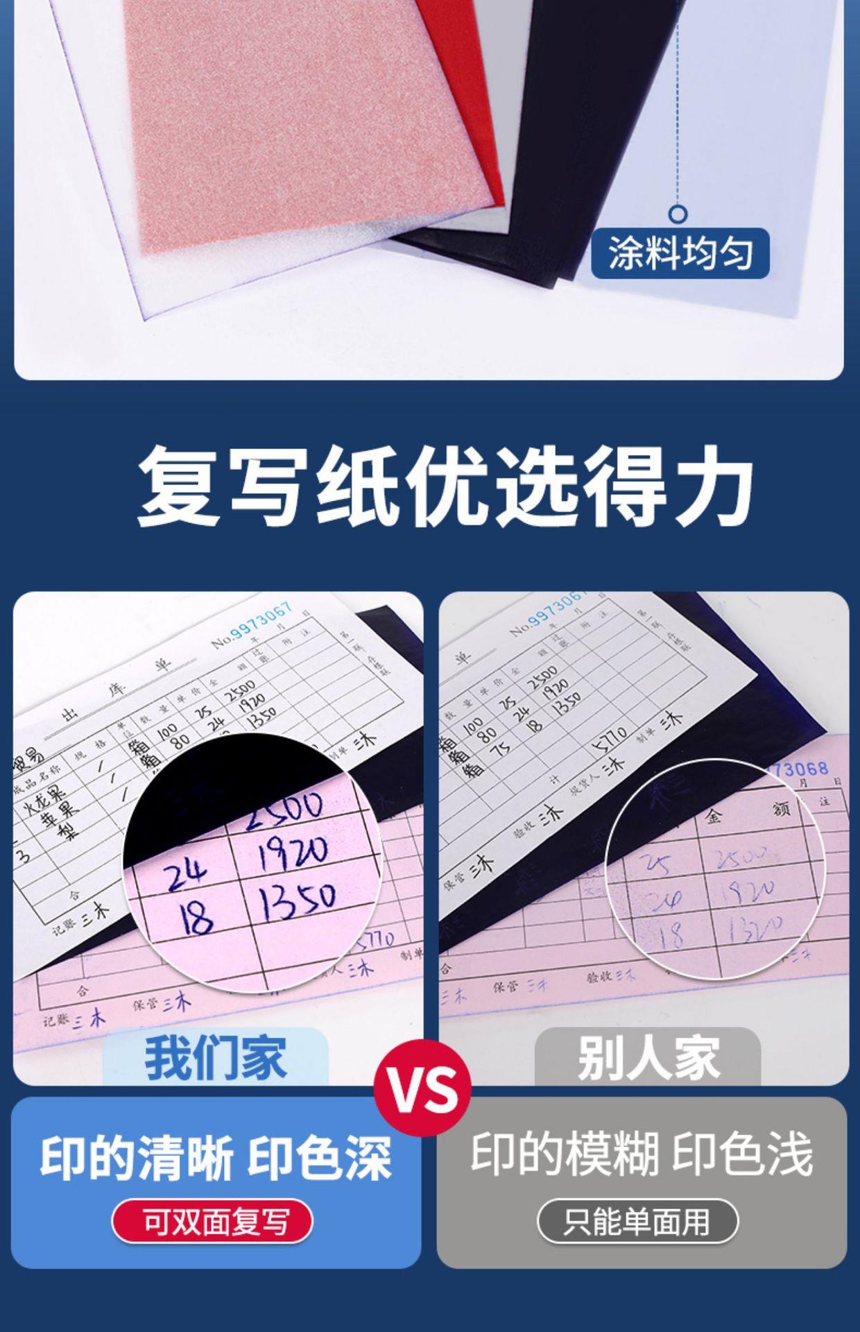 得力32k双面复写纸蓝色a4手写复印纸16k红色48k透蓝纸8K印色纸