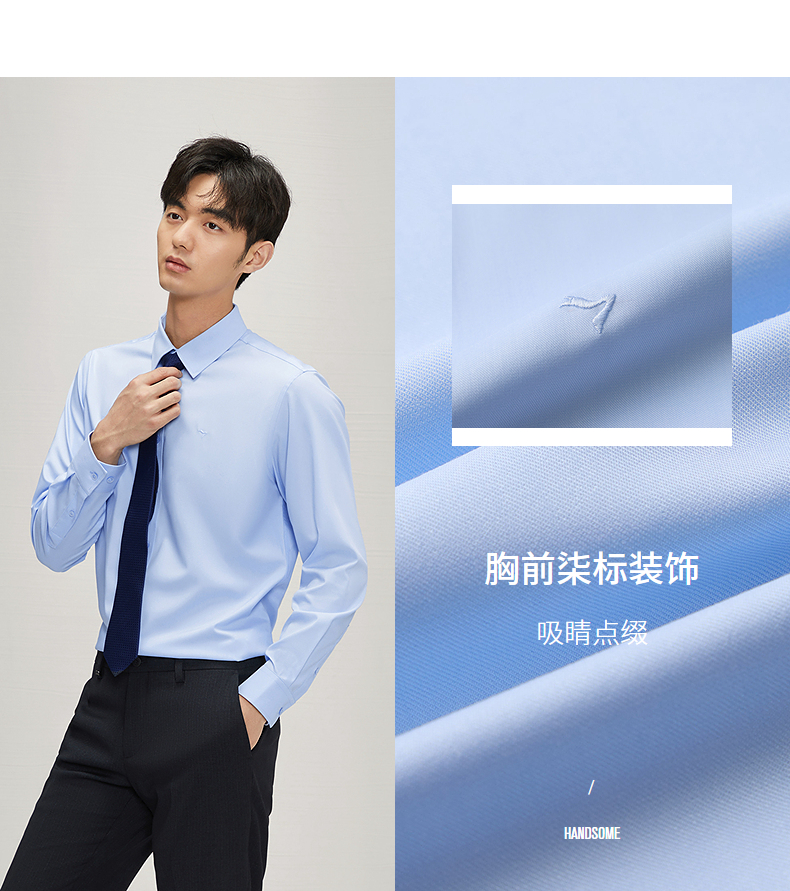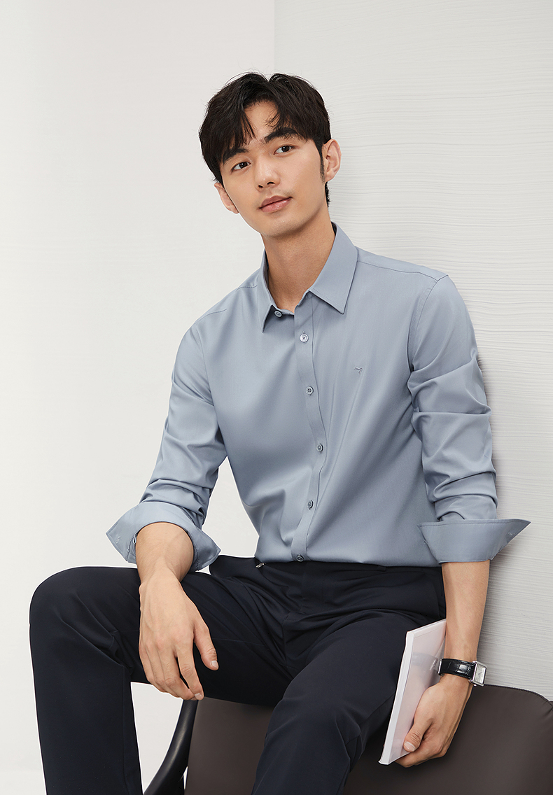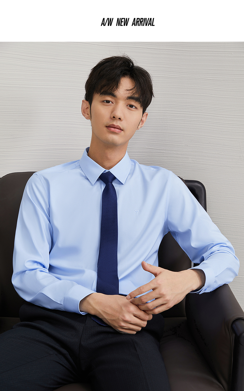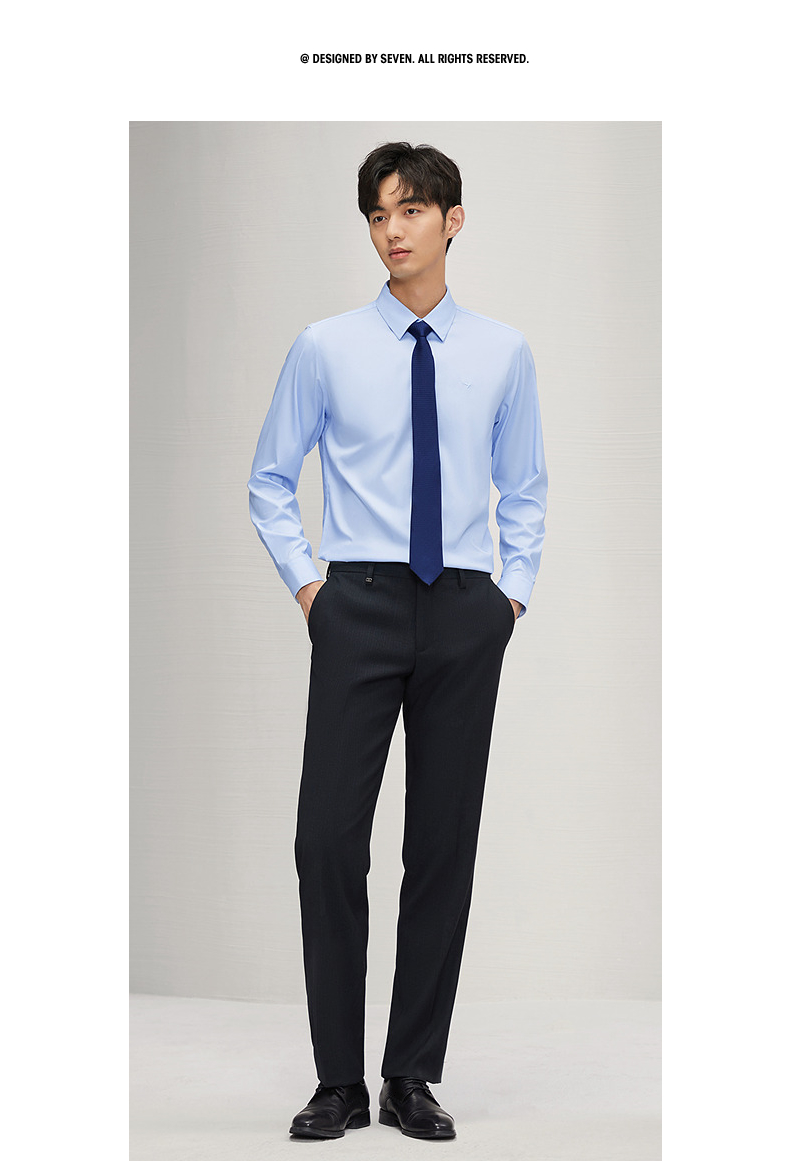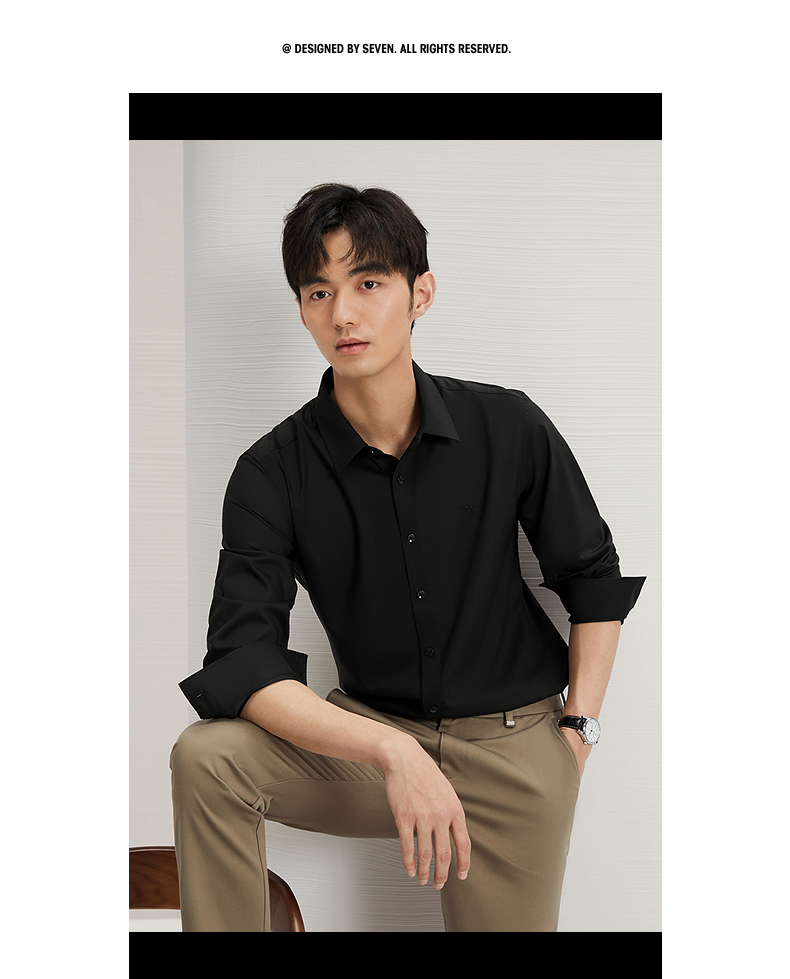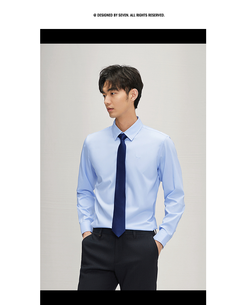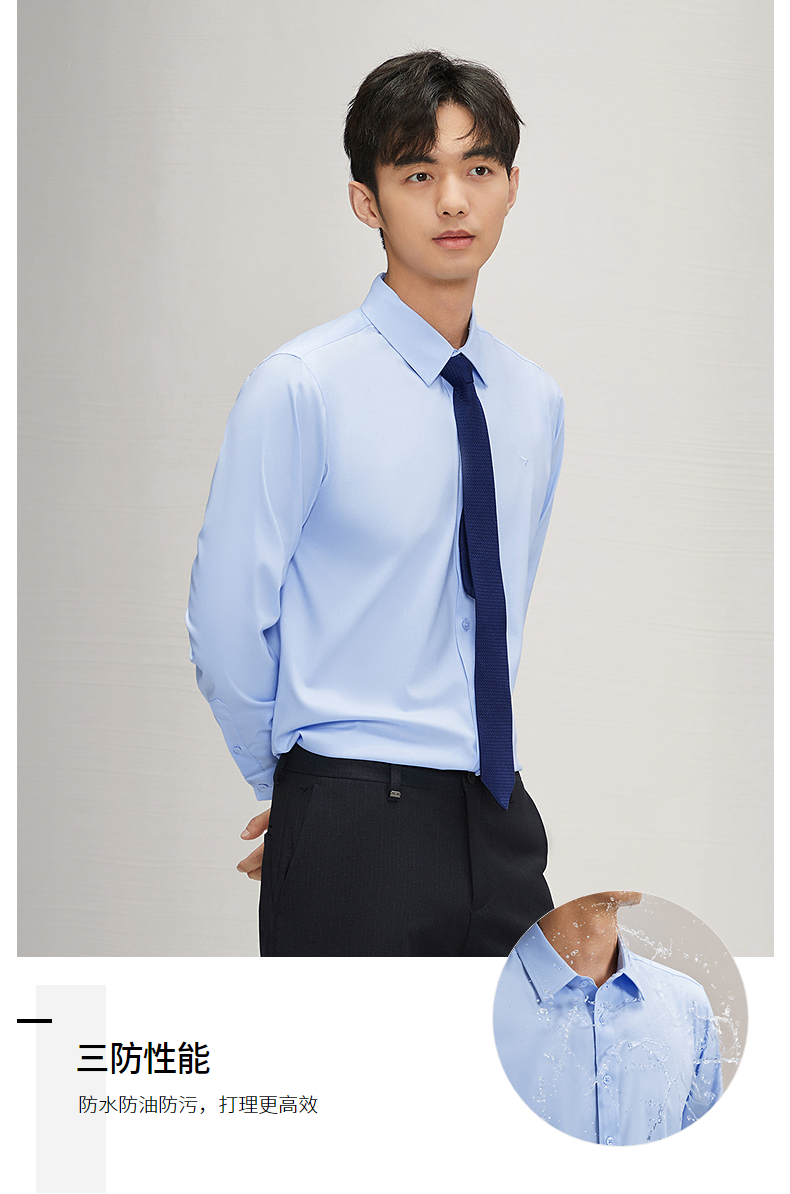 【三防】柒牌易打理长袖衬衫男2024秋季新款商务休闲舒适翻领衬衣 127A70810