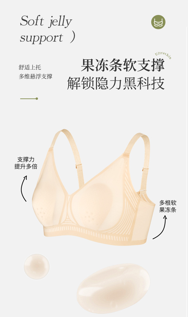 【夏天必备】新款超薄凉感冰丝,无痕显小固定。大胸不再尴尬,走到哪里自信向前。轻盈果冻条,柔软支撑兔耳朵杯。让你舒适呼吸,随性舞动身心