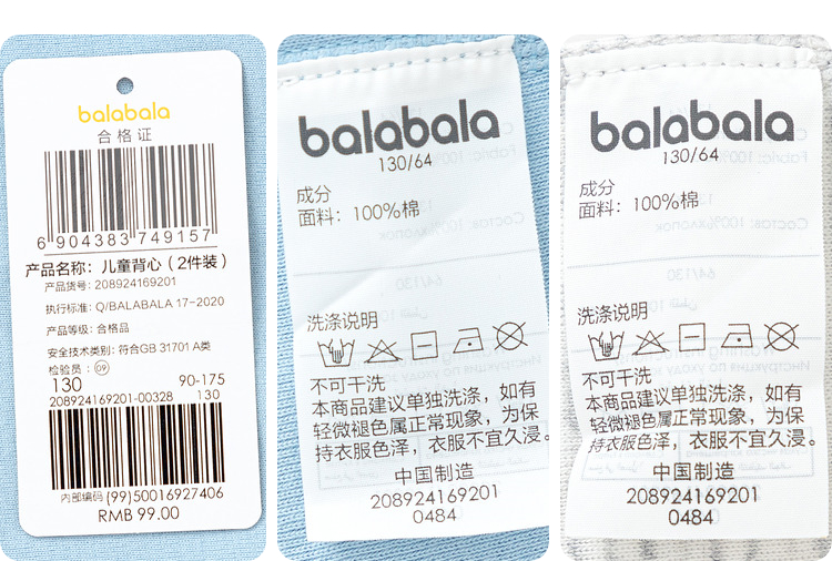 巴拉巴拉儿童背心棉男童女童吊带小童中大童男女孩打底衫内穿内衣