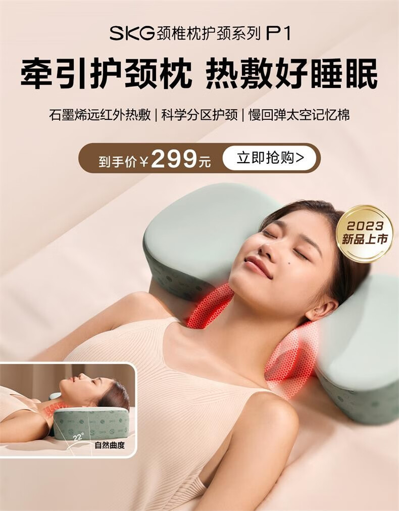 SKG颈椎枕护颈枕石墨烯远红外热敷反弓牵引拉伸肩颈部深睡眠专用枕头防压耳圣诞节送父母长辈礼物礼品 【送礼限定礼盒】颈椎热敷枕P1