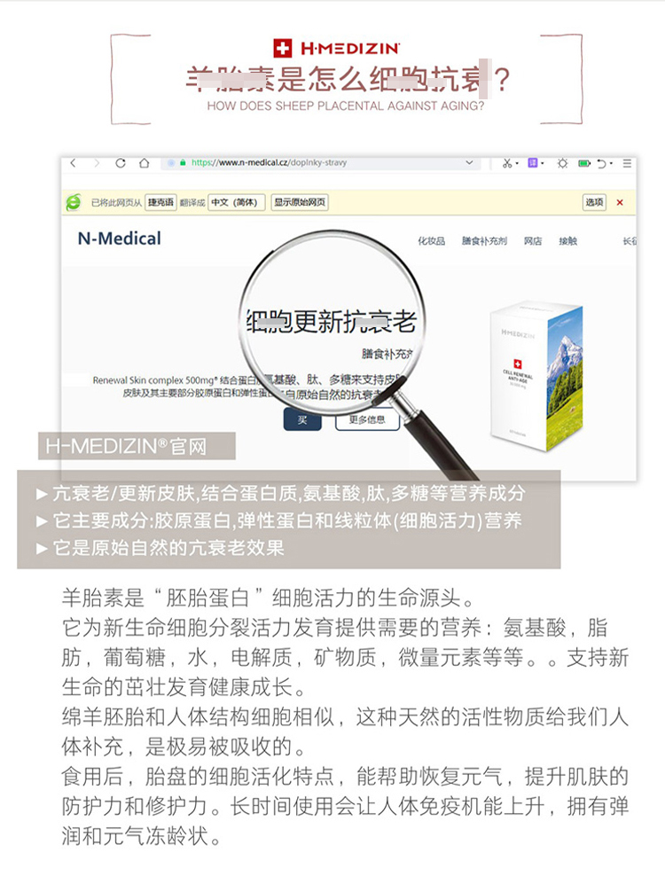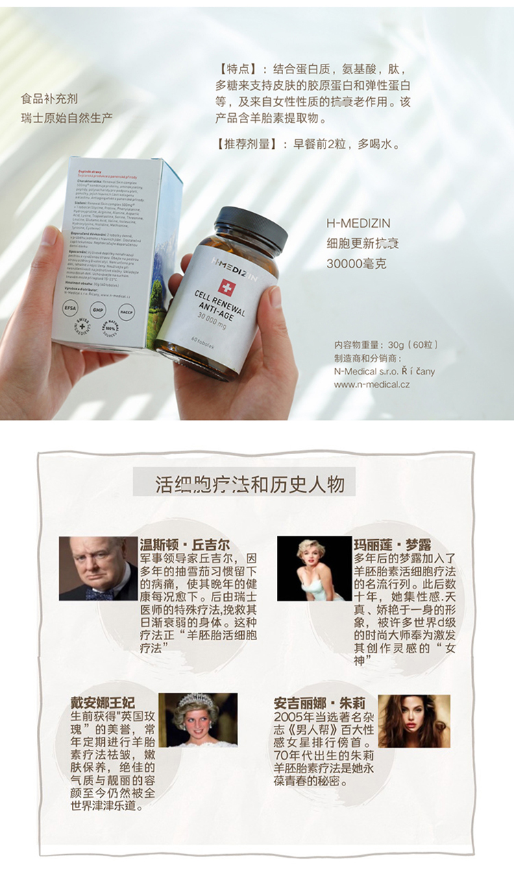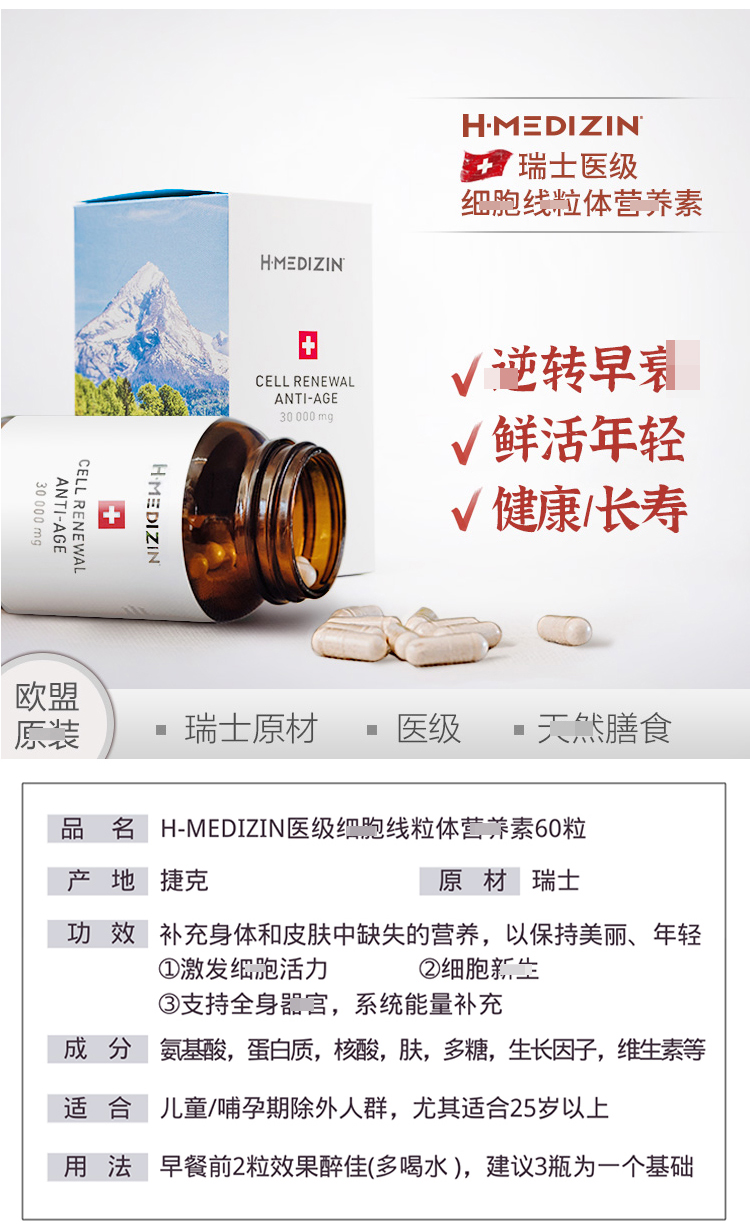 捷克H-Medizin医级细胞线粒体营养素羊胎素(瑞士小羊)60粒
