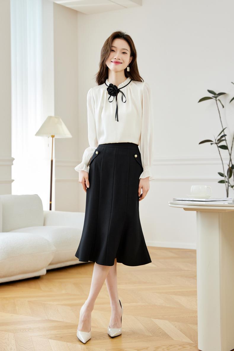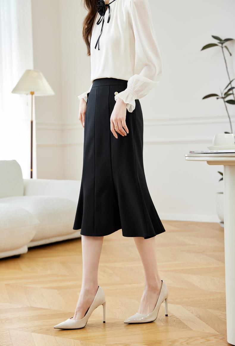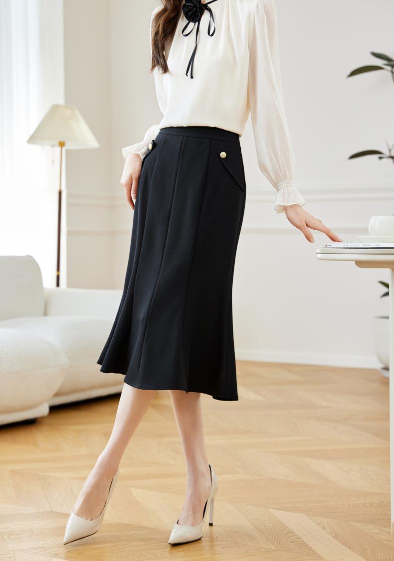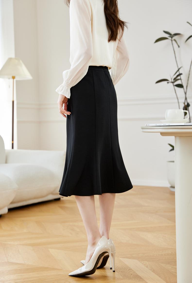 西装半身裙女2024春装新款高腰中长裙OL气质A字裙鱼尾裙608