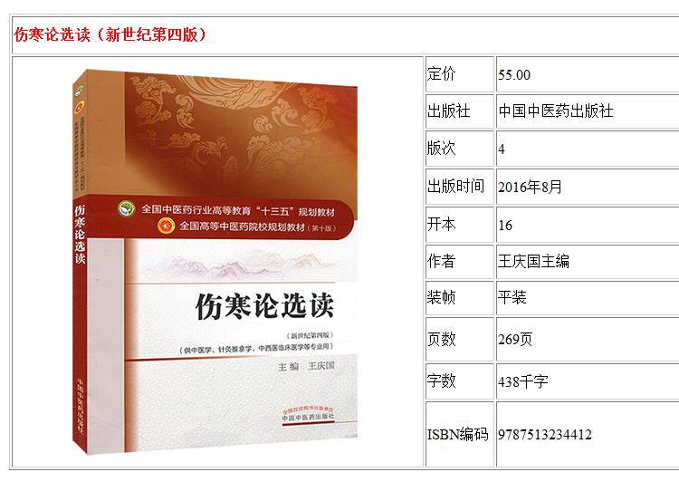 正版 伤寒论选读 新世纪第4四版 全国高等中医药院校规划教材 第十10版 十三五规划教材 王庆国主编 供中医学针灸推拿学等专业用