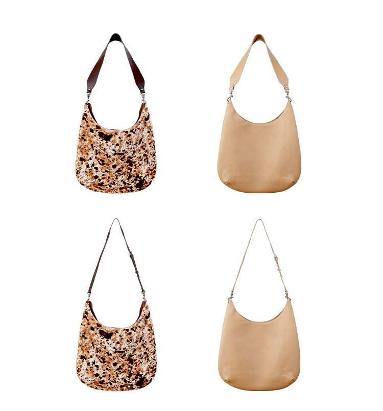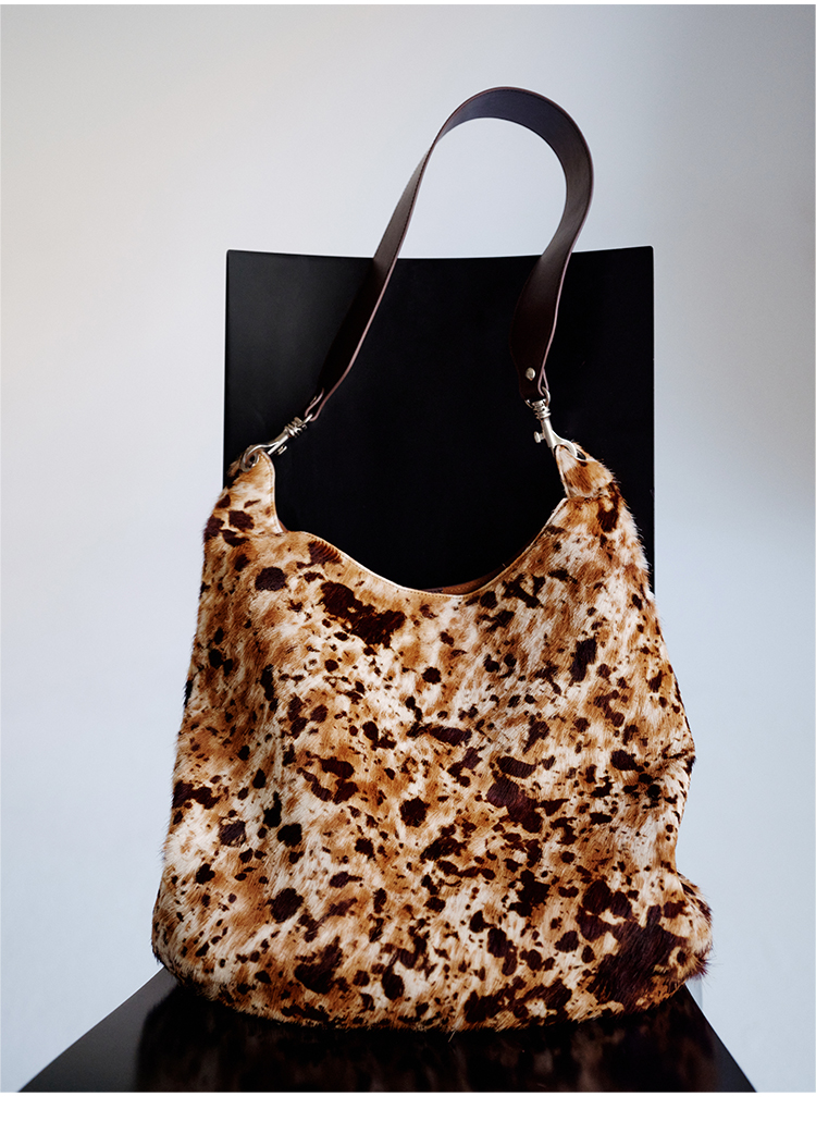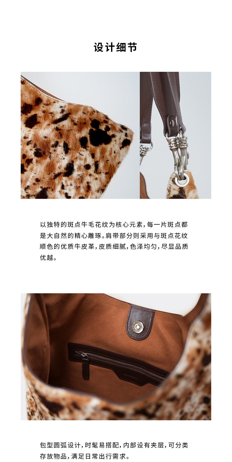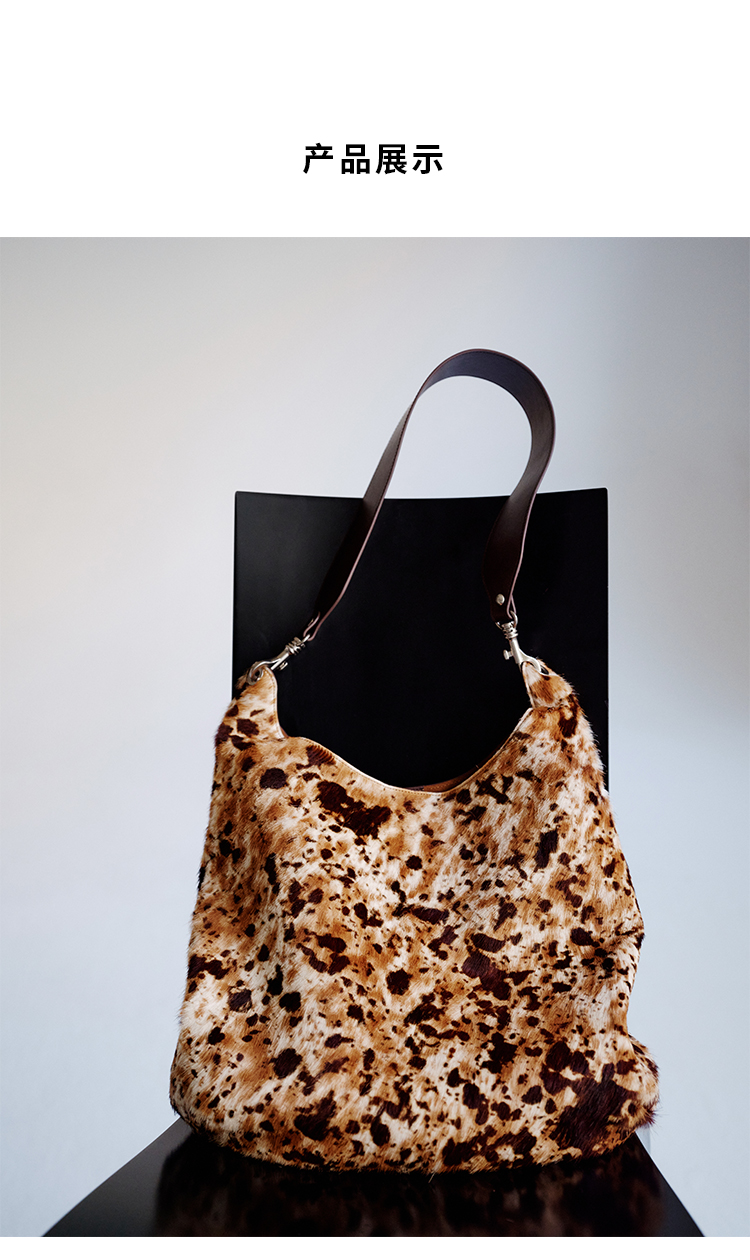 HIDEMI 都市马蹄包系列进口豹纹牛毛进口牛皮宽/窄肩带多种背法大包 豹纹牛毛/卡其色