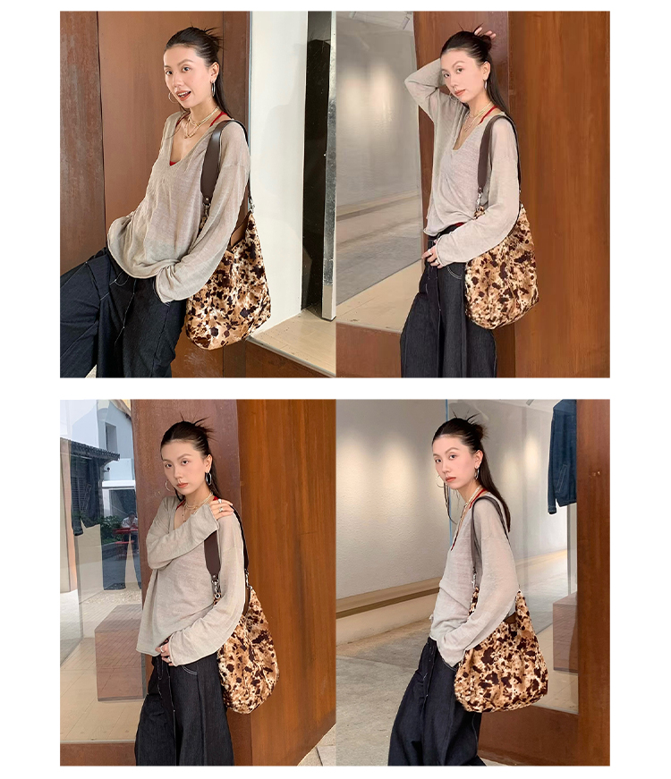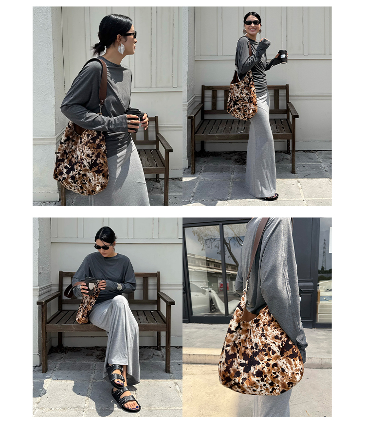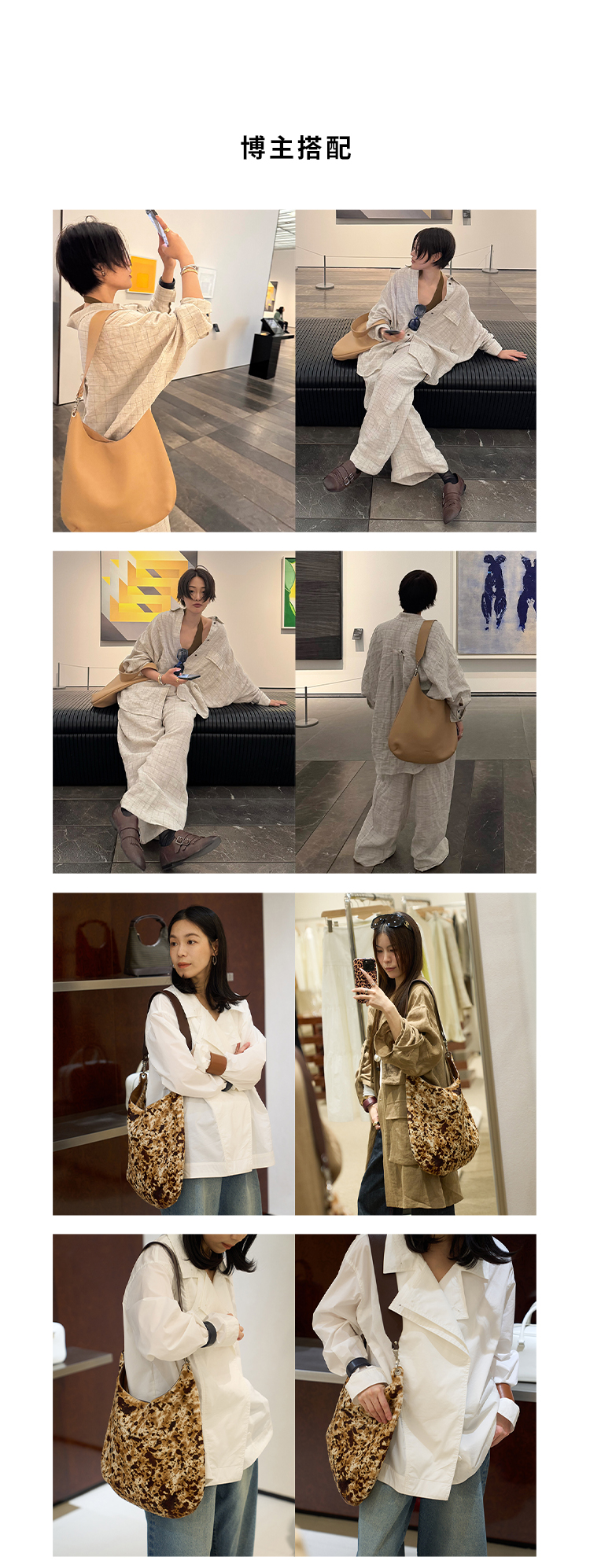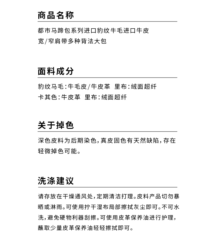 HIDEMI 都市马蹄包系列进口豹纹牛毛进口牛皮宽/窄肩带多种背法大包 豹纹牛毛/卡其色
