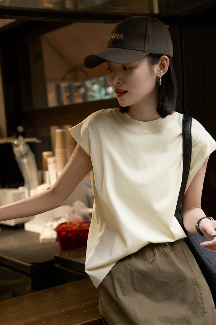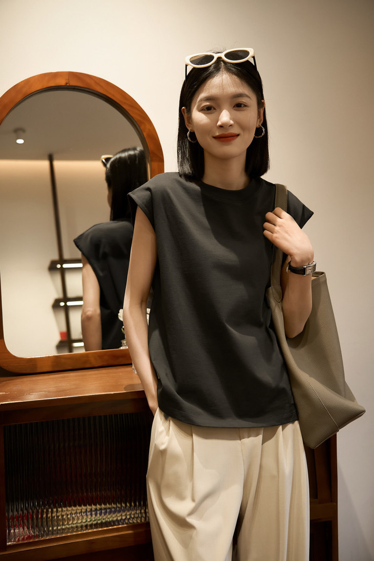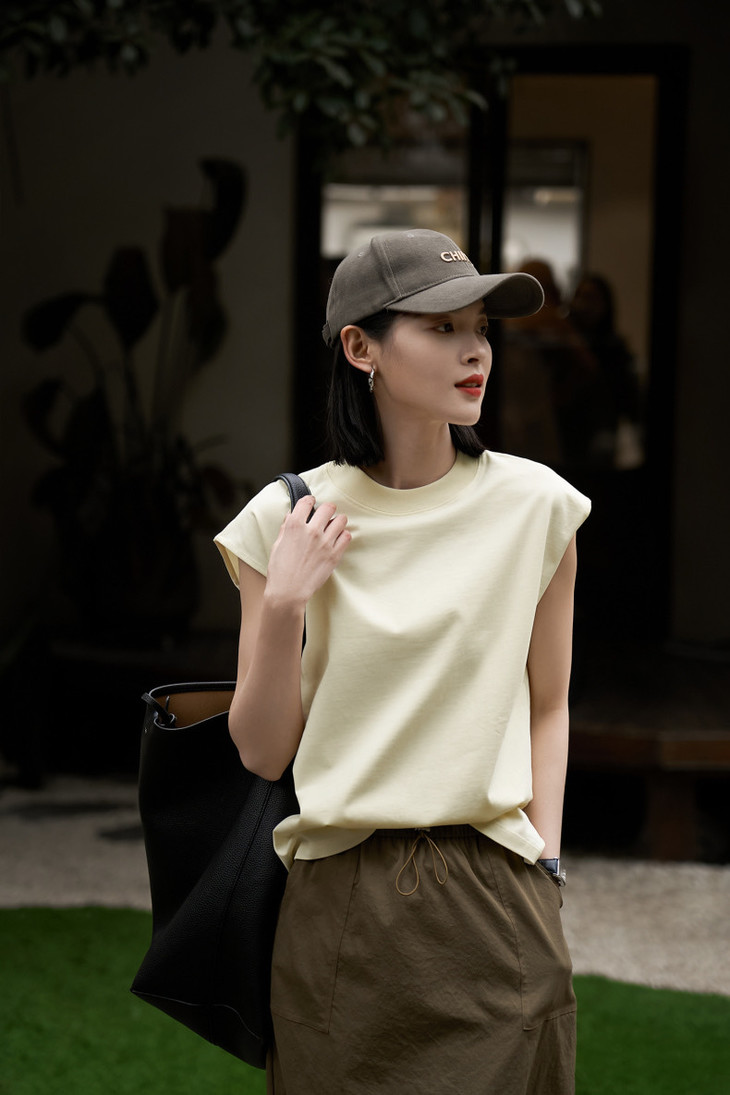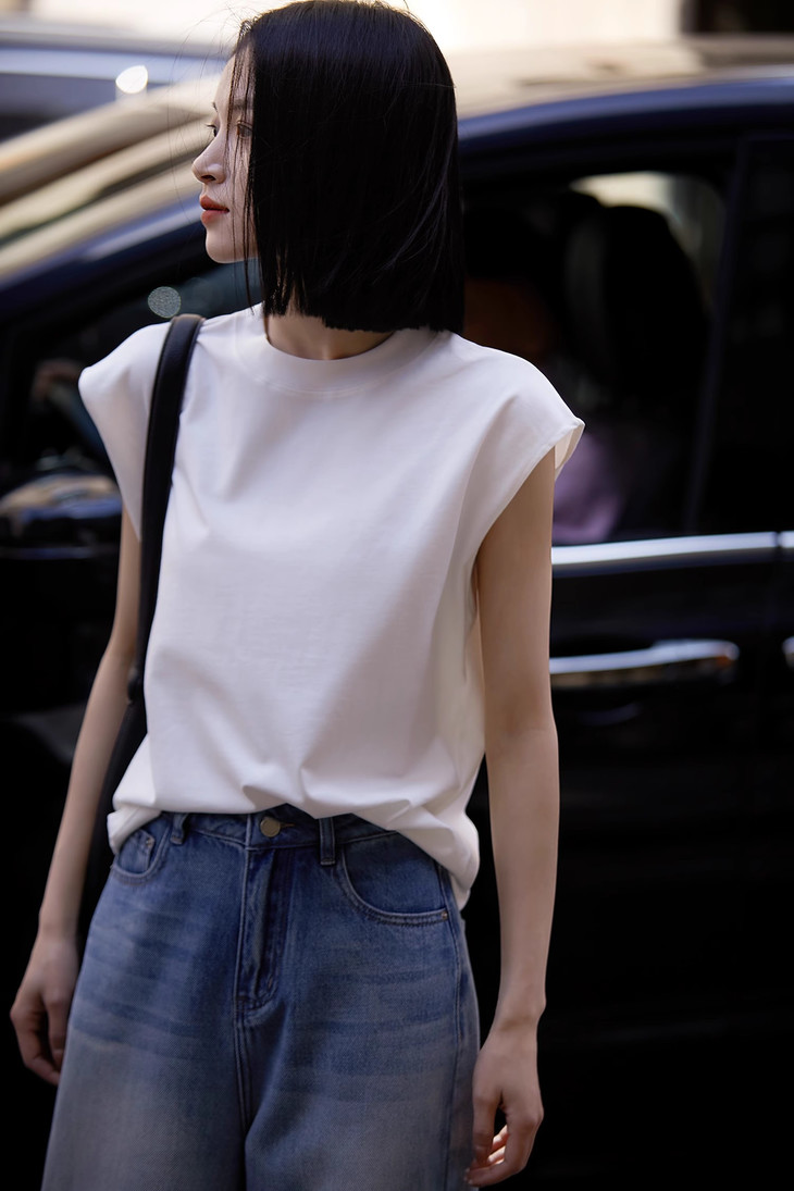 😍【2025新款纯色简约盖肩无袖圆领T恤】👉【暴风显瘦の短袖】瘦子穿上直角肩🔥!微胖秒变纸片人!👀原价129.9今天开团直降70 🍒今夏这件无袖T我先锁‼️‼️‼️