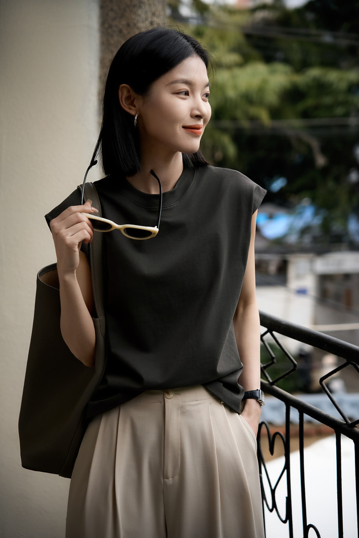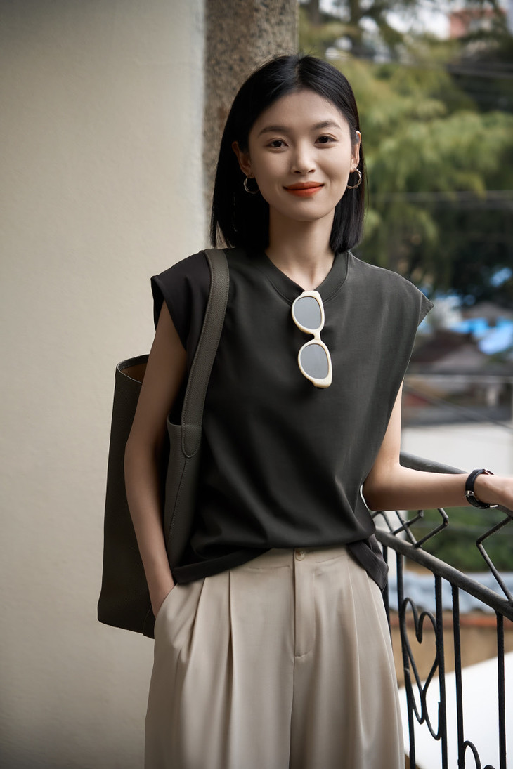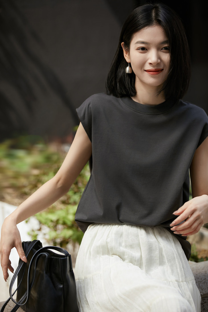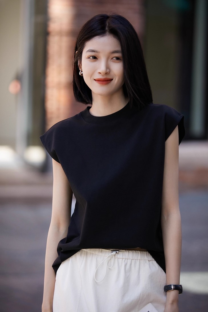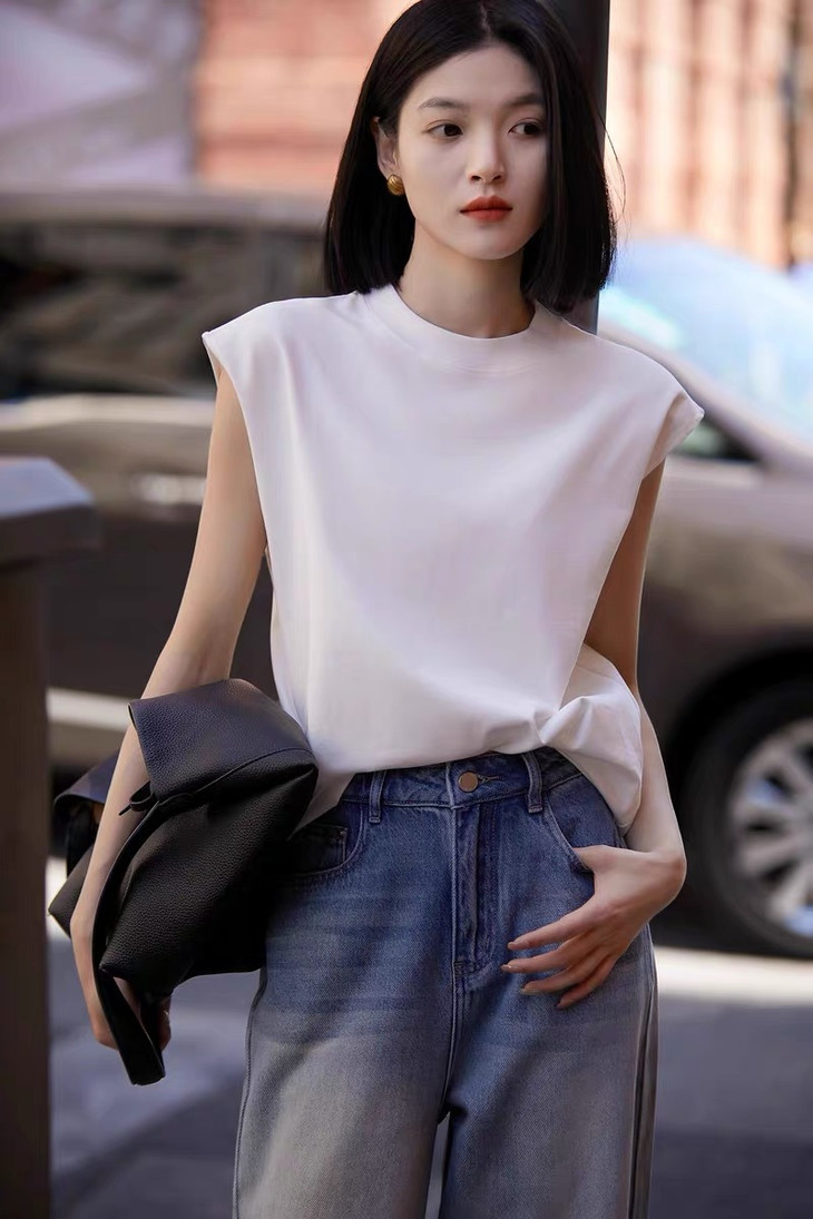 😍【2025新款纯色简约盖肩无袖圆领T恤】👉【暴风显瘦の短袖】瘦子穿上直角肩🔥!微胖秒变纸片人!👀原价129.9今天开团直降70 🍒今夏这件无袖T我先锁‼️‼️‼️